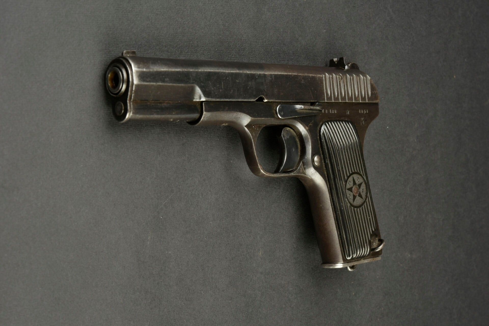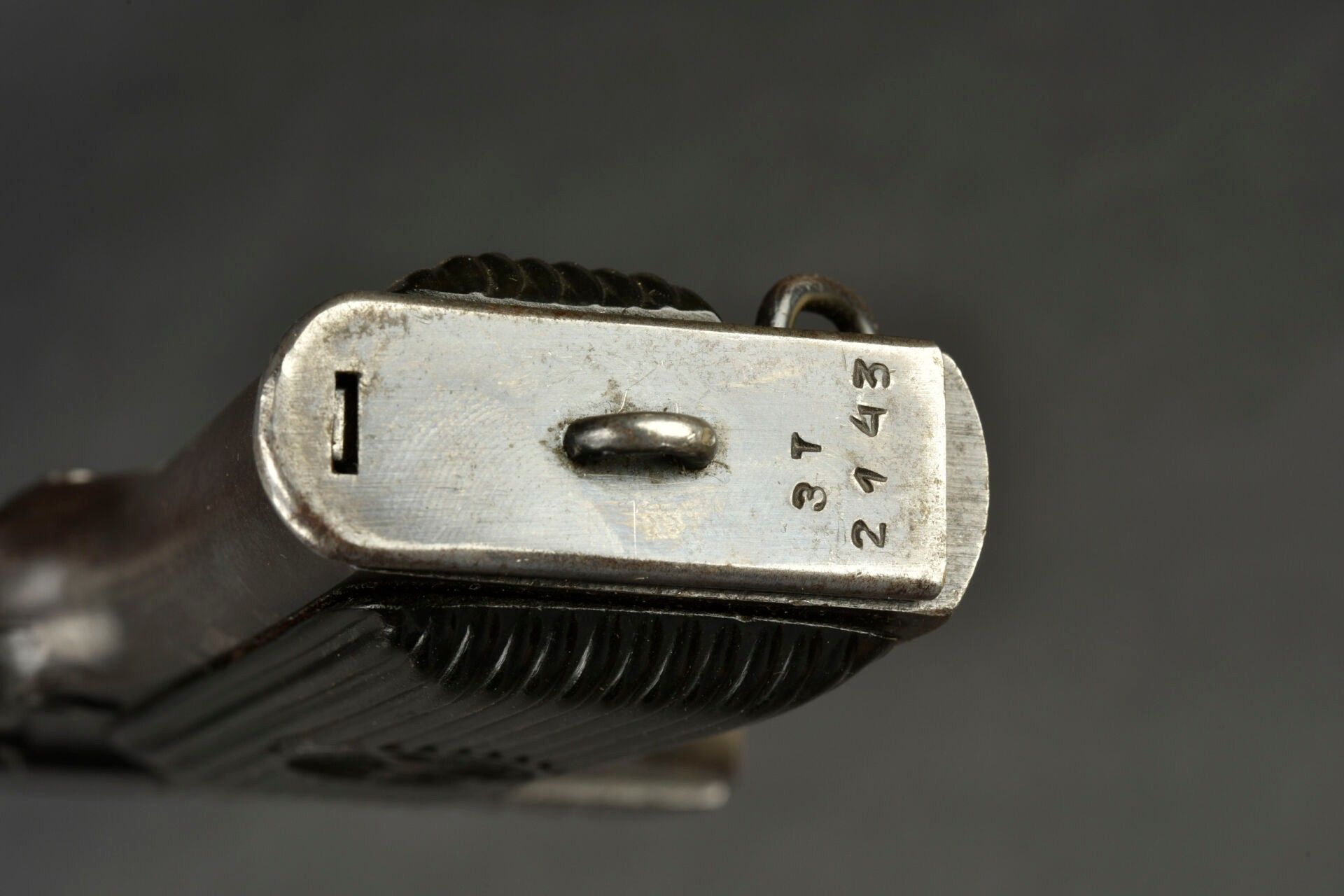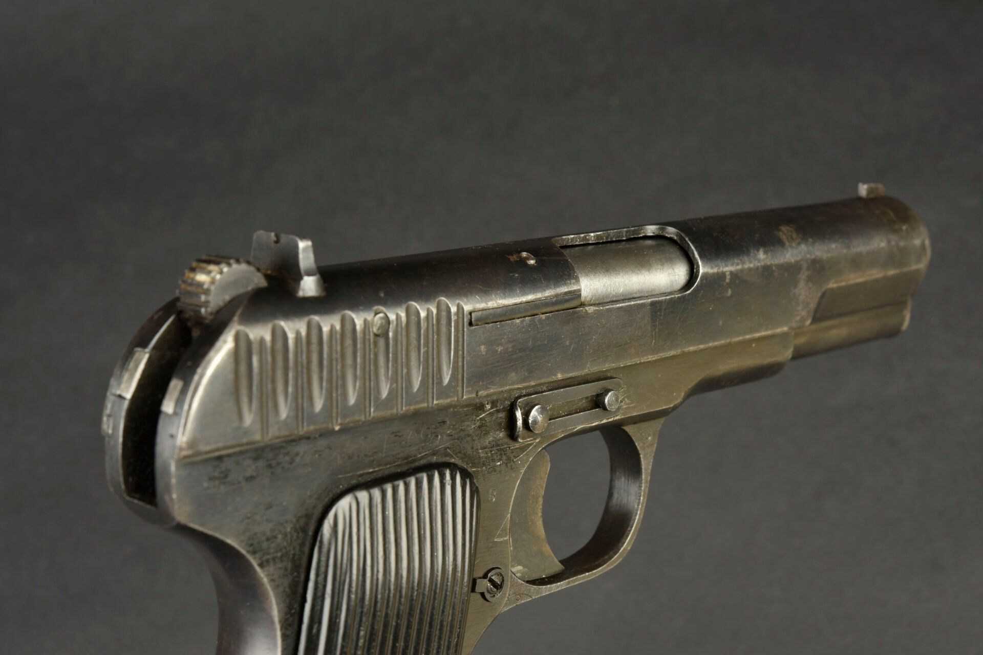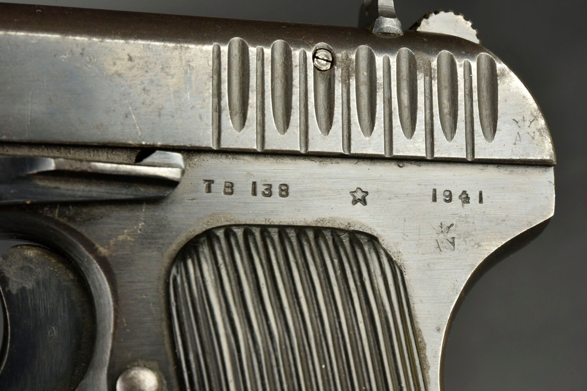TT33 gun. 80% tanning. Black bakelite cap. Magazine blocked by neutralisation. Breech made mobile by neutralisation +. Dated 1941. TB number 138. Some wear and patina to be noted. Condition II+. 2+ C9 category weapon. Firearms deactivated EU 2017. At the time of purchase, the purchaser must present a valid identity document (CNI or passport) and according to the case, either an original medical certificate of less than 1 month + account SIA-holder, or a copy of both sides of the hunting licence accompanied by validation for the current year or year n-1 and the SIA-holder's account, or the sports shooting licence for the current year (licence + licence certificate downloaded from EDEN-ITAC + the sports shooter's SIA-holder's account). If the billing address is different from that shown on the identity document, proof of address less than 1 month old must be produced. The transaction will not take place until FINIADA has been consulted. The formalities and consultation of this file will be invoiced at €50 per weapon purchased (€25 inc. VAT for a professional buyer).