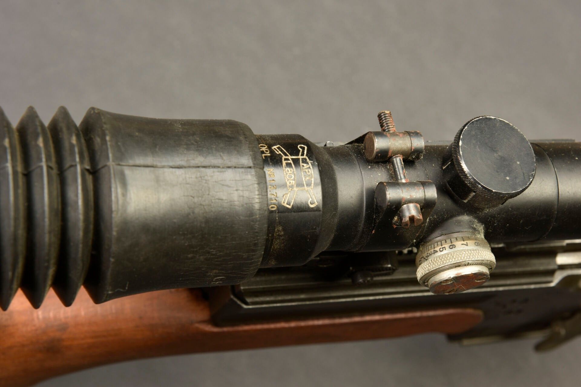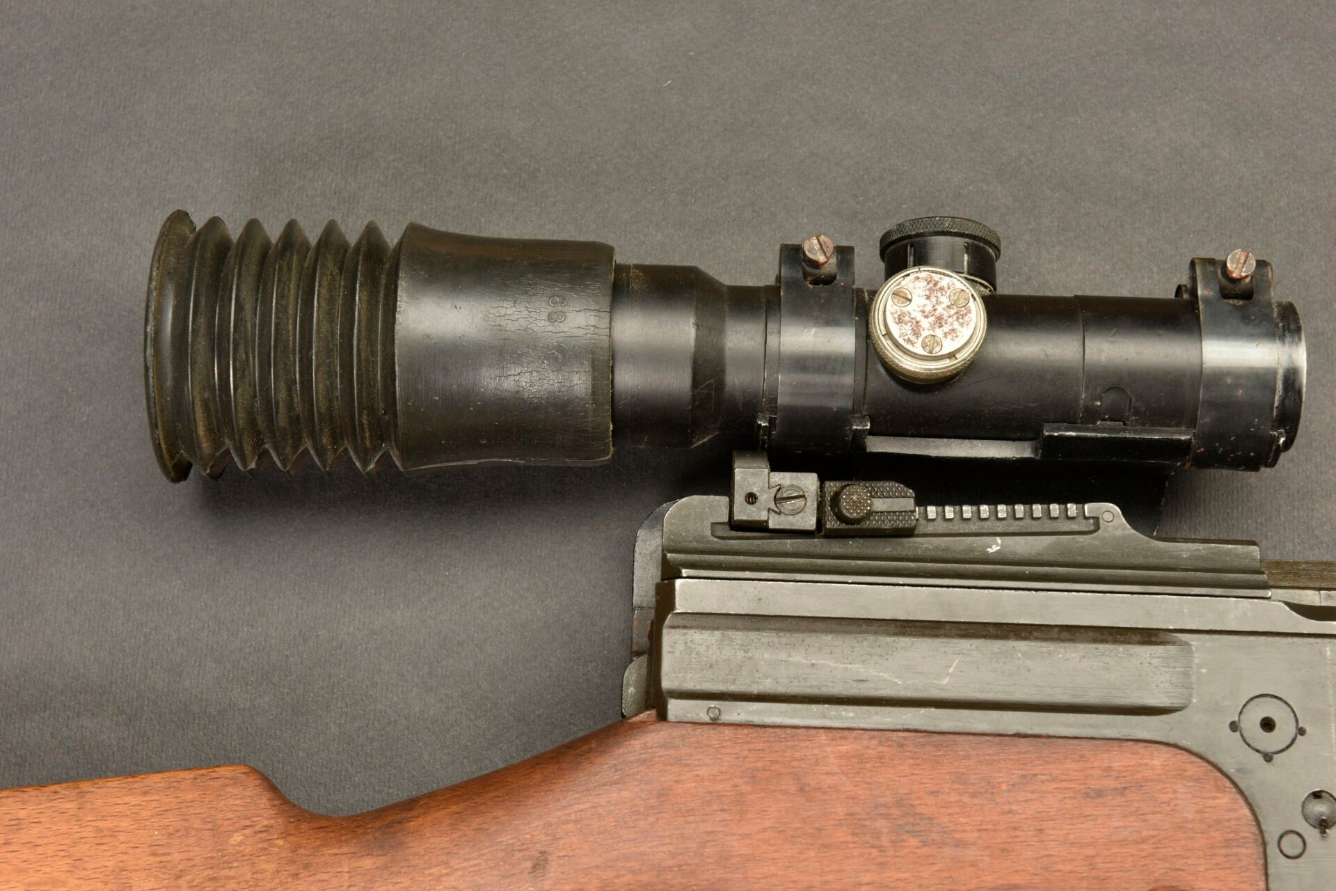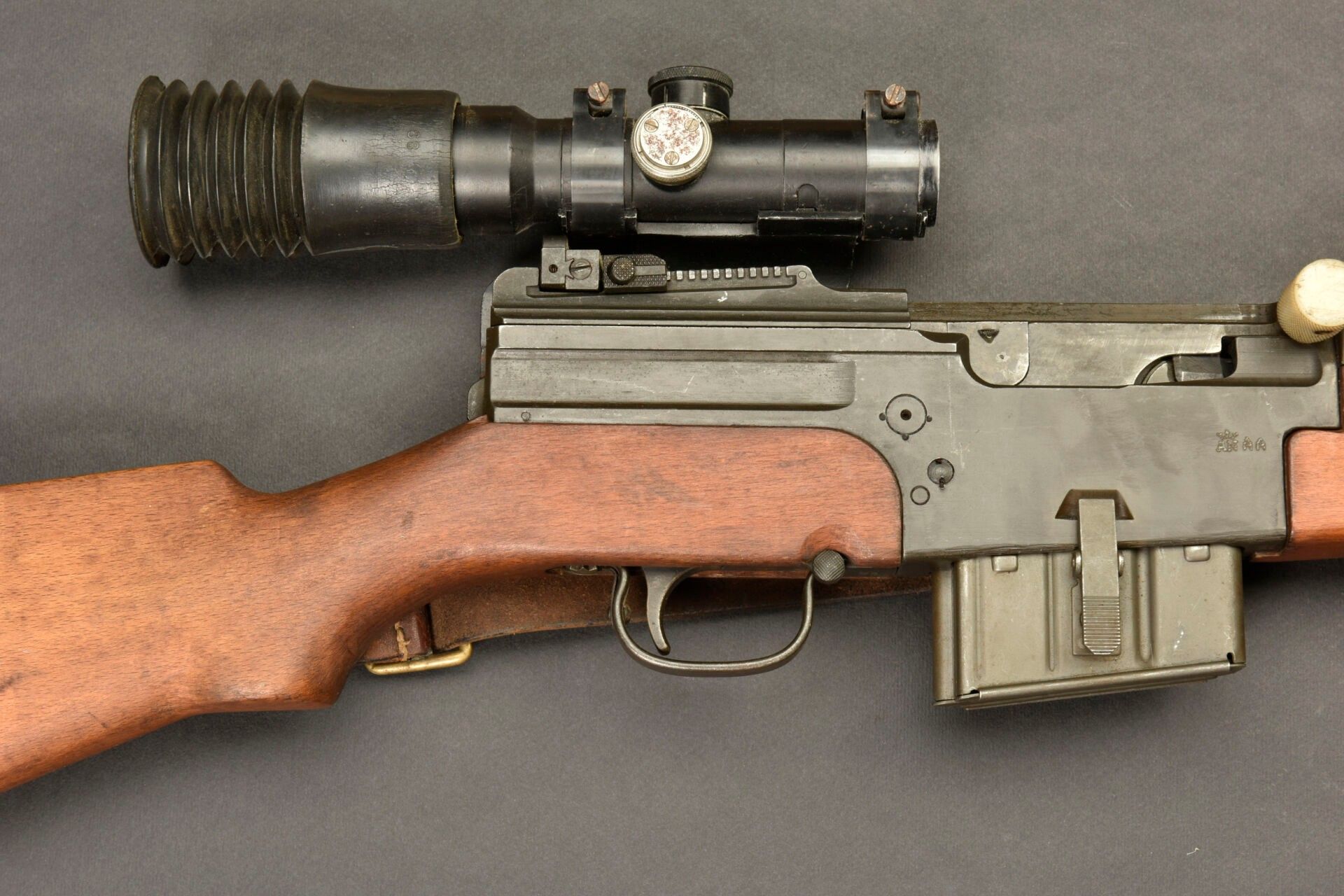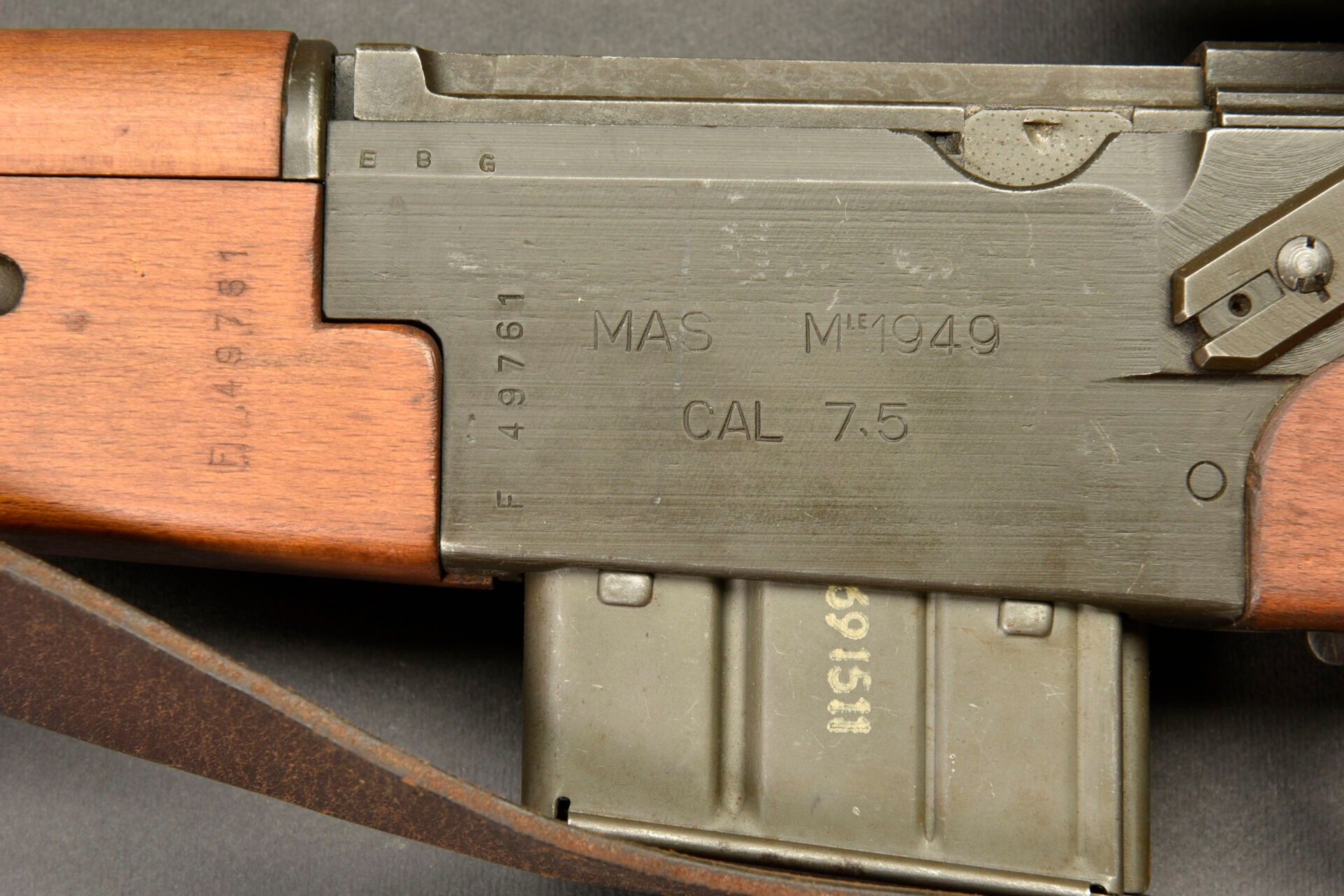 Mas 1949 semi-automatic rifle. All metal parts are 90% original colour. Marks Mas Mle 1949, number F49761. Stock also bearing the same number. Loaders and breech blocked by neutralisation. Magazine number 691511. Full leather sling. Complete scope APX 806 OPL 13710. Optics in perfect condition. Some wear and patina. Condition II+. C9 category weapon. Firearms neutralised EU 2017. At the time of purchase, the purchaser must present a valid identity document (CNI or passport) and, depending on the case, either an original medical certificate less than 1 month old + SIA-holder account, or a copy of both sides of the hunting licence accompanied by validation for the current year or year n-1 and the SIA-holder's account, or the sports shooting licence for the current year (licence + licence certificate downloaded from EDEN-ITAC + the sports shooter's SIA-holder's account). If the billing address is different from that shown on the identity document, proof of address less than 1 month old must be produced. The transaction will not take place until FINIADA has been consulted. The formalities and consultation of this file will be invoiced at €50 per weapon purchased (€25 inc. VAT for a professional buyer).