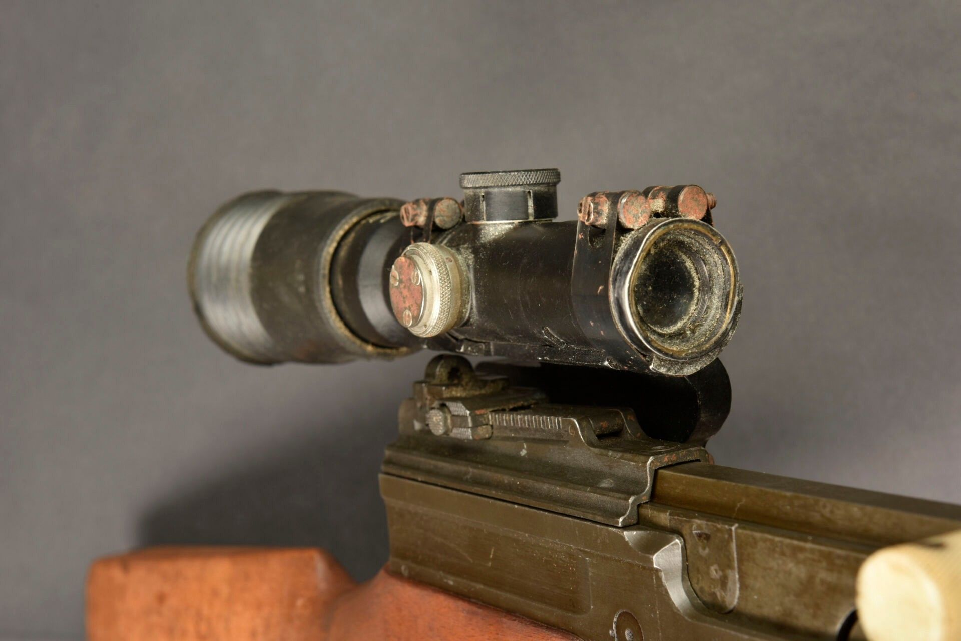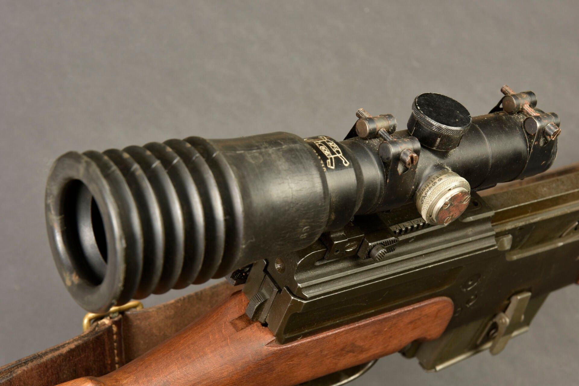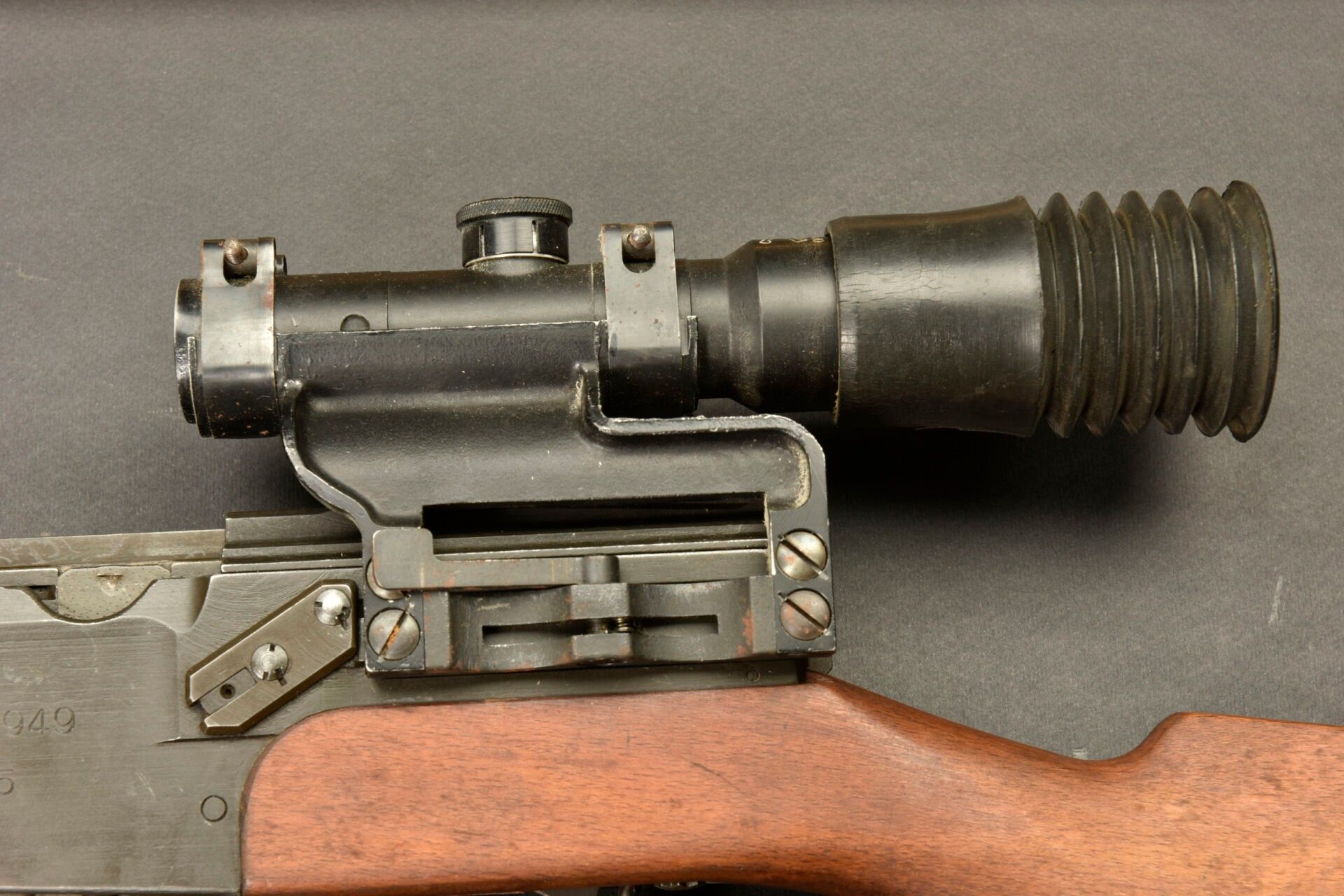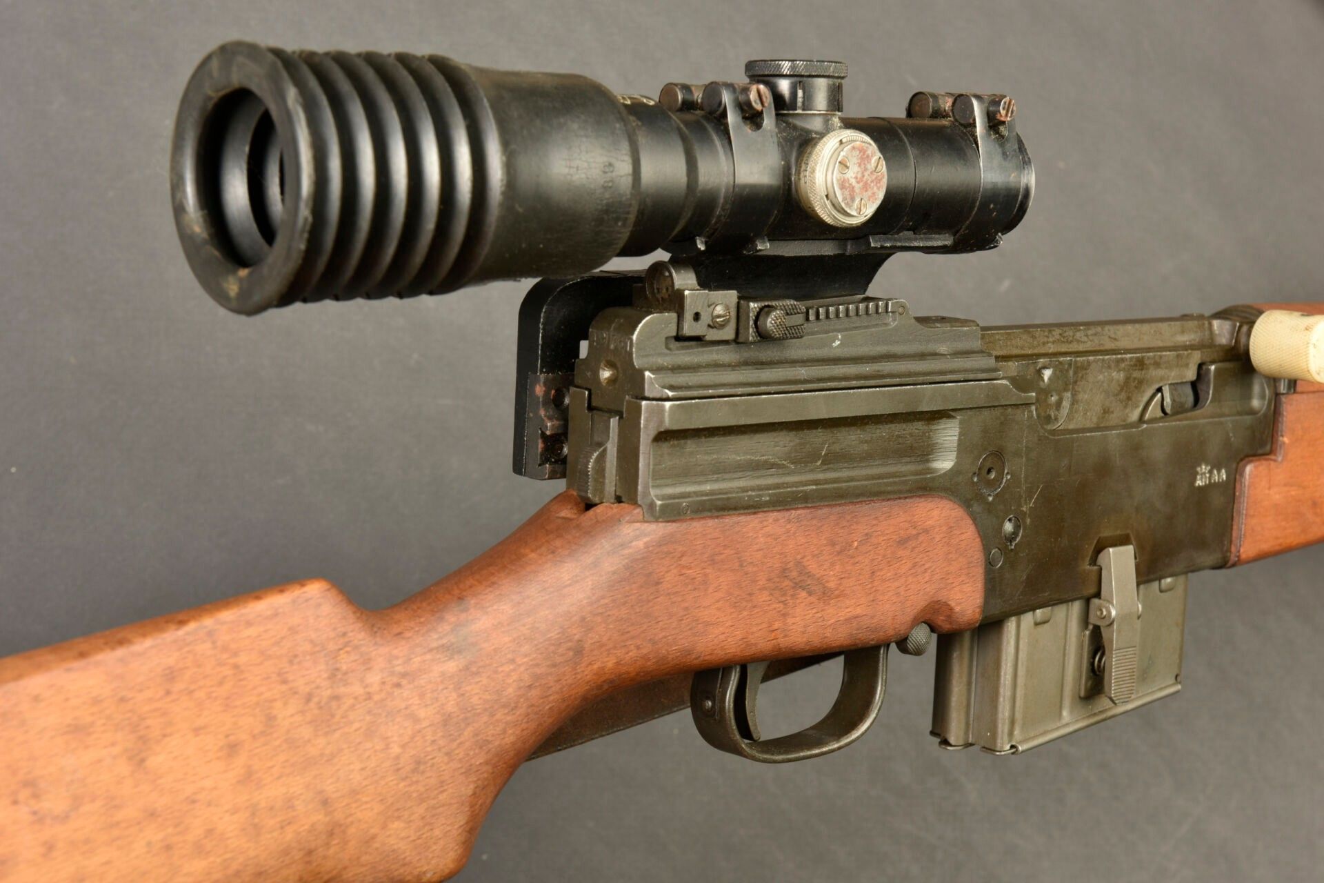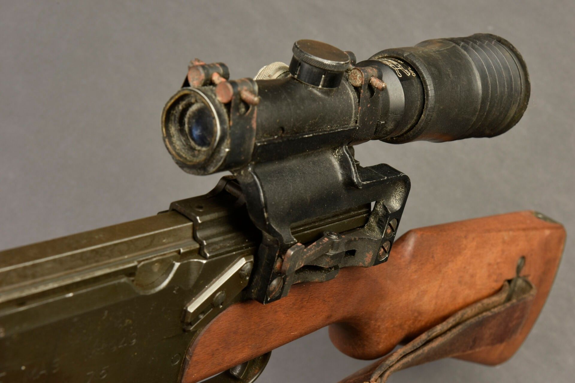 Mas 1949 semi-automatic rifle. All metal parts are 90% original colour. Marks Mas Mle 1949, number F49761. Stock also bearing the same number. Loaders and breech blocked by neutralisation. Magazine number 691511. Full leather sling. Complete scope APX 806 OPL 13710. Optics in perfect condition. Some wear and patina. Condition II+. C9 category weapon. Firearms neutralised EU 2017. At the time of purchase, the purchaser must present a valid identity document (CNI or passport) and, depending on the case, either an original medical certificate less than 1 month old + SIA-holder account, or a copy of both sides of the hunting licence accompanied by validation for the current year or year n-1 and the SIA-holder's account, or the sports shooting licence for the current year (licence + licence certificate downloaded from EDEN-ITAC + the sports shooter's SIA-holder's account). If the billing address is different from that shown on the identity document, proof of address less than 1 month old must be produced. The transaction will not take place until FINIADA has been consulted. The formalities and consultation of this file will be invoiced at €50 per weapon purchased (€25 inc. VAT for a professional buyer).