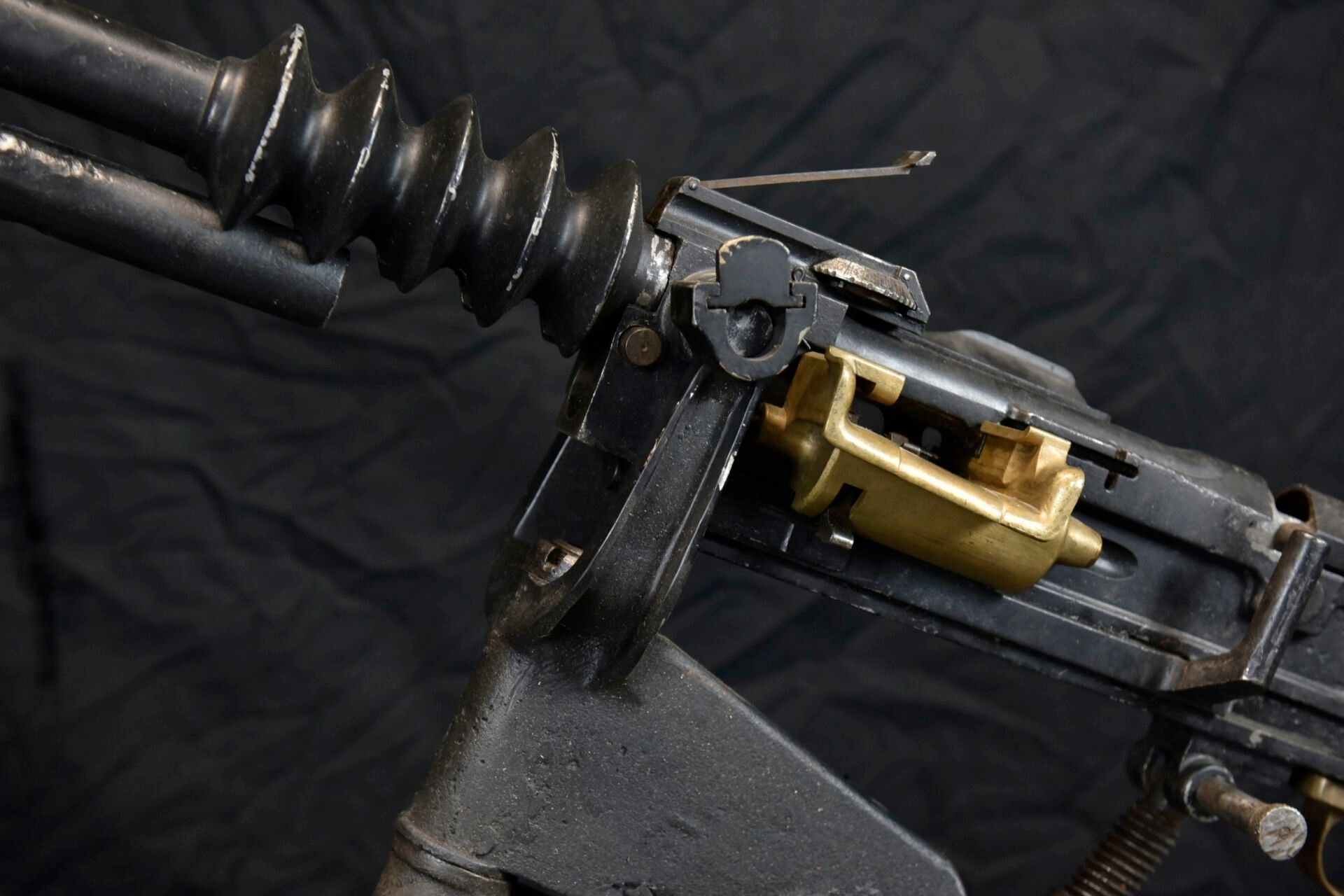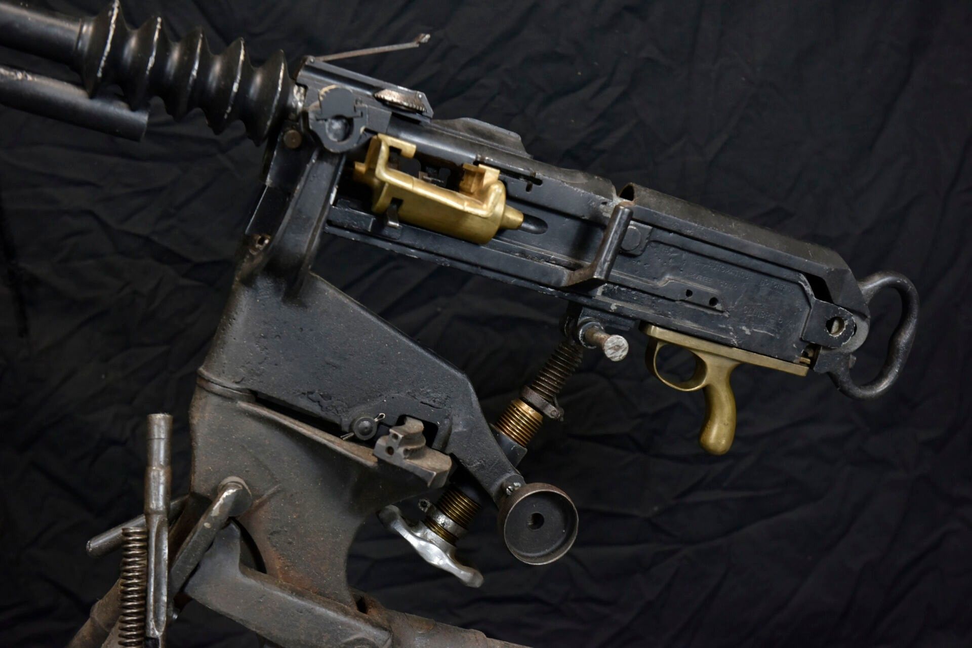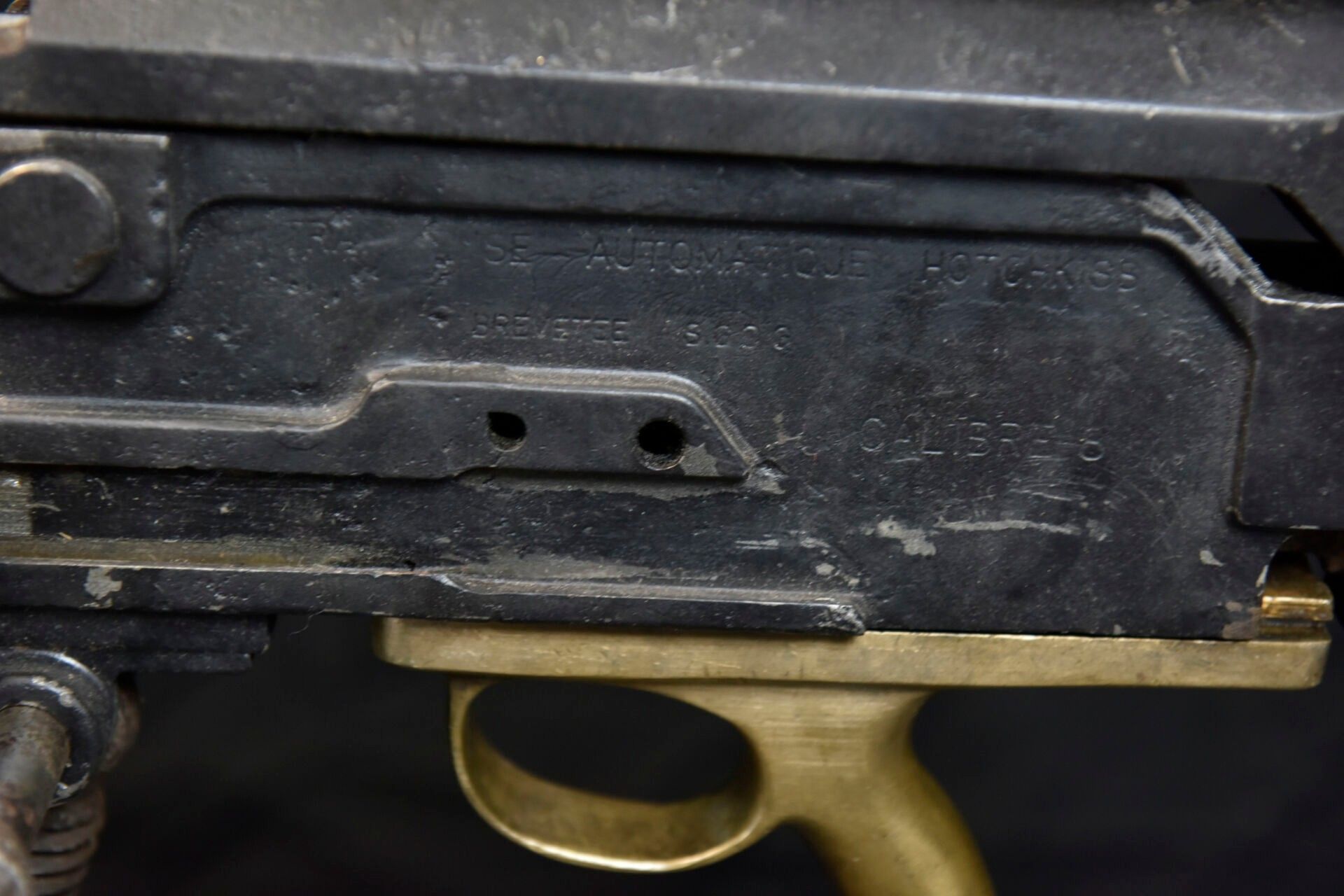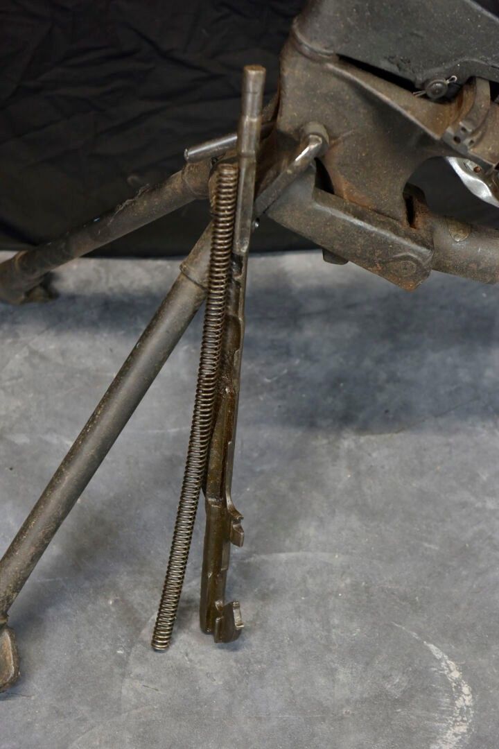 Hotchkiss machine gun. Metal tripod, 70% original colour.