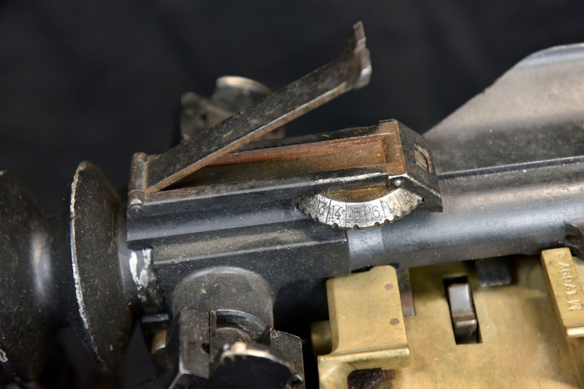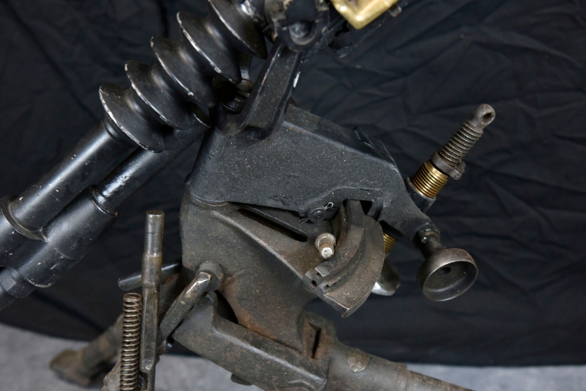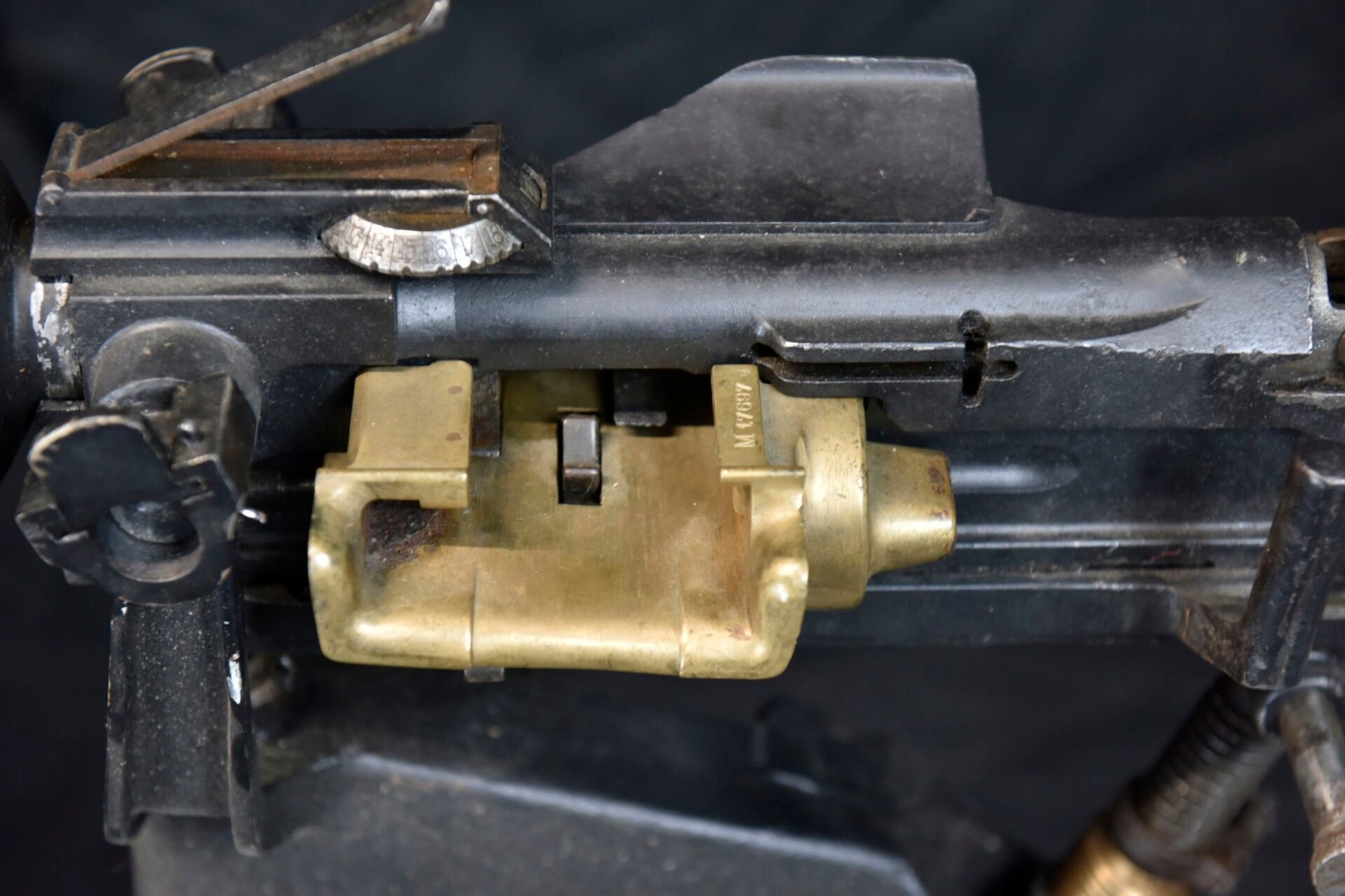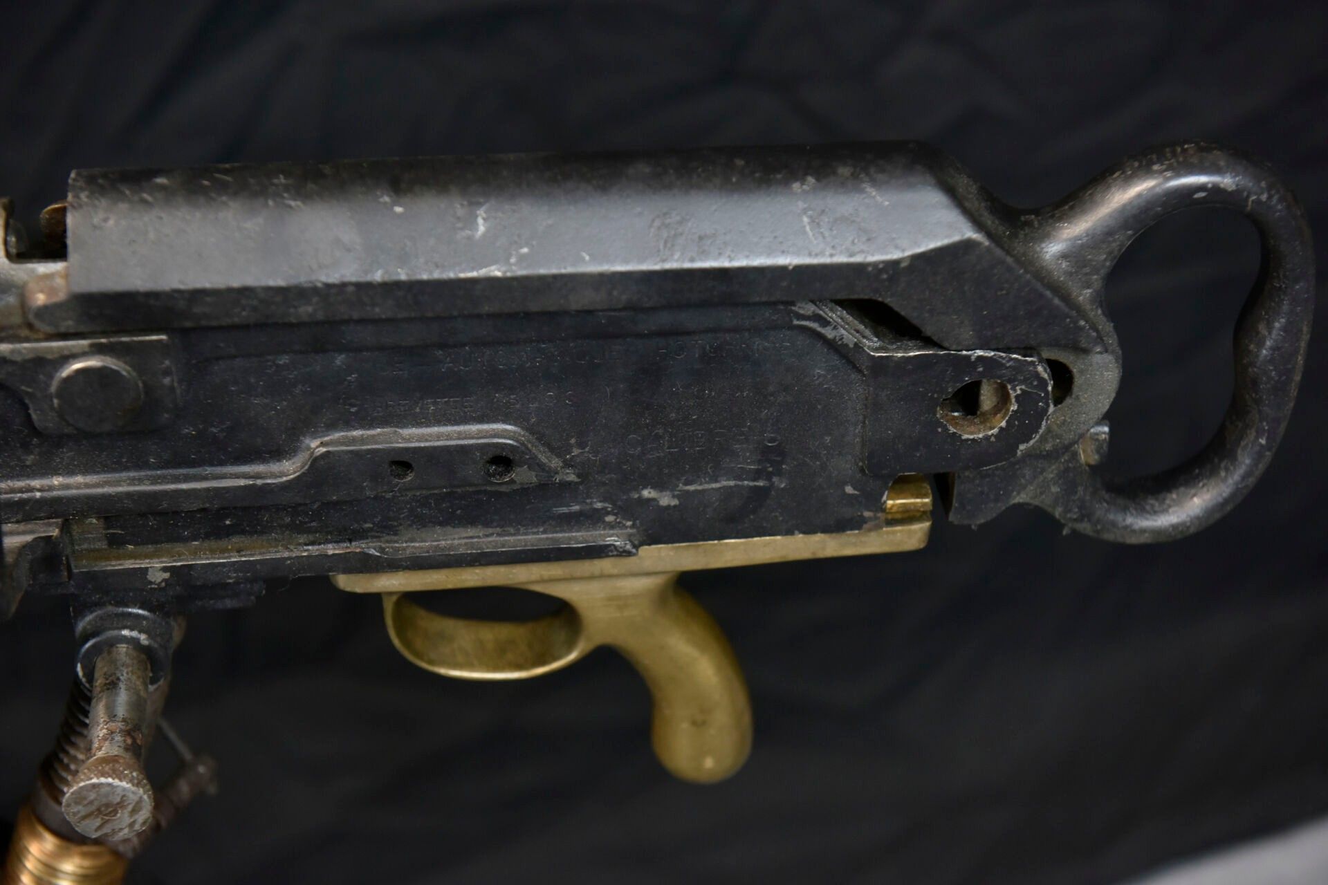 Hotchkiss machine gun. Metal tripod, 70% original colour.