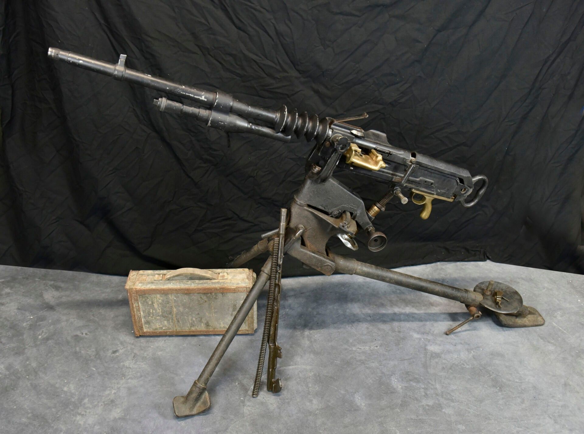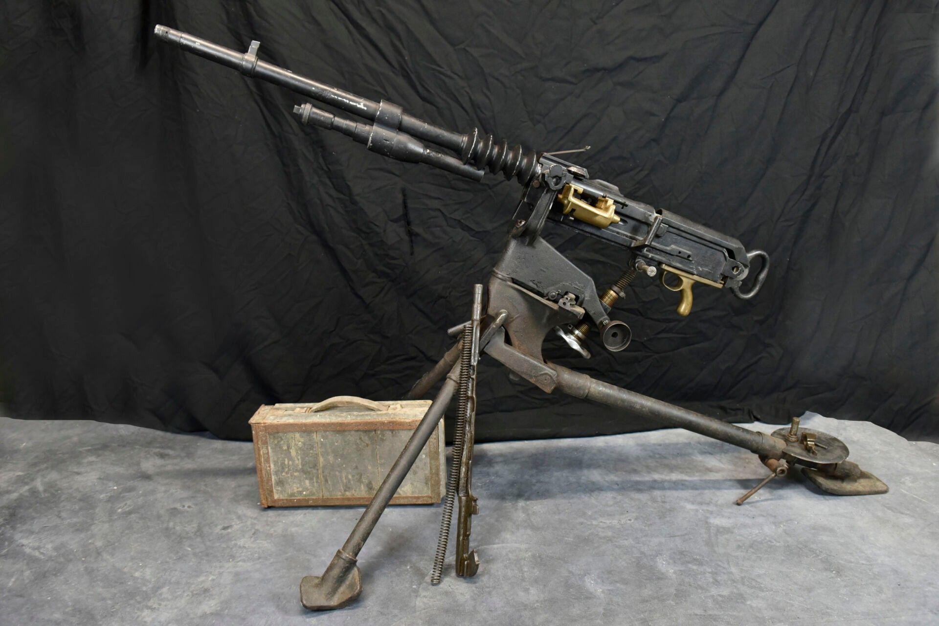 Premium Hotchkiss machine gun. Metal tripod, 70% original colour.