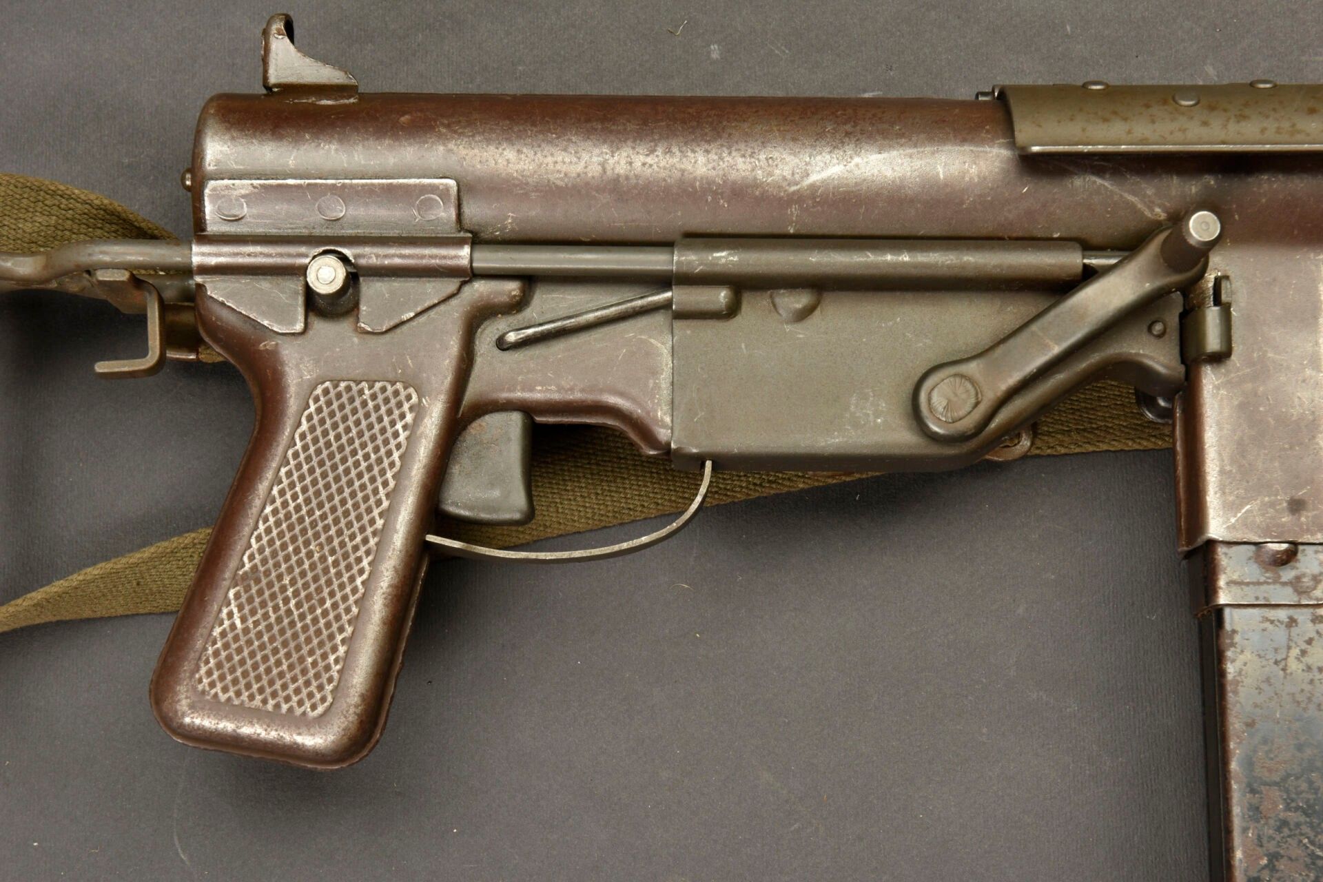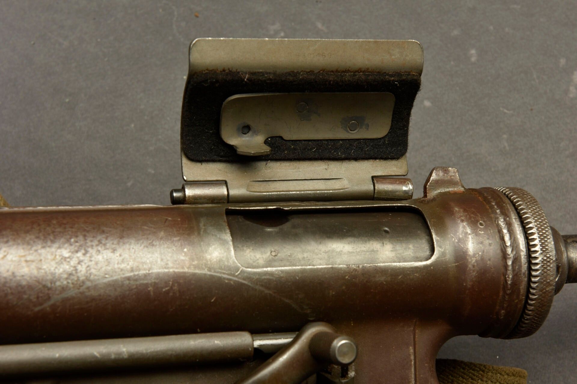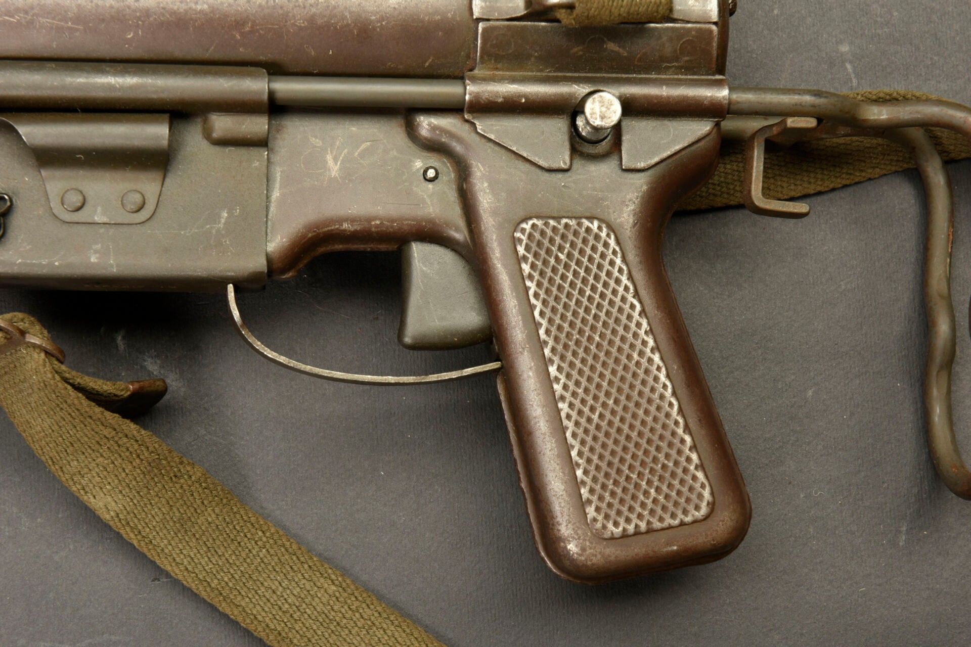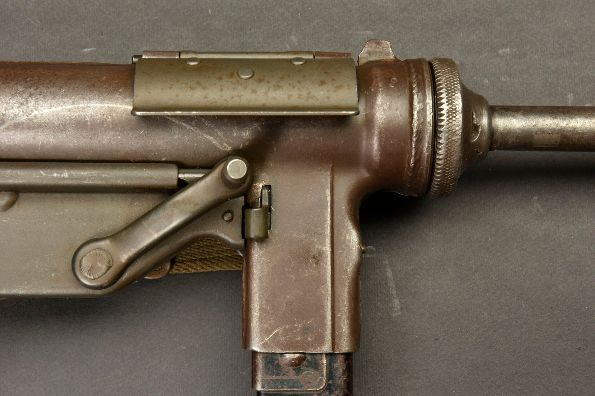Grease Gun. Manufactured by Guide Lamp Corp. Model M3 Grease Gun. Number 087363. Oil pan missing. Complete canvas shoulder strap. Functional folding stock. Magazine blocked by neutralisation. Breech made mobile by neutralisation +. To note a certain wear and patina of the part. Condition II+. 2+ C9 category weapon. Firearms deactivated EU 2017. At the time of purchase, the purchaser must present a valid identity document (CNI or passport) and, depending on the case, either an original medical certificate less than 1 month old + SIA-holder account, or a copy of both sides of the hunting licence accompanied by validation for the current year or year n-1 and the SIA-holder's account, or the sports shooting licence for the current year (licence + licence certificate downloaded from EDEN-ITAC + the sports shooter's SIA-holder's account). If the billing address is different from that shown on the identity document, proof of address less than 1 month old must be produced. The transaction will not take place until FINIADA has been consulted. The formalities and consultation of this file will be invoiced at €50 per weapon purchased (€25 inc. VAT for a professional buyer).
