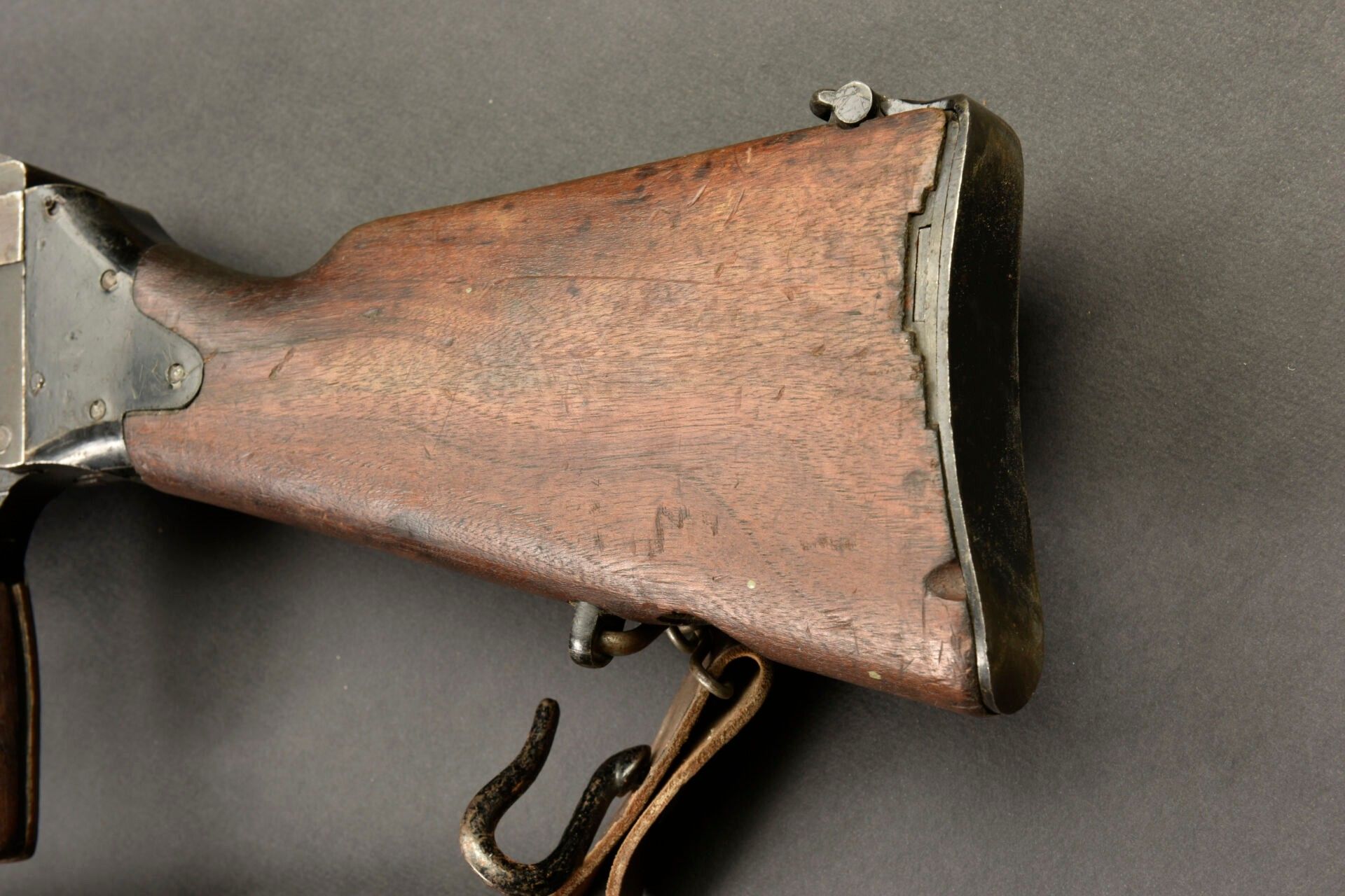 FM 24/29 machine gun. Metal fittings, in their original 80% black colour. Wooden stock and handguard. Wooden grip plate. Flame cover and bipod complete. Magazine present but blocked by neutralization. Barrel marked M29-270-N. Number D14696. Manufactured by Manufacture d'armes de Châtellerault. Complete leather sling. Some wear and patina. Condition II+. 2+ Category C9 weapon. Firearms neutralised EU 2017. At the time of purchase, the purchaser must present a valid identity document (CNI or passport) and according to the case, either an original medical certificate of less than 1 month + account SIA-holder, or a copy of both sides of the hunting licence accompanied by validation for the current year or year n-1 and the SIA-holder's account, or the sports shooting licence for the current year (licence + licence certificate downloaded from EDEN-ITAC + the sports shooter's SIA-holder's account). If the billing address is different from that shown on the identity document, proof of address less than 1 month old must be produced. The transaction will not take place until FINIADA has been consulted. The formalities and consultation of this file will be invoiced at €50 per weapon purchased (€25 inc. VAT for a professional buyer).