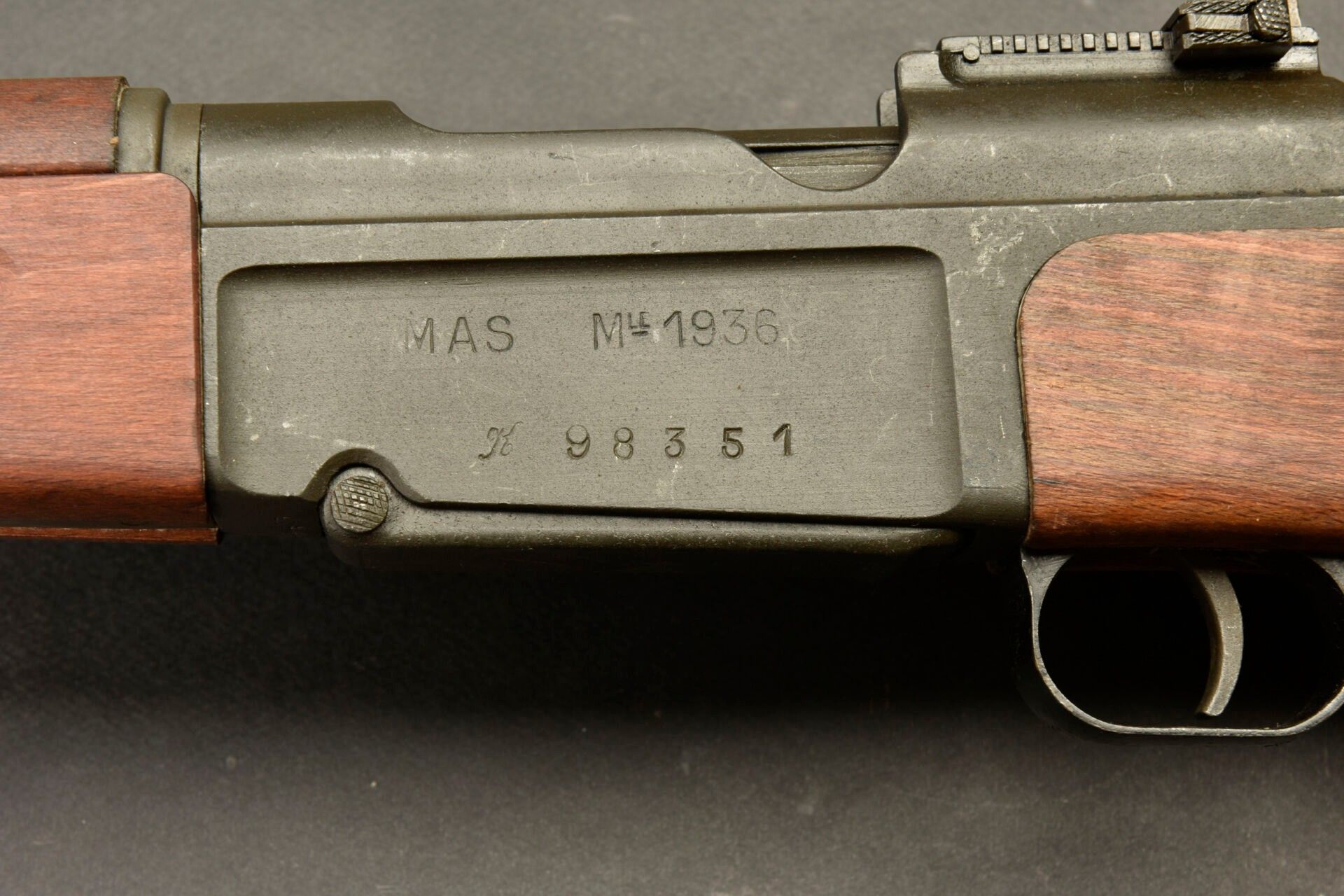 MAS 1936 manual repeating rifle. The metal parts are in very good condition. Markings MAS Manufacture d'armes de Saint-Etienne Mle 1936, number K98351. Nice wooden stock. Missing shoulder strap. Breech blocked by neutralisation. To note a certain wear and patina of the part. Condition II+. 2+ C9 category weapon. Firearms neutralised EU 2017. At the time of purchase, the purchaser must present a valid identity document (CNI or passport) and according to the case, either an original medical certificate of less than 1 month + account SIA-holder, or a copy of both sides of the hunting licence accompanied by validation for the current year or year n-1 and the SIA-holder's account, or the sports shooting licence for the current year (licence + licence certificate downloaded from EDEN-ITAC + the sports shooter's SIA-holder's account). If the billing address is different from that shown on the identity document, proof of address less than 1 month old must be produced. The transaction will not take place until FINIADA has been consulted. The formalities and consultation of this file will be invoiced at €50 per weapon purchased (€25 inc. VAT for a professional buyer).