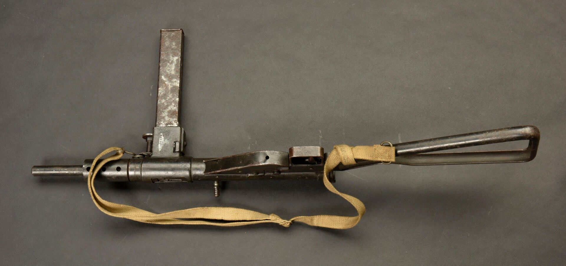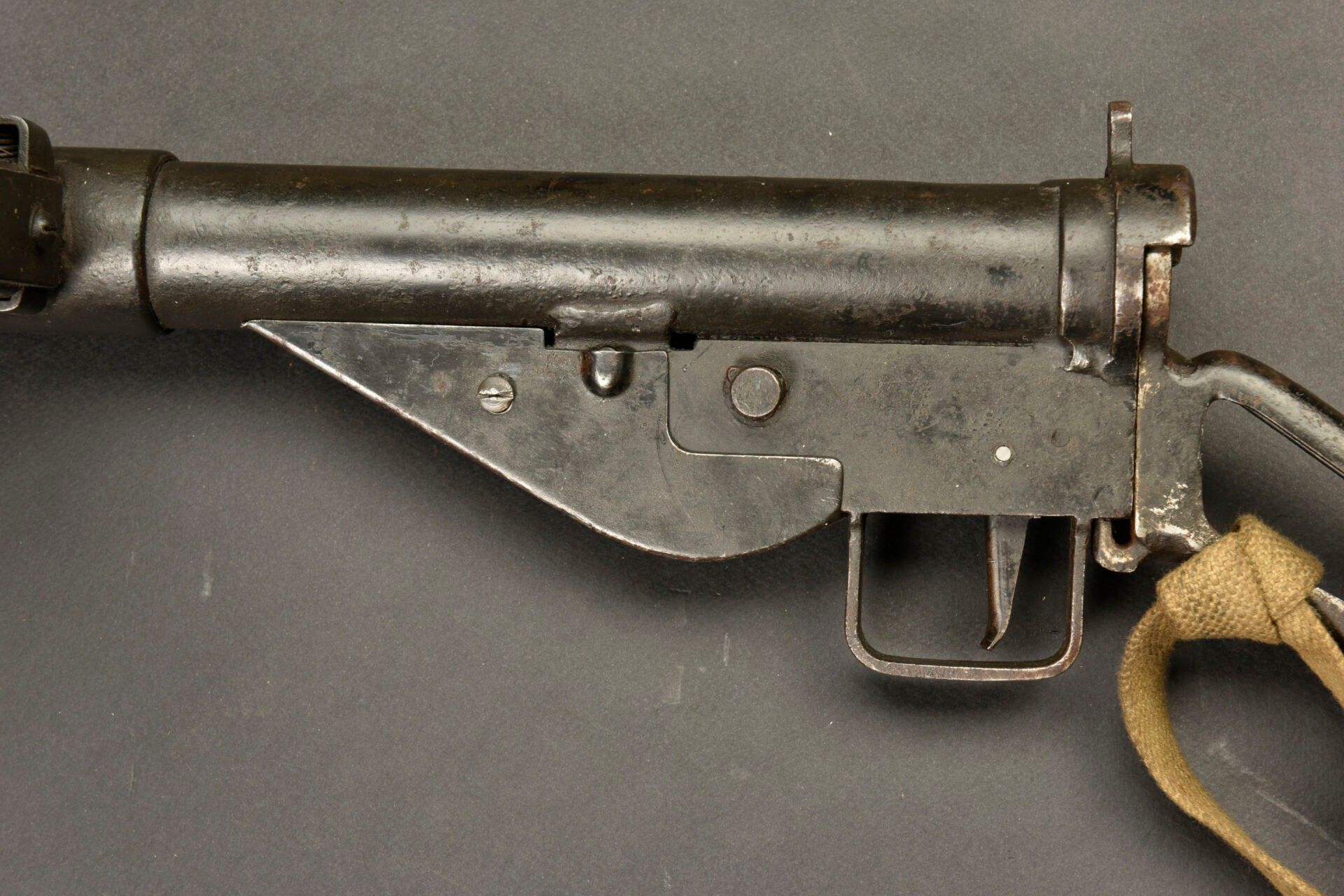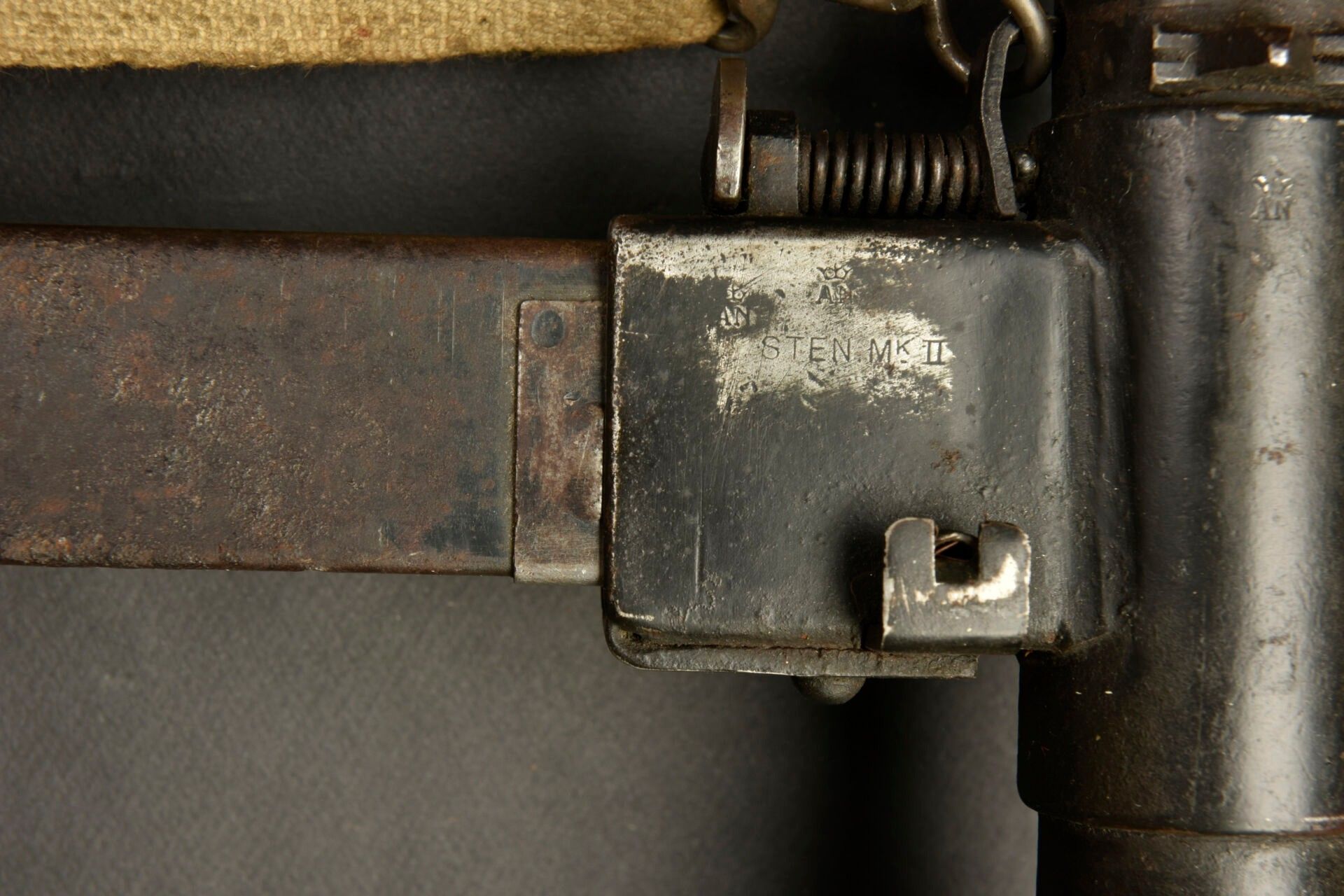 Sten MK II machine pistol. All metal, 70% original black colour. Complete skeleton stock. Magazine blocked by deactivation. Breech made mobile by neutralisation +. Complete canvas sling. Made by SECO, number FG34174. To note a certain wear and patina of the part. Condition II+. C9 category weapon. Firearms neutralised EU 2017. At the time of purchase, the purchaser must present a valid identity document (CNI or passport) and according to the case, either an original medical certificate of less than 1 month + account SIA-holder, or a copy of both sides of the hunting licence accompanied by validation for the current year or year n-1 and the SIA-holder's account, or the sports shooting licence for the current year (licence + licence certificate downloaded from EDEN-ITAC + the sports shooter's SIA-holder's account). If the billing address is different from that shown on the identity document, proof of address less than 1 month old must be produced. The transaction will not take place until FINIADA has been consulted. The formalities and consultation of this file will be invoiced at €50 per weapon purchased (€25 inc. VAT for a professional buyer).