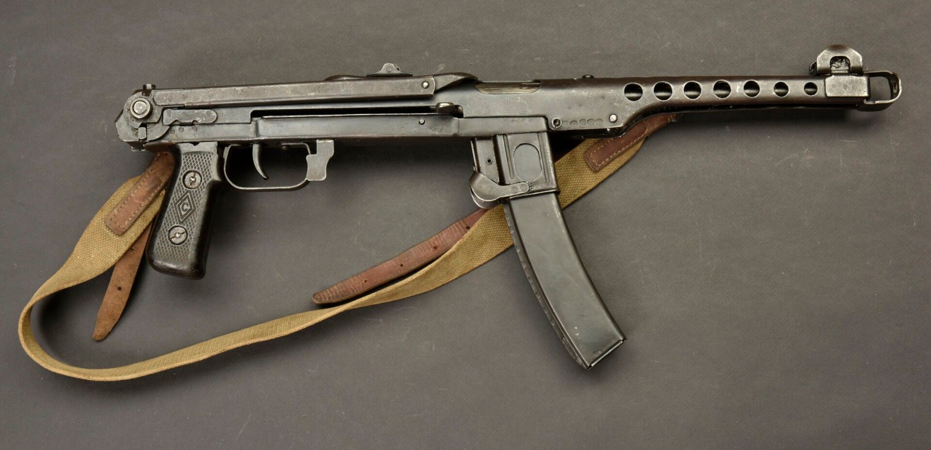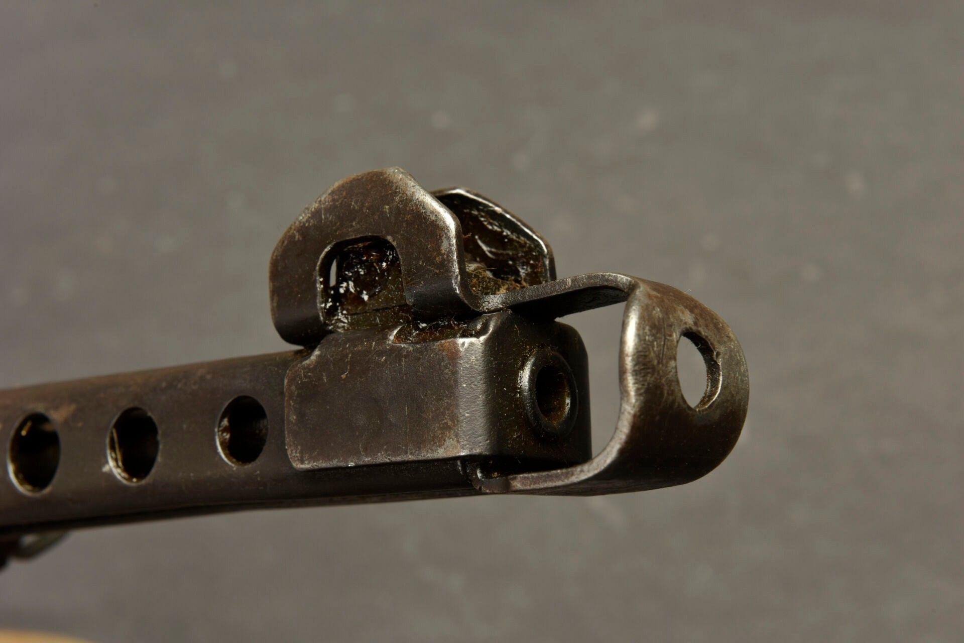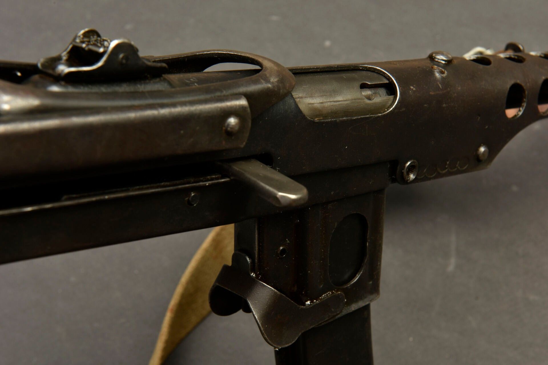 PPS 43 machine pistol. All metal, some minor traces of oxidation visible. Black bakelite grips. Complete folding stock. Canvas shoulder strap present. Breech movable due to neutralisation +. Number B121, dated 1943. Magazine blocked by neutralization. Some wear and patina. Condition II+. The Soudaïev (or Sudaev) Soviet PPS machine pistol is a machine pistol designed as a model (PPS 42) by Alekseï Soudaïev during the siege of Leningrad in 1942. It was originally intended for tankers and scouts. By removing the wooden inserts from the PPS-42 and simplifying manufacture, Soudaïev created the PPS-43, which was produced in the Soviet Union until 1945. It was a rustic model made from pressed sheet metal with welded or riveted parts. 2+. Category C9 weapon. Firearms deactivated EU 2017. At the time of purchase, the purchaser must present a valid identity document (CNI or passport) and, depending on the case, either an original medical certificate less than 1 month old + SIA-holder account, or a copy of both sides of the hunting licence accompanied by validation for the current year or year n-1 and the SIA-holder's account, or the sports shooting licence for the current year (licence + licence certificate downloaded from EDEN-ITAC + the sports shooter's SIA-holder's account). If the billing address is different from that shown on the identity document, proof of address less than 1 month old must be produced. The transaction will not take place until FINIADA has been consulted. The formalities and consultation of this file will be invoiced at €50 per weapon purchased (€25 inc. VAT for a professional buyer).