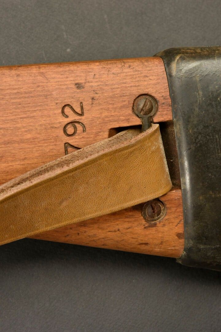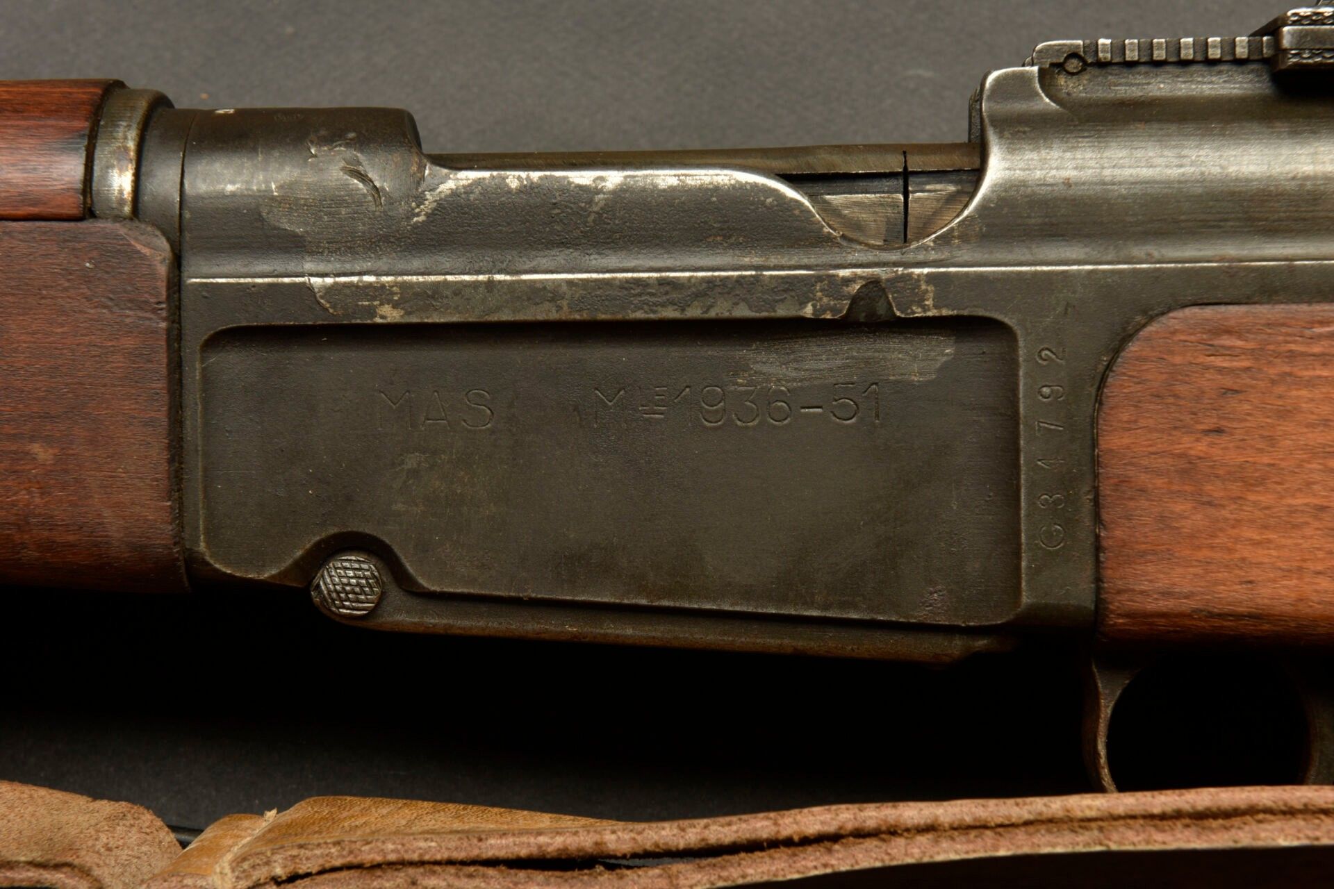 Manual repeating rifle 1936-51. Metal fittings in very good condition. Complete grenade launcher. Manufacture Manufacture d'armes de Saint Etienne MAS 1936-51, number G34792. Beautiful wooden stock, bearing the same number as the weapon. Black rubber shoulder guard. Nice tan leather sling. Breech blocked by neutralisation. Some wear and patina. Condition II+. 2+ C9 category weapon. Firearms deactivated EU 2017. At the time of purchase, the purchaser must present a valid identity document (CNI or passport) and, depending on the case, either an original medical certificate less than 1 month old + SIA-holder account, or a copy of both sides of the hunting licence accompanied by validation for the current year or year n-1 and the SIA-holder's account, or the sports shooting licence for the current year (licence + licence certificate downloaded from EDEN-ITAC + the sports shooter's SIA-holder's account). If the billing address is different from that shown on the identity document, proof of address less than 1 month old must be produced. The transaction will not take place until FINIADA has been consulted. The formalities and consultation of this file will be invoiced at €50 per weapon purchased (€25 inc. VAT for a professional buyer).