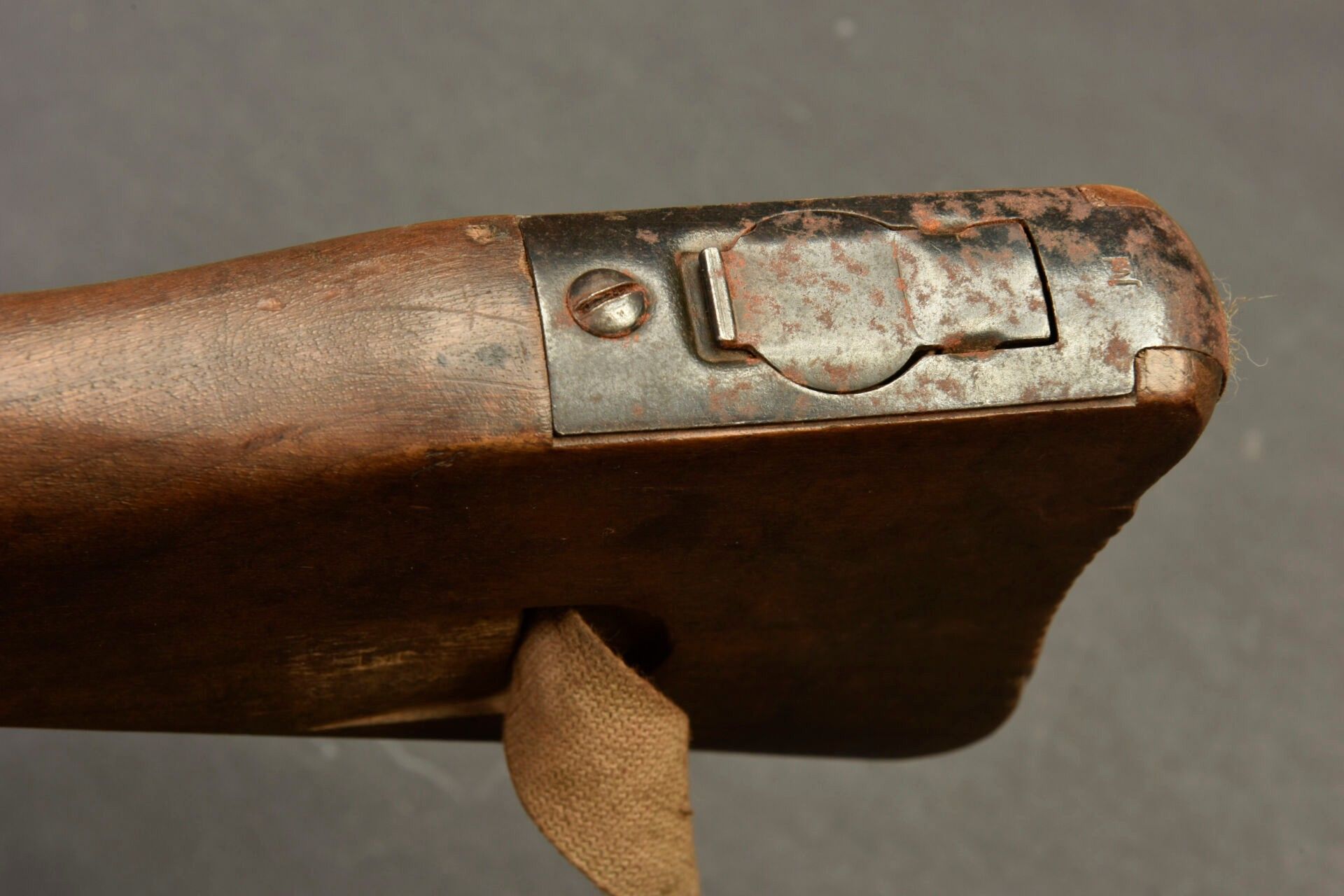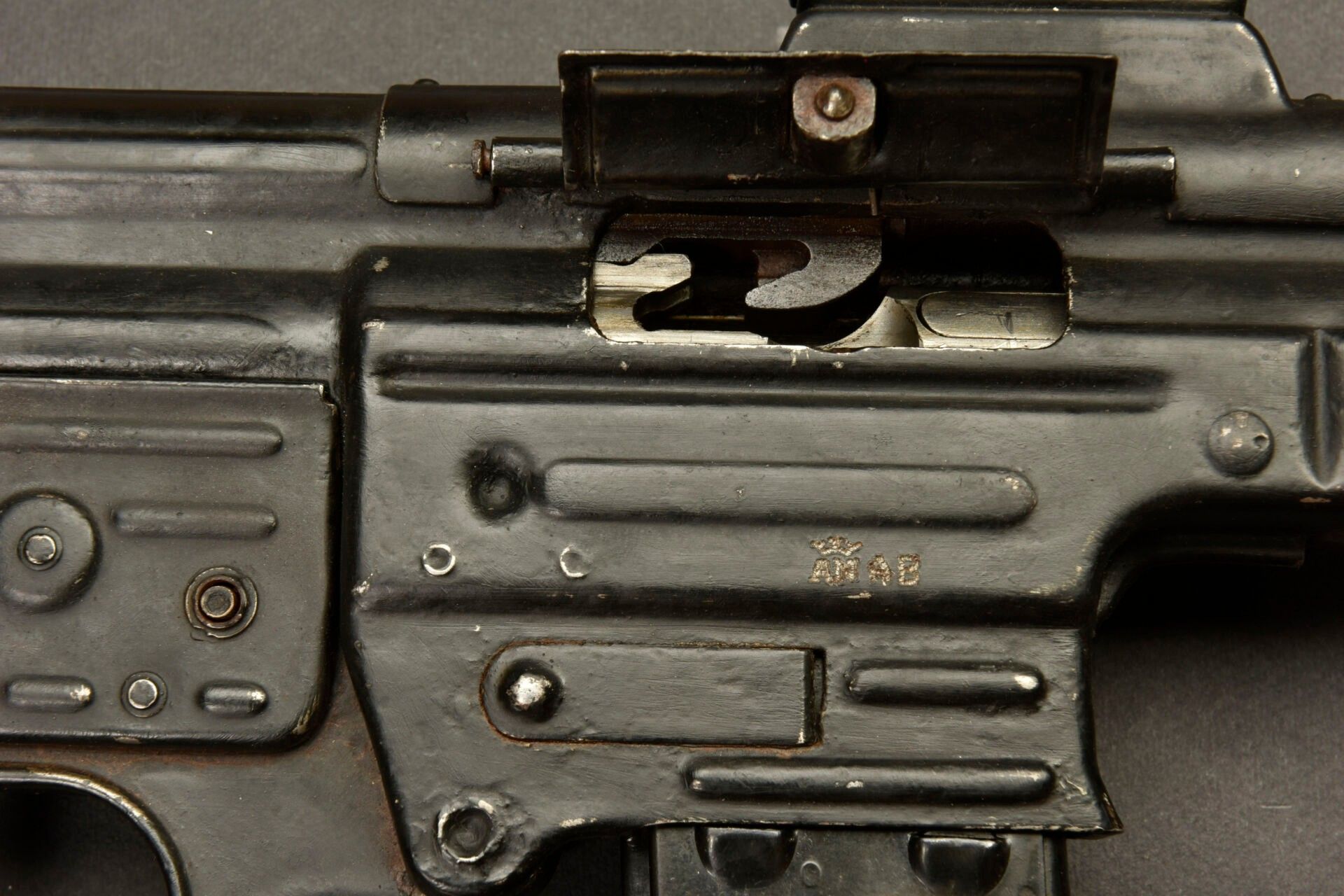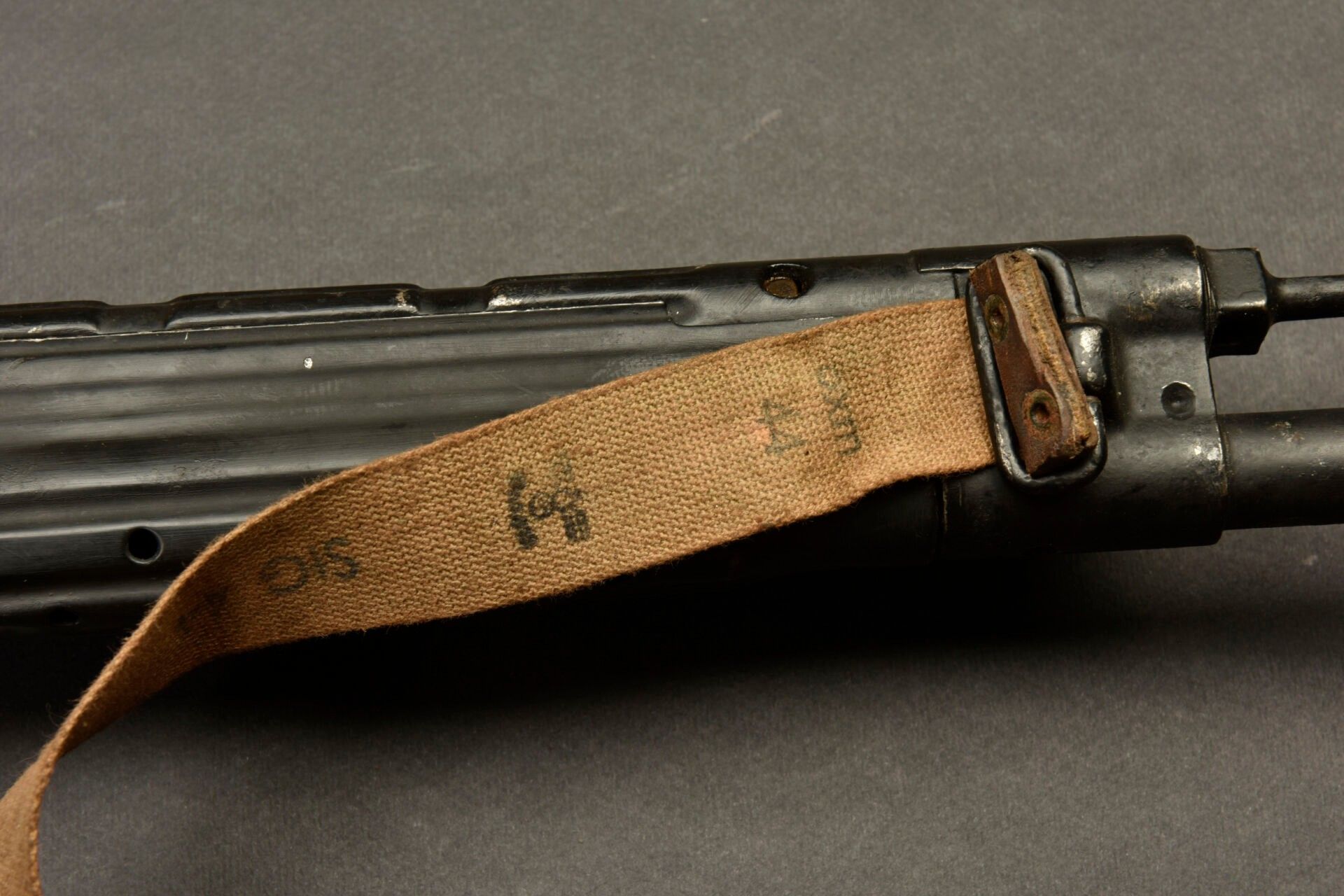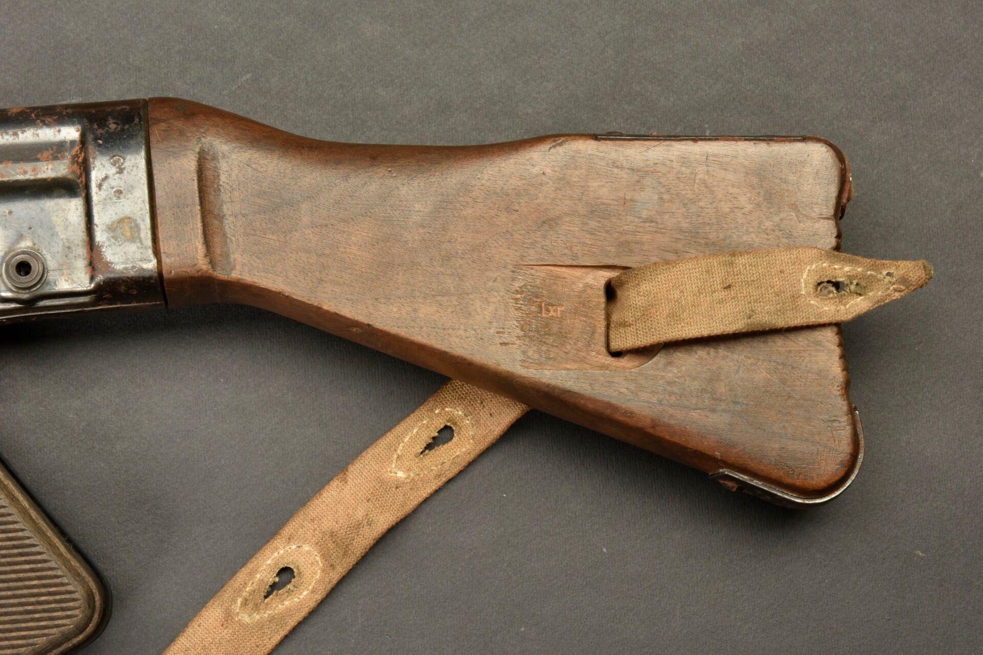 Sturmgewehr 44. The metal fittings are heavily worn and repainted black. Wooden grips, held in place by a rivet. Nice wooden stock. Breech made mobile by neutralisation +. MP43 magazine, blocked by neutralisation. Later canvas sling. Number 5576. Some wear and patina. Condition II+. C9 category weapon. Firearms deactivated EU 2017. At the time of purchase, the purchaser must present a valid identity document (CNI or passport) and, depending on the case, either an original medical certificate less than 1 month old + SIA-holder account, or a copy of both sides of the hunting licence accompanied by validation for the current year or year n-1 and the SIA-holder's account, or the sports shooting licence for the current year (licence + licence certificate downloaded from EDEN-ITAC + the sports shooter's SIA-holder's account). If the billing address is different from that shown on the identity document, proof of address less than 1 month old must be produced. The transaction will not take place until FINIADA has been consulted. The formalities and consultation of this file will be invoiced at €50 per weapon purchased (€25 inc. VAT for a professional buyer).