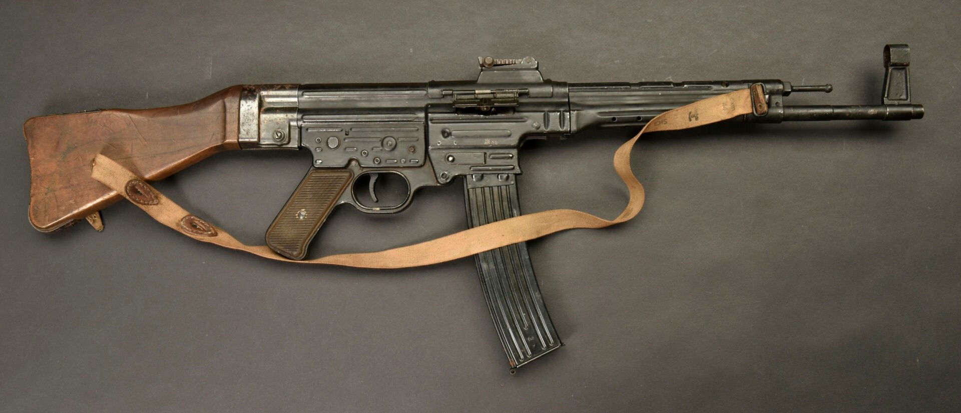 Sturmgewehr 44. The metal fittings are heavily worn and repa…