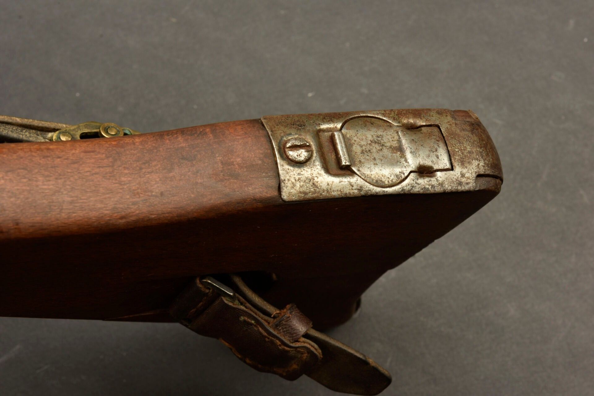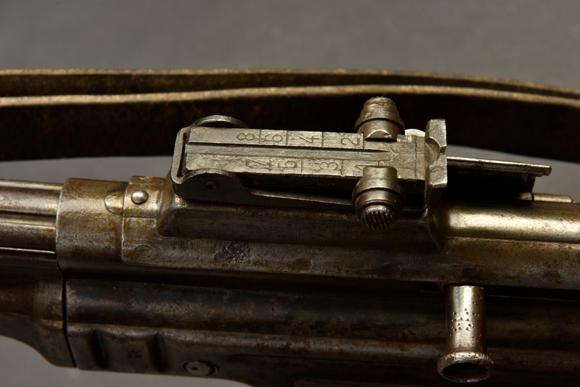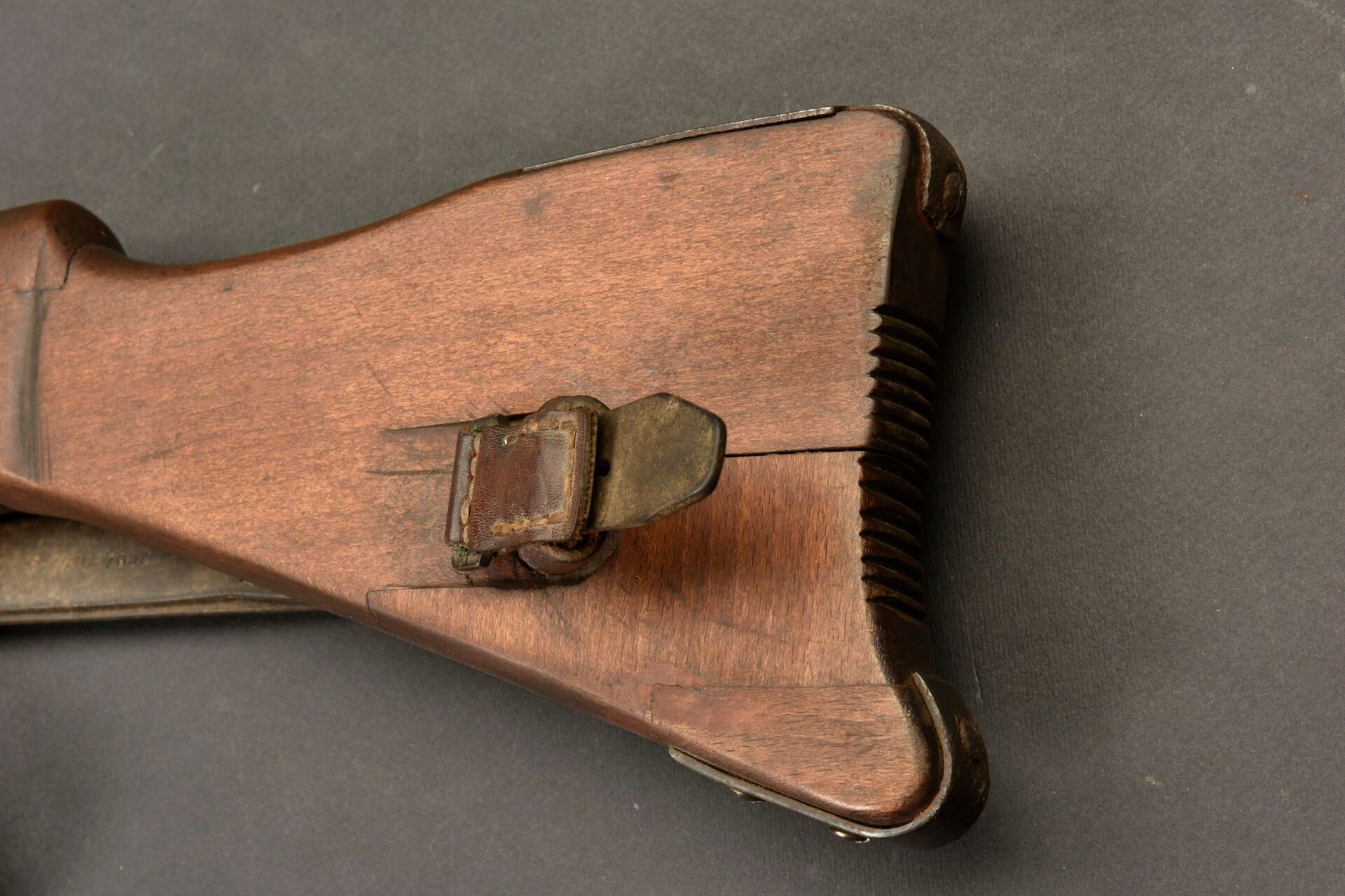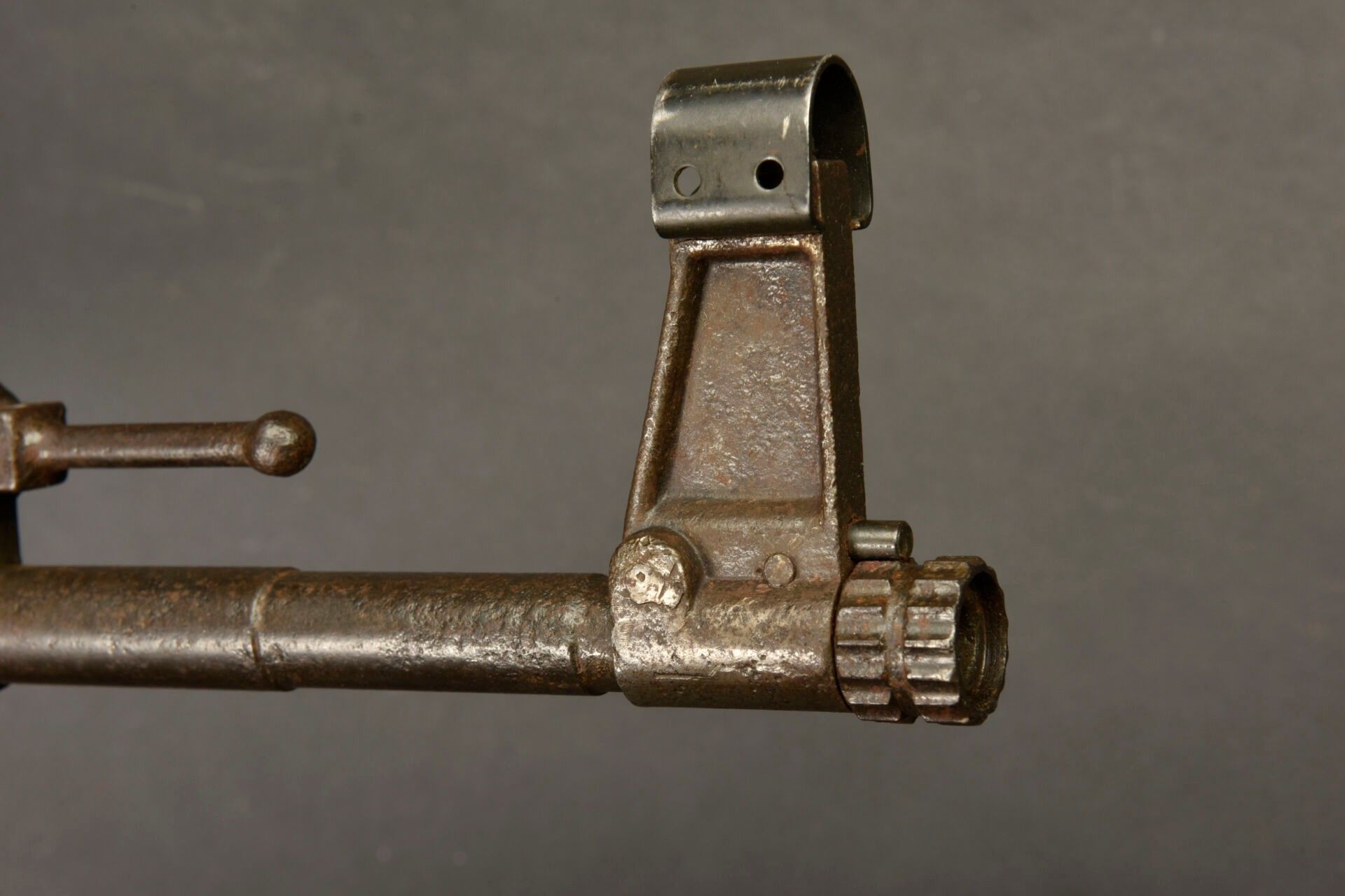 MP44 machine pistol. Heavily oxidised metal fittings. Brown bakelite grips. Wooden stock complete but cracked, probably a later model. FXO manufacture. Number 3863. Beautifully marked MP44. Magazine blocked by neutralisation, marked MP 44. Breech made mobile by the neutralization +. Nice leather strap. Some wear and patina. Condition II+. C9 category weapon. Firearms deactivated EU 2017. At the time of purchase, the purchaser must present a valid identity document (CNI or passport) and according to the case, either an original medical certificate of less than 1 month + account SIA-holder, or a copy of both sides of the hunting licence accompanied by validation for the current year or year n-1 and the SIA-holder's account, or the sports shooting licence for the current year (licence + licence certificate downloaded from EDEN-ITAC + the sports shooter's SIA-holder's account). If the billing address is different from that shown on the identity document, proof of address less than 1 month old must be produced. The transaction will not take place until FINIADA has been consulted. The formalities and consultation of this file will be invoiced at €50 per weapon purchased (€25 inc. VAT for a professional buyer).