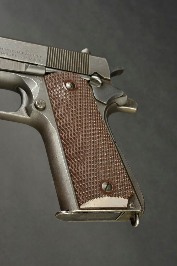 Colt 45 gun. 80% tanning. United States Property M1944 A1 US Army markings. Number 984536. Brown bakelite grips. Magazine blocked by neutralization. Manufactured by Remington Rand Inc Syracuse NY USA. Breech made mobile by a neutralization +. To note a certain wear and patina of the part. Condition II+. Gun of category C9. Firearms deactivated EU 2017. At the time of purchase, the purchaser must present a valid identity document (CNI or passport) and according to the case, either an original medical certificate of less than 1 month + account SIA-holder, or a copy of both sides of the hunting licence accompanied by validation for the current year or year n-1 and the SIA-holder's account, or the sports shooting licence for the current year (licence + licence certificate downloaded from EDEN-ITAC + the sports shooter's SIA-holder's account). If the billing address is different from that shown on the identity document, proof of address less than 1 month old must be produced. The transaction will not take place until FINIADA has been consulted. The formalities and consultation of this file will be invoiced at €50 per weapon purchased (€25 inc. VAT for a professional buyer).