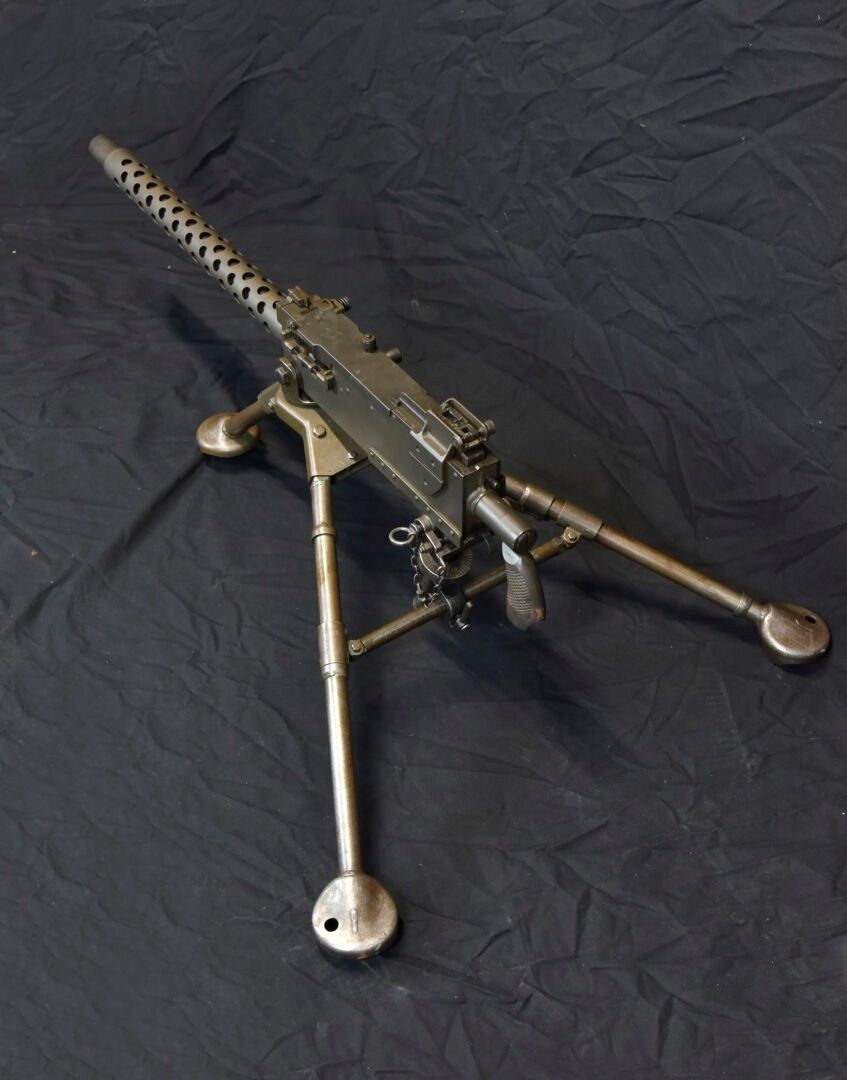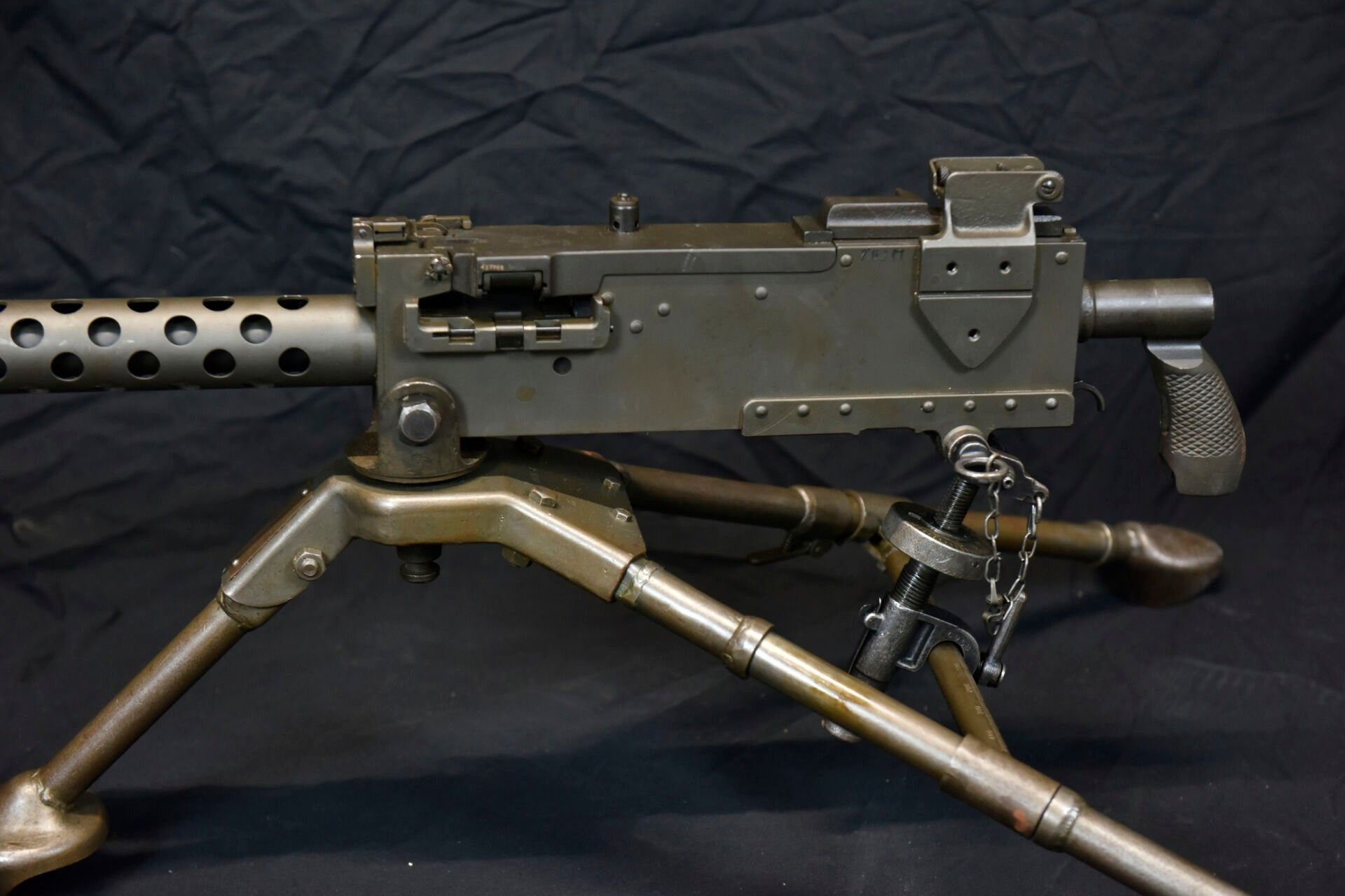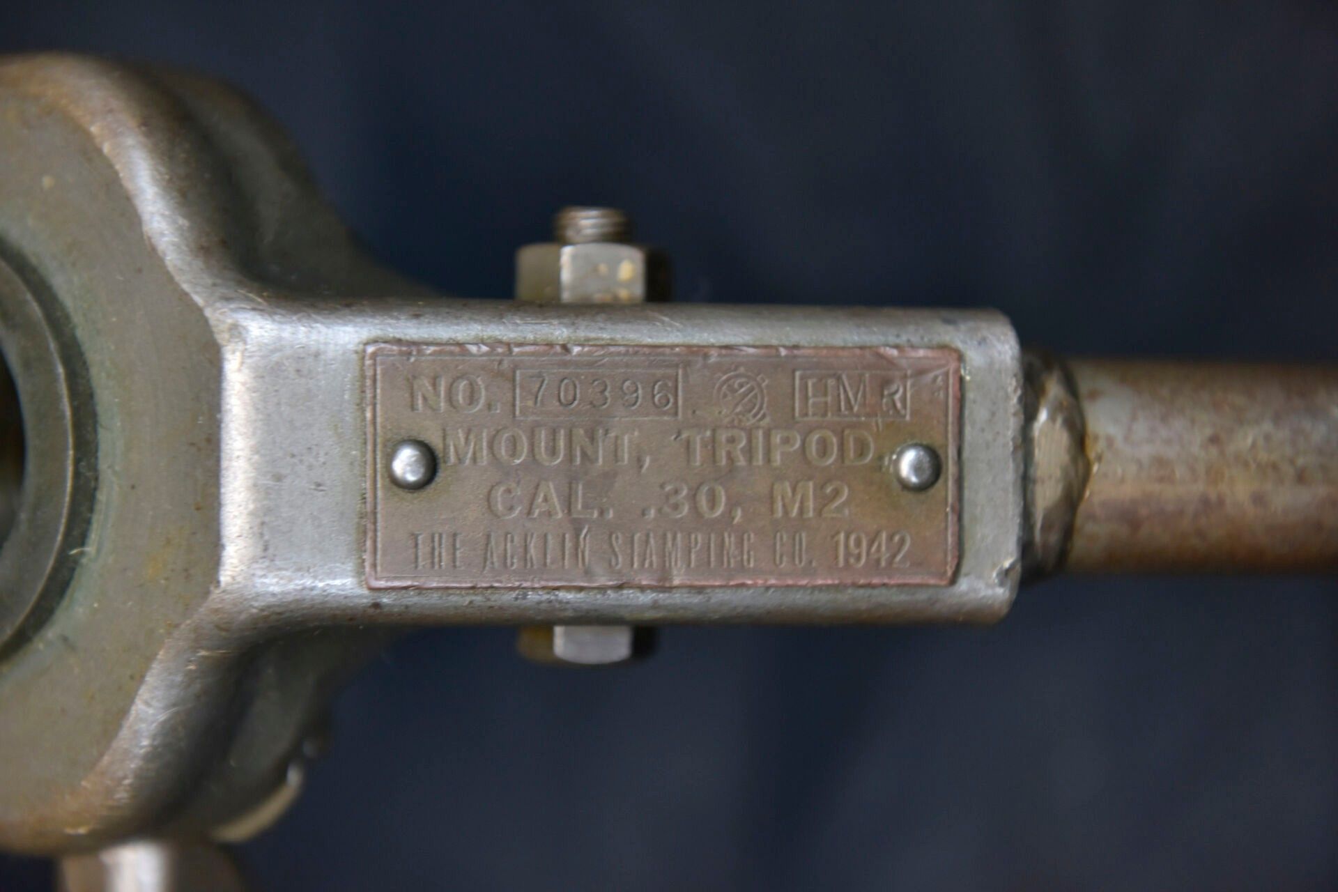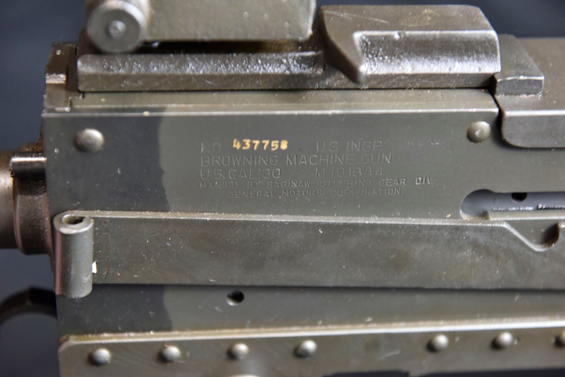30US machine gun. All metal, 80% tanning. Movable breech thanks to a neutralization +. Manufactured Saginaw Browning 1919A4, number 437758. Complete metal tripod, all moving parts functional. Marking on baseplate ACKB. Plate 70396 HMR Mount Tripod Cal 30 M2, the Akling Stamping 1942. Elevatine present. Some wear and patina. Condition II+ Category C9 weapon. Firearms neutralised EU 2017. At the time of purchase, the purchaser must present a valid identity document (CNI or passport) and according to the case, either an original medical certificate of less than 1 month + account SIA-holder, or a copy of both sides of the hunting licence accompanied by validation for the current year or year n-1 and the SIA-holder's account, or the sports shooting licence for the current year (licence + licence certificate downloaded from EDEN-ITAC + the sports shooter's SIA-holder's account). If the billing address is different from that shown on the identity document, proof of address less than 1 month old must be produced. The transaction will not take place until FINIADA has been consulted. The formalities and consultation of this file will be invoiced at €50 per weapon purchased (€25 inc. VAT for a professional buyer).