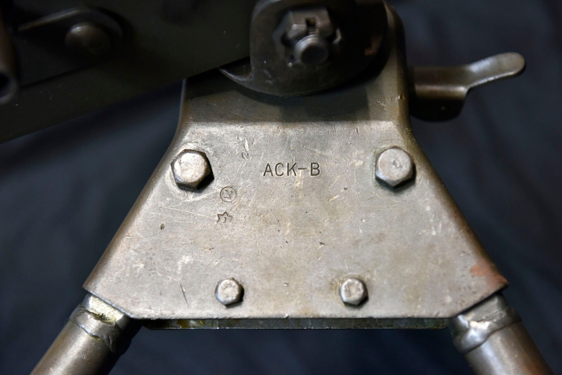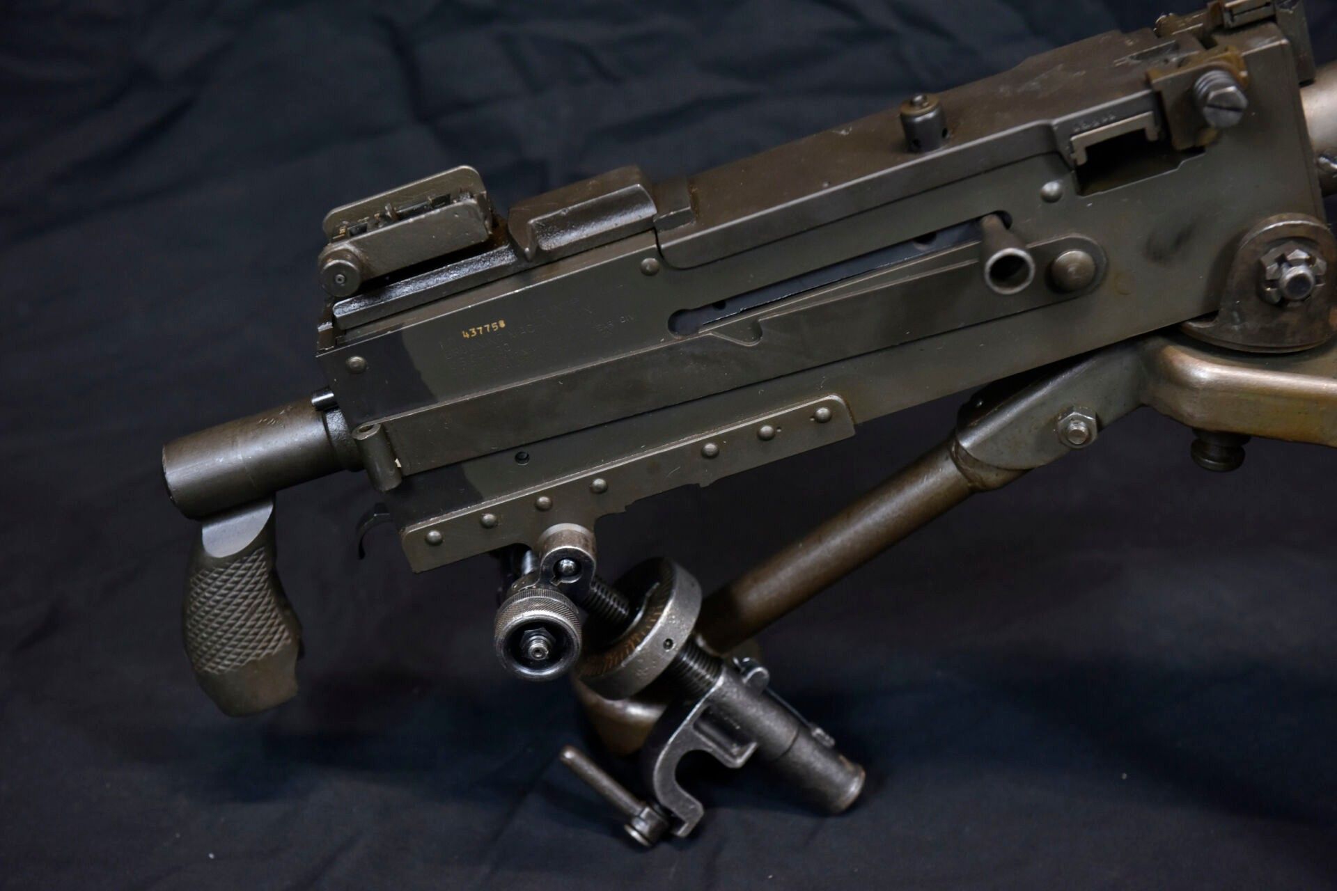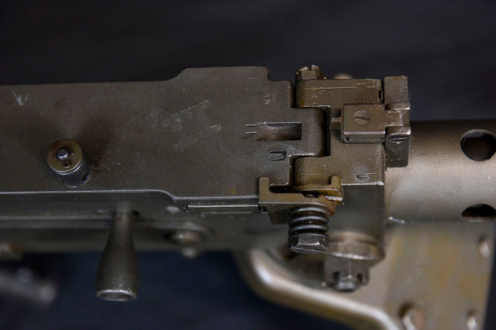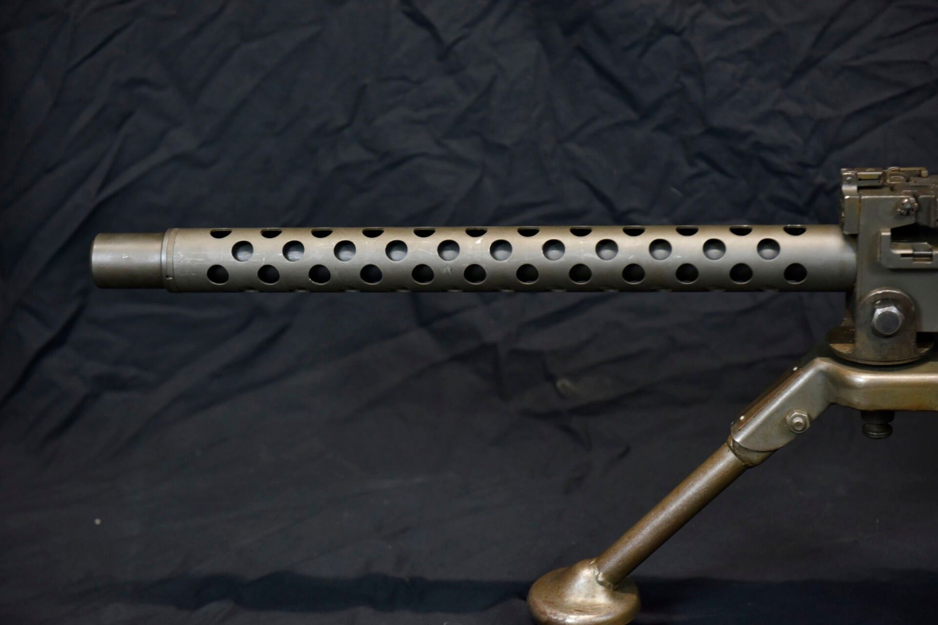 30US machine gun. All metal, 80% tanning. Movable breech thanks to a neutralization +. Manufactured Saginaw Browning 1919A4, number 437758. Complete metal tripod, all moving parts functional. Marking on baseplate ACKB. Plate 70396 HMR Mount Tripod Cal 30 M2, the Akling Stamping 1942. Elevatine present. Some wear and patina. Condition II+ Category C9 weapon. Firearms neutralised EU 2017. At the time of purchase, the purchaser must present a valid identity document (CNI or passport) and according to the case, either an original medical certificate of less than 1 month + account SIA-holder, or a copy of both sides of the hunting licence accompanied by validation for the current year or year n-1 and the SIA-holder's account, or the sports shooting licence for the current year (licence + licence certificate downloaded from EDEN-ITAC + the sports shooter's SIA-holder's account). If the billing address is different from that shown on the identity document, proof of address less than 1 month old must be produced. The transaction will not take place until FINIADA has been consulted. The formalities and consultation of this file will be invoiced at €50 per weapon purchased (€25 inc. VAT for a professional buyer).