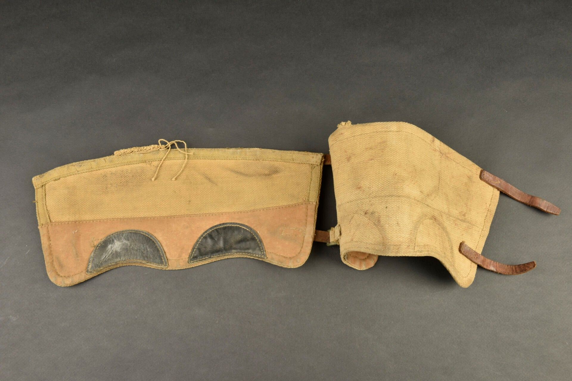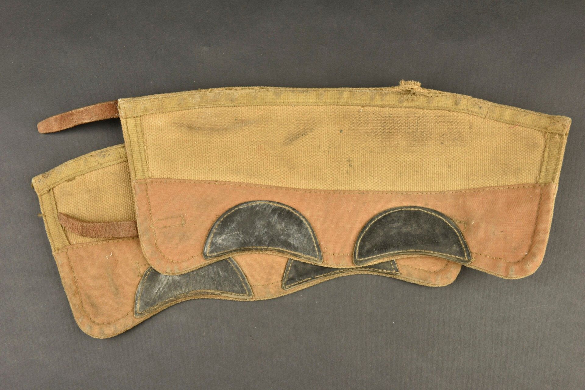 British gaiters. Homogeneous pair in strong webbing. The leather cords are present. The markings are partially illegible. Some wear and patina. Condition II+. 2+