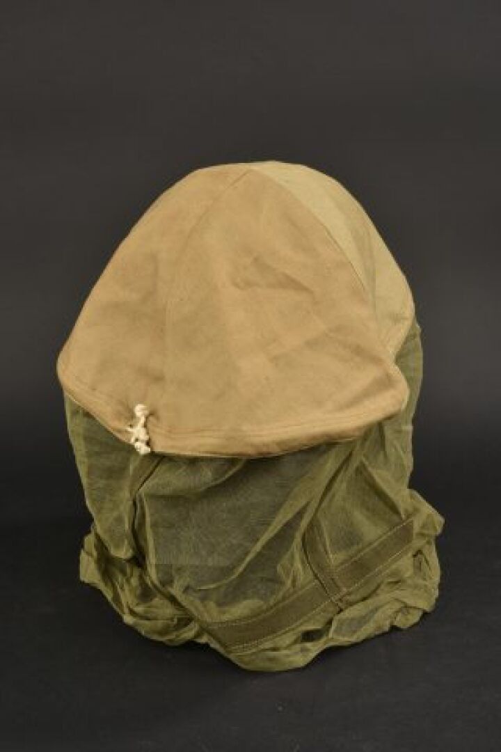 British helmet mosquito net. Upper part in thick beige fabri…