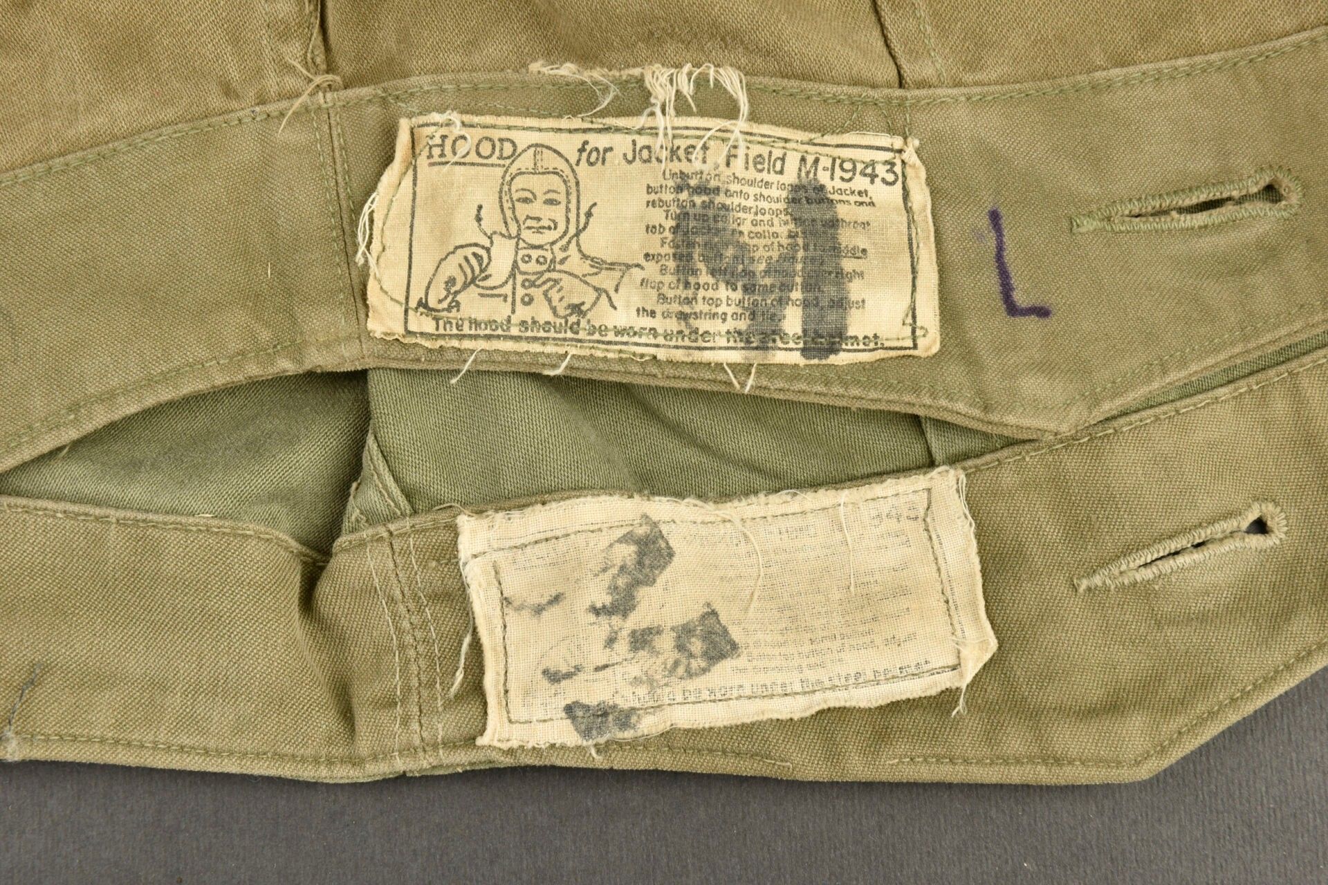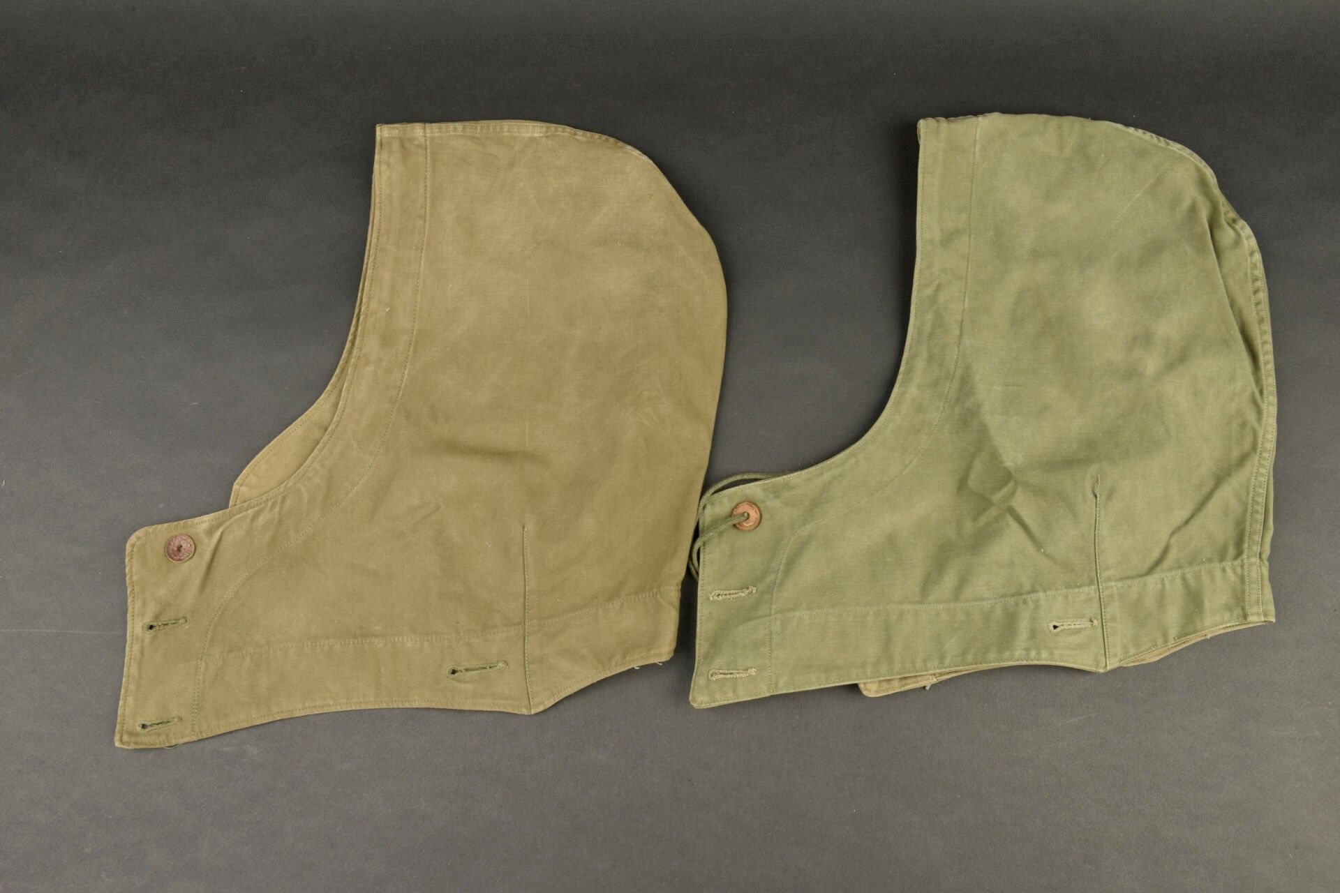 US hoods. Includes two hoods for M-43 jacket. OD7 cotton fabric, buttons and drawstrings are present. Instructions are incomplete. Manufacturer's labels are missing. There is some wear and patina to the parts, as well as a few stains. Condition II+. 2+