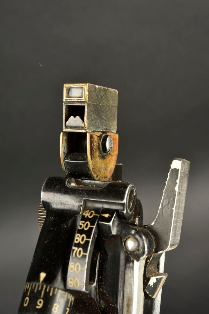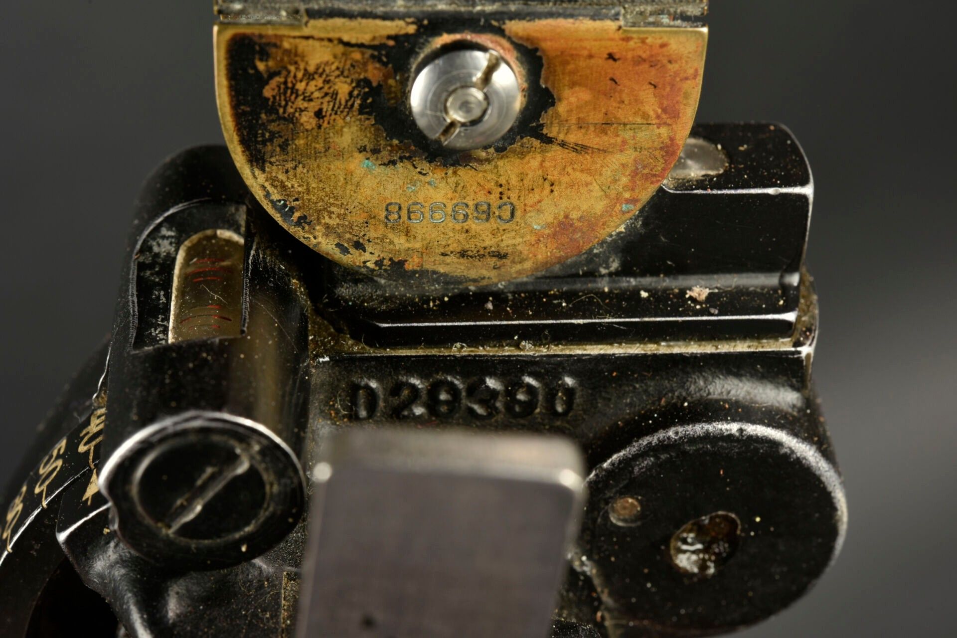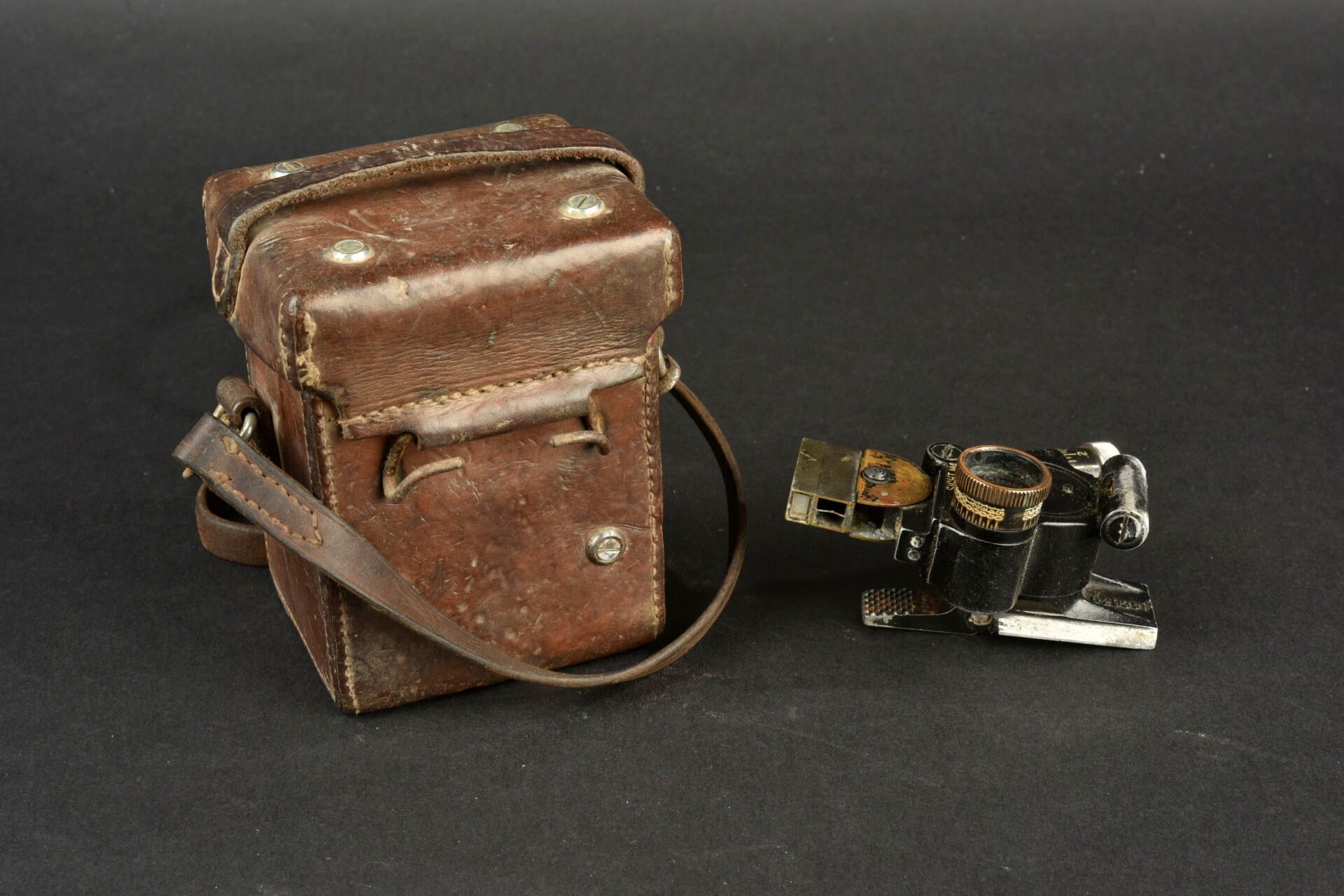 Sight M4. Metal, all moving parts are functional. Sight M4 NO 1685 WPB B&Lopt CO 1940 Rochester NY markings. Thick brown leather case. Closing strap and carrying strap are present. Markings D29377 Case Carrying M14. The internal racks are present. Some wear, patina and stains. Condition II+. 2+
