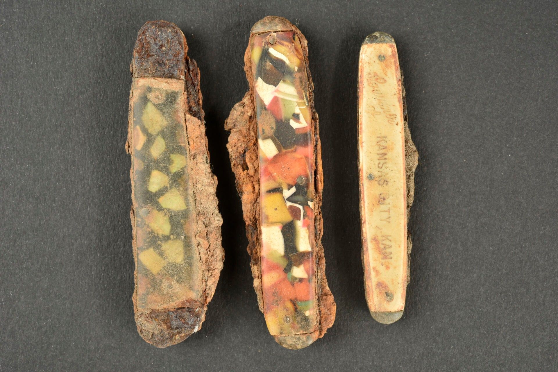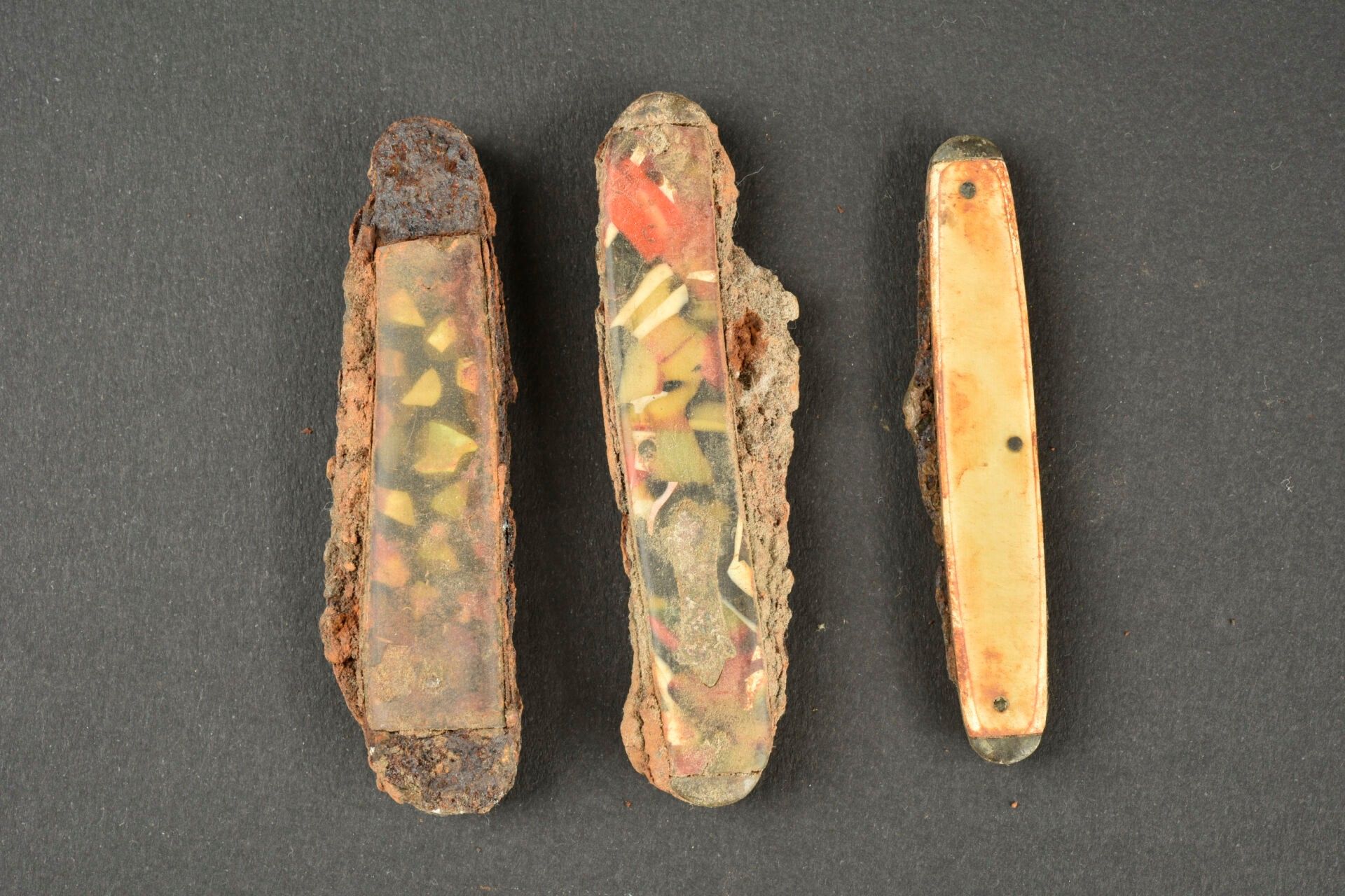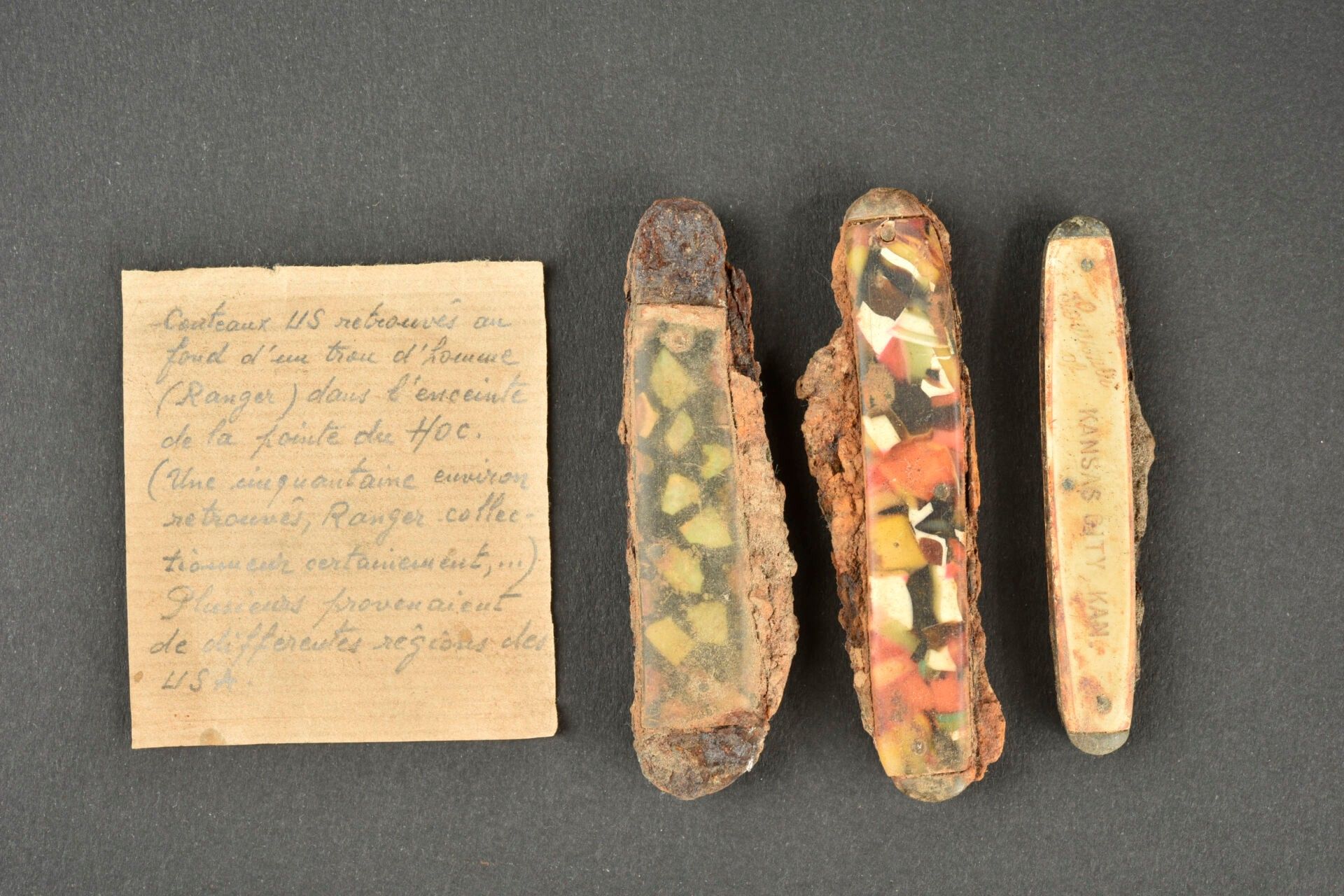 Pointe de Hoc knives. Three excavation knives. According to the seller, these objects come from the area around Pointe du Hoc. Excavation pieces. Condition III-. 3+