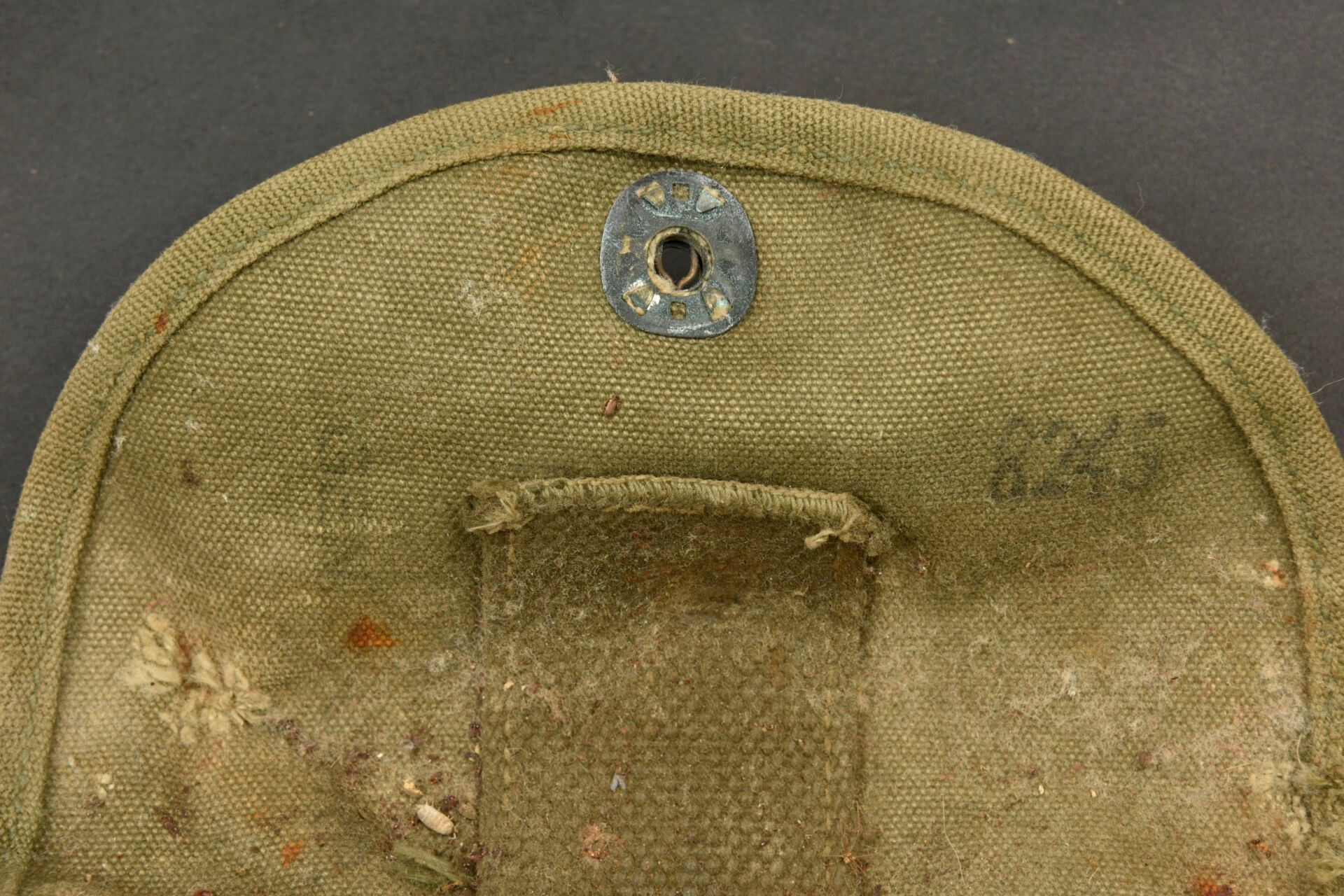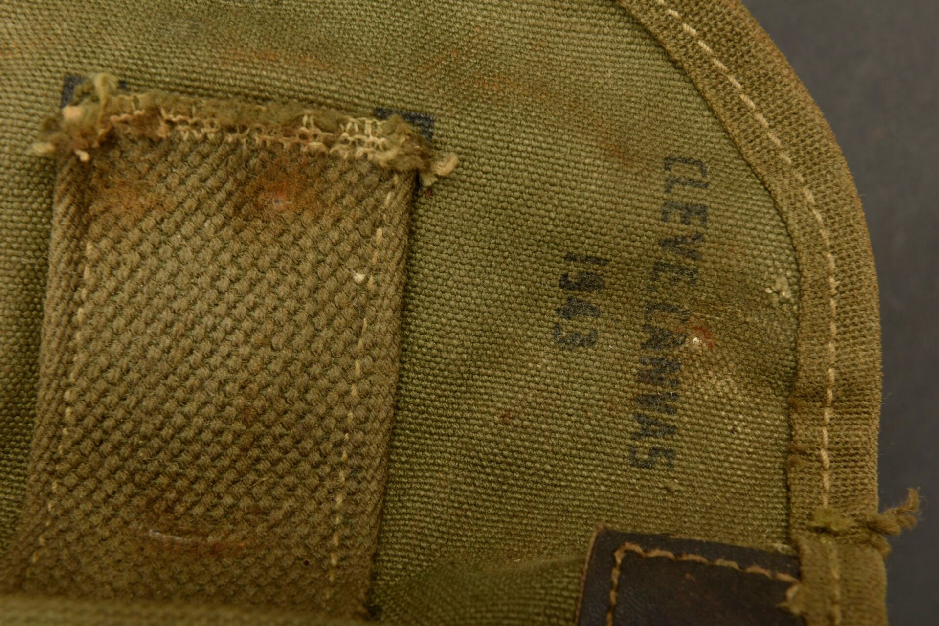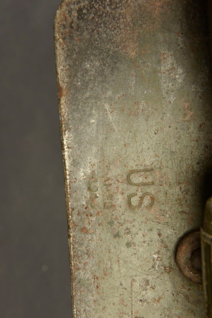 US shovels. Comprising two M-43 shovels. One wooden handle has 60% khaki paint, the second is completely unpainted, it is also eaten by worms. The metal parts are oxidised, only one part is marked AMES. Heavy OD canvas covers, the press studs are functional. The belt attachment hooks are present. One is adjustable, the other is not. The manufacturer's markings are partially illegible. There is some wear and patina to the parts, as well as stains and tears. Condition II+. 2+