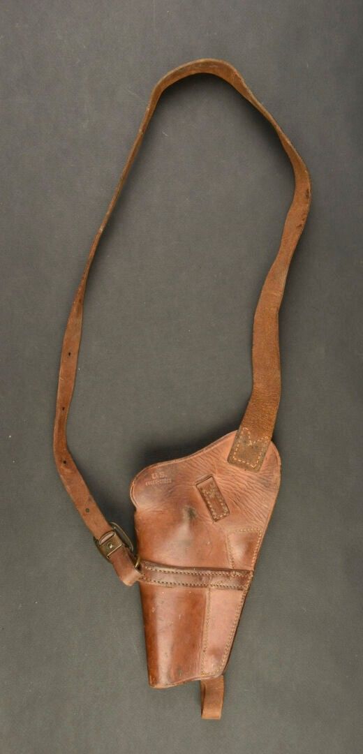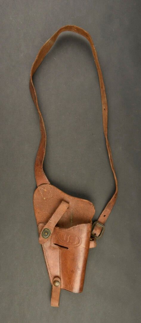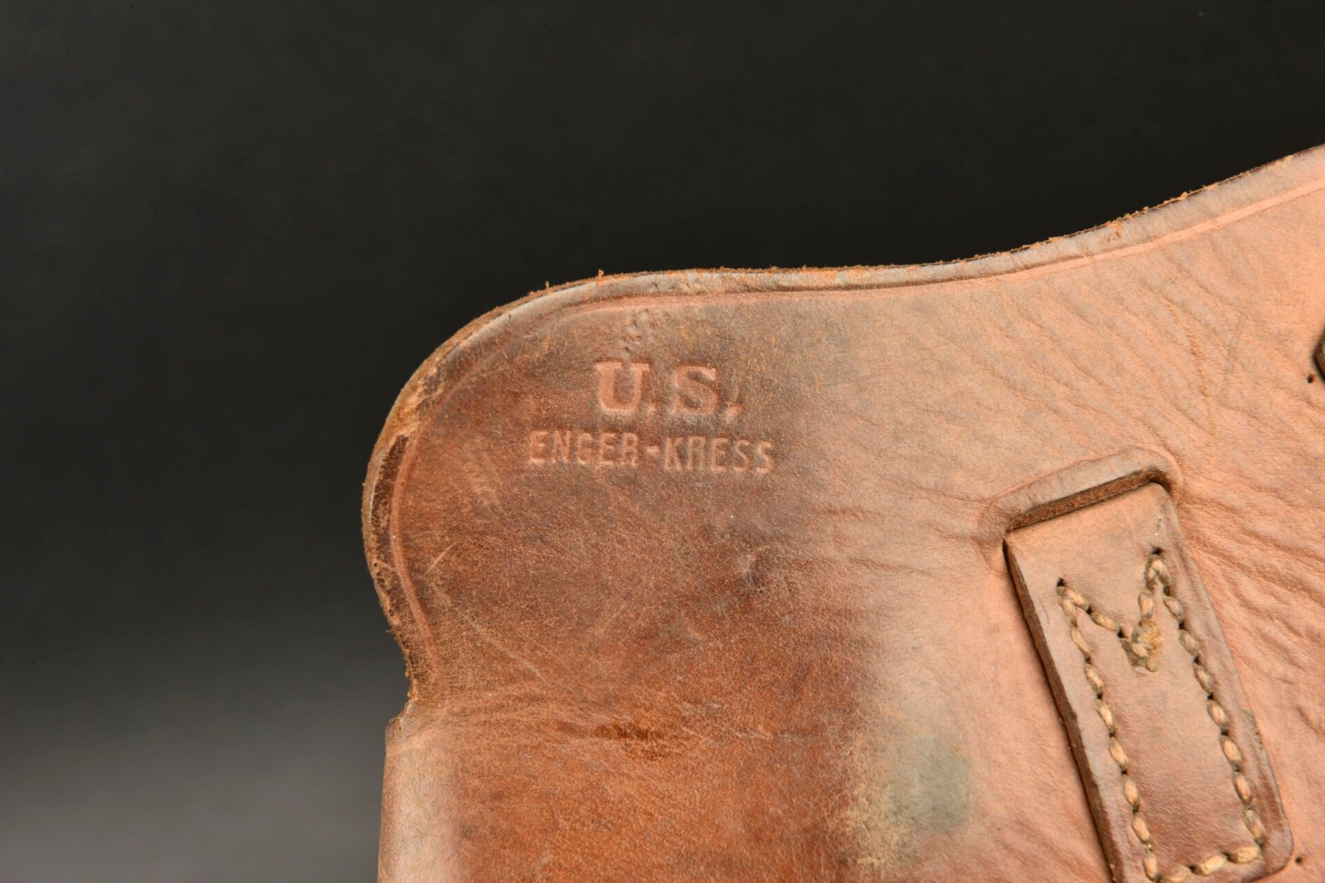 US tanker holster ww2. In brown leather, all straps are present as well as functional fasteners and press studs. Good US markings on front. US Enger Kress markings on back. II+