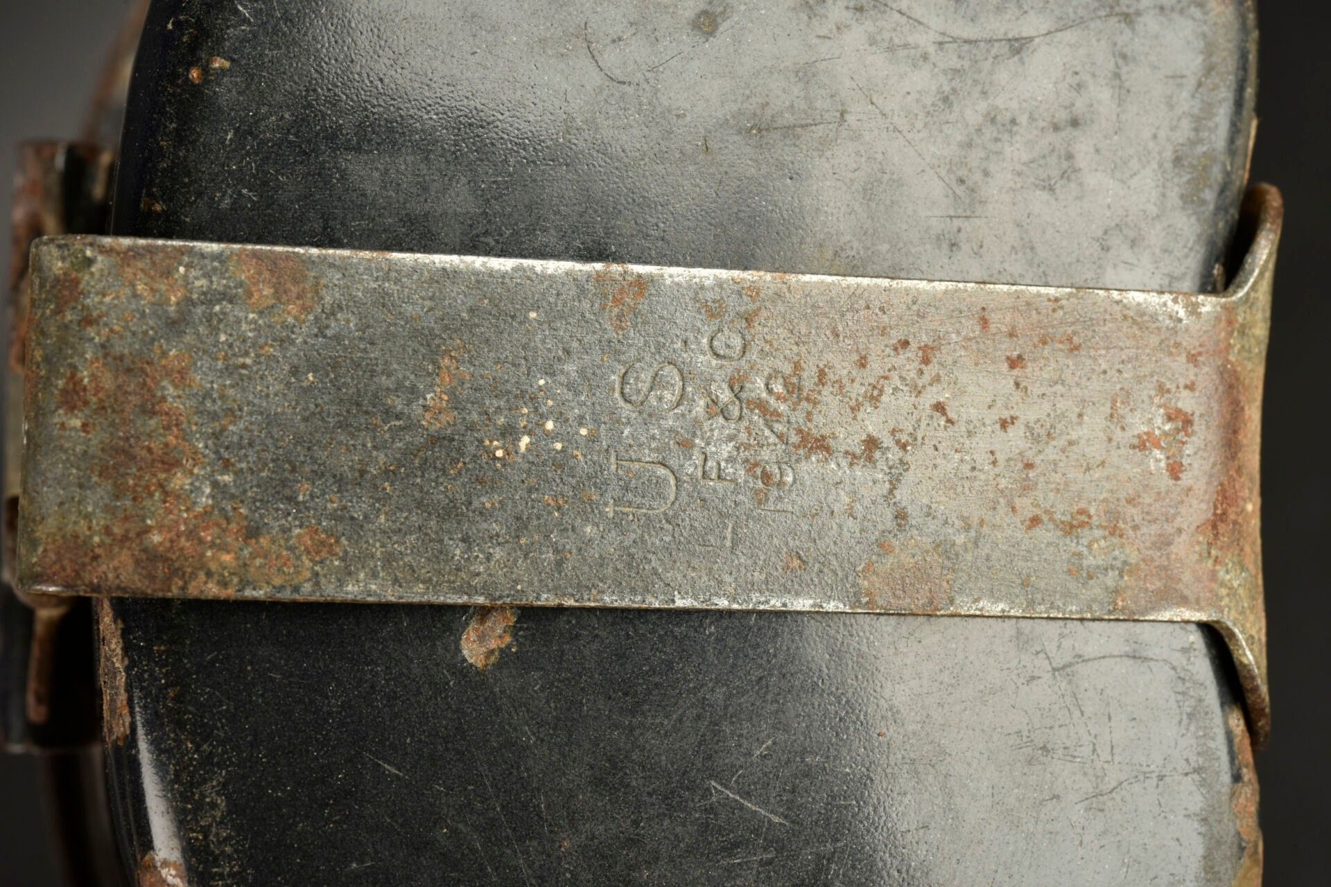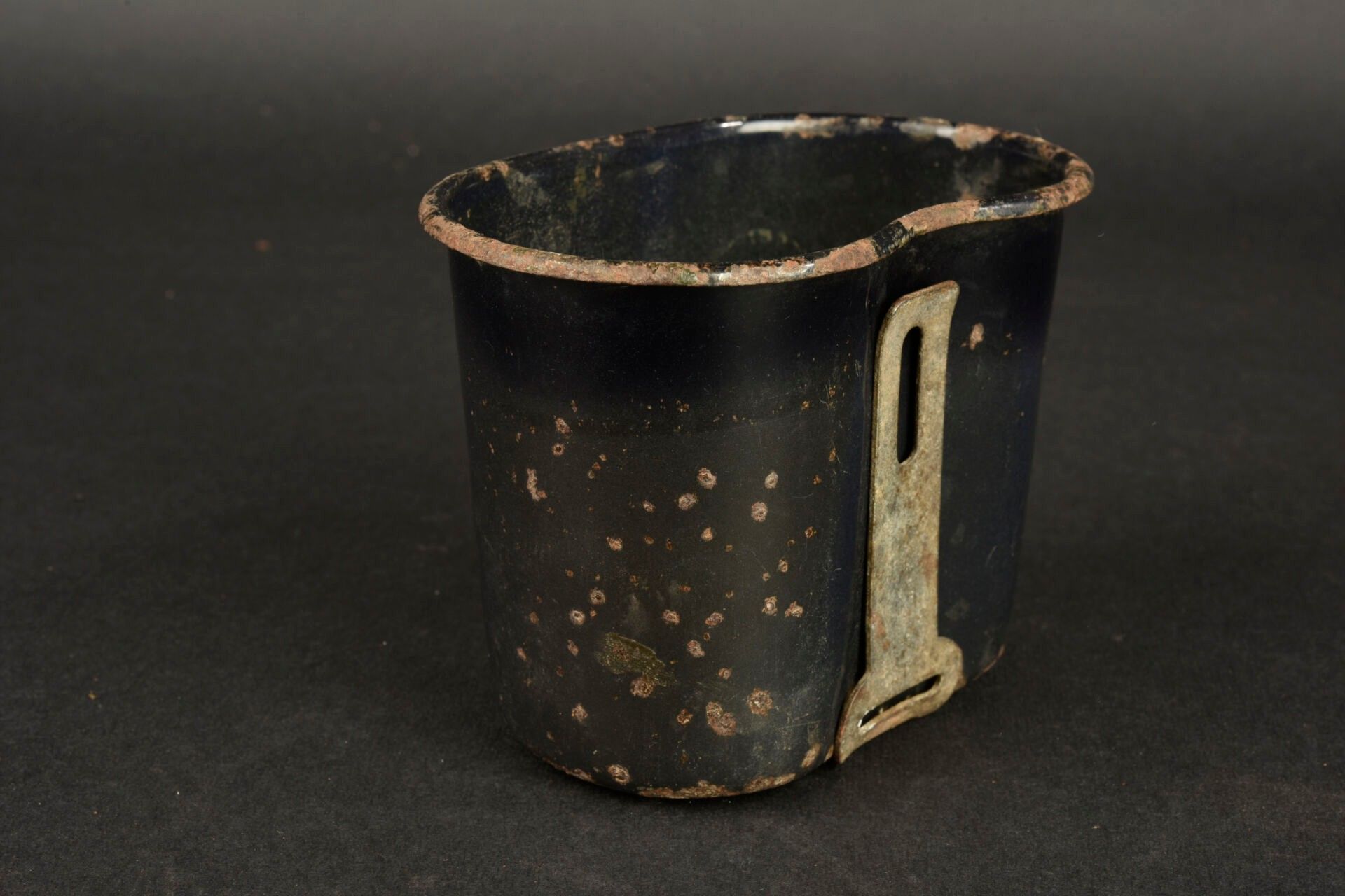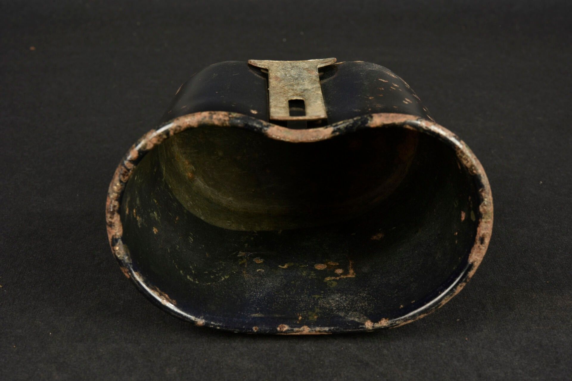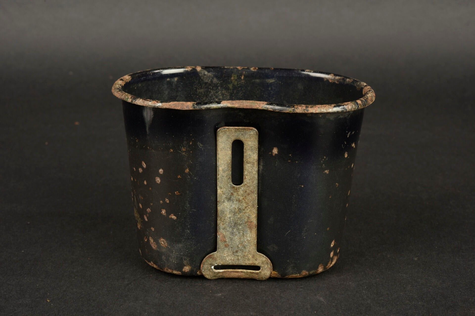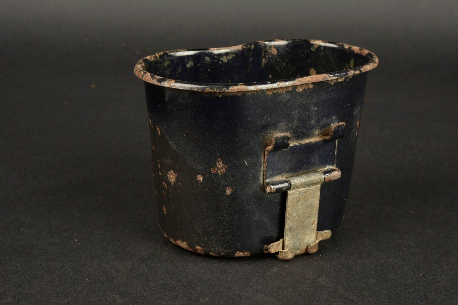 US enamelled quarter. In blue enamelled metal. Metal handle. Made by LF&Co 1942. The metal part is a little oxidized. Some missing enamel. Some wear and patina. Condition II+. 2+