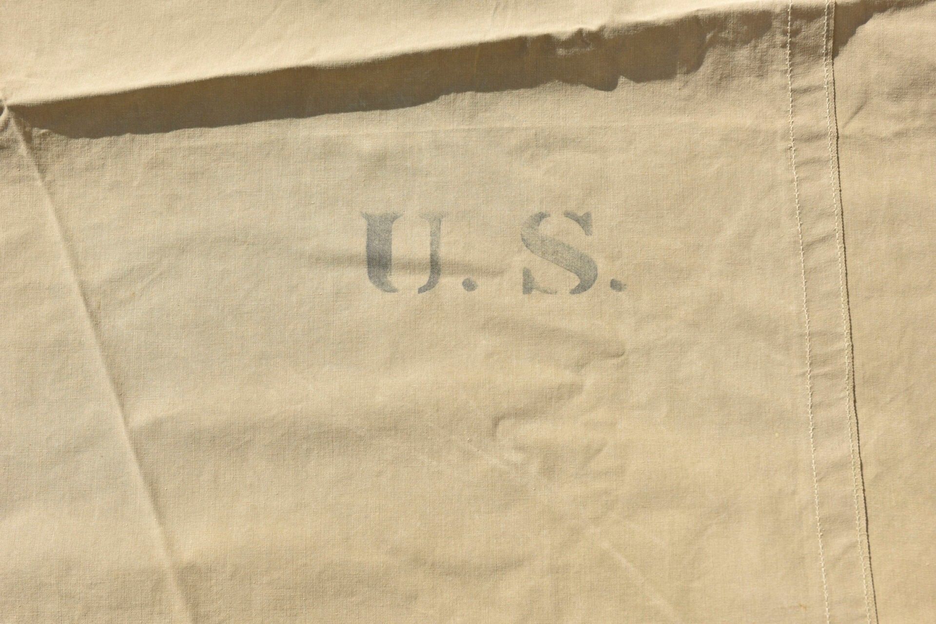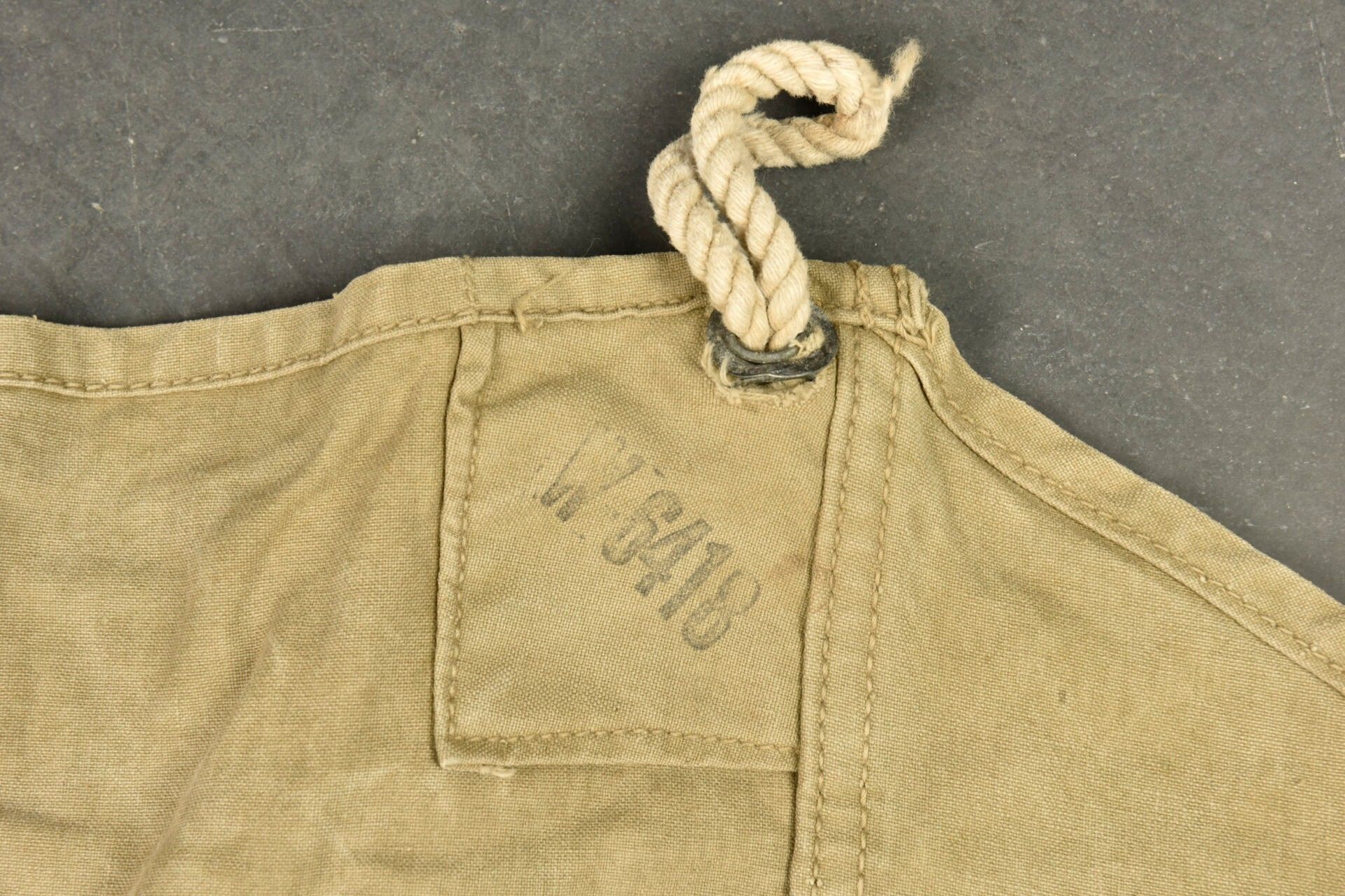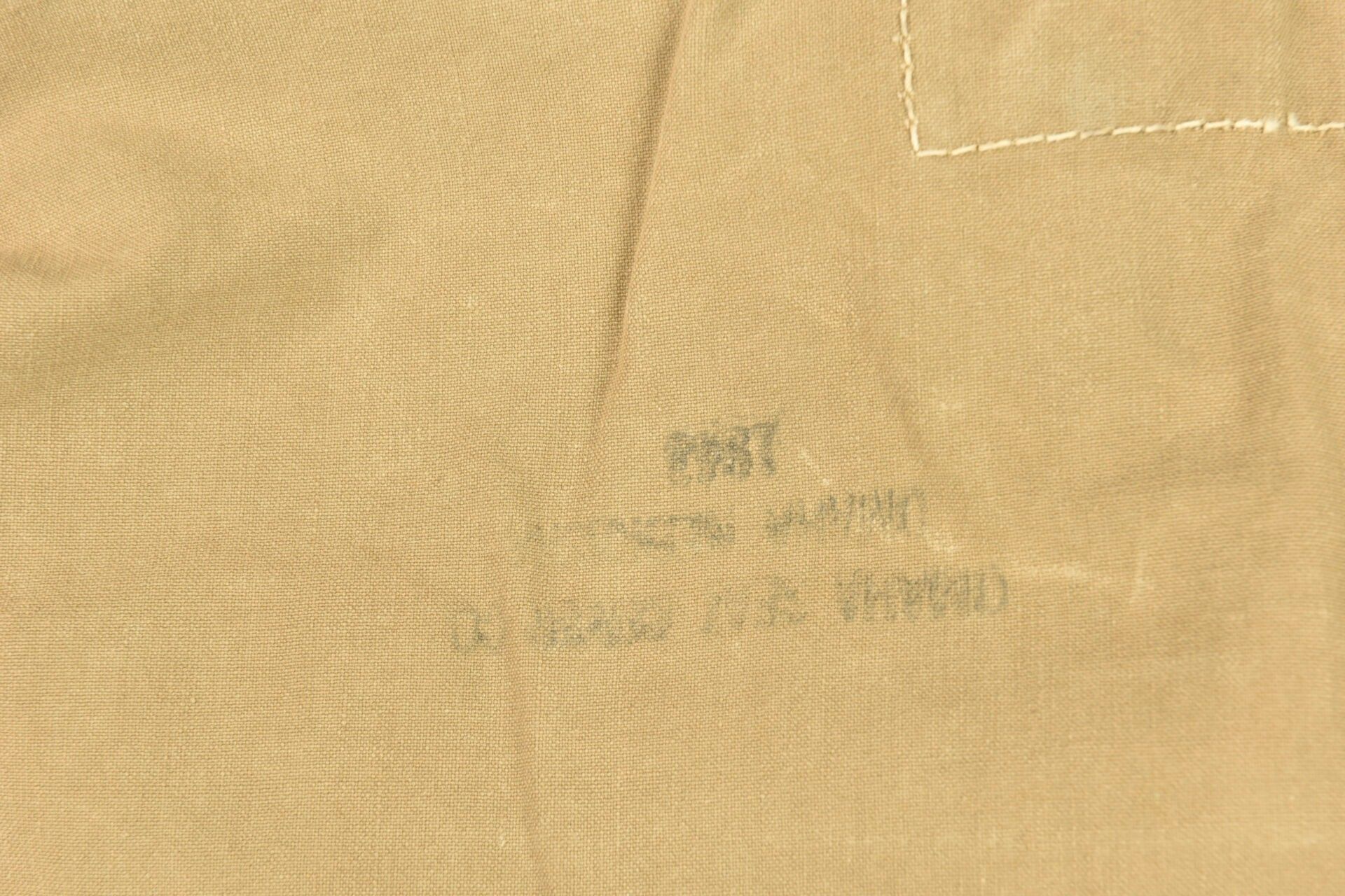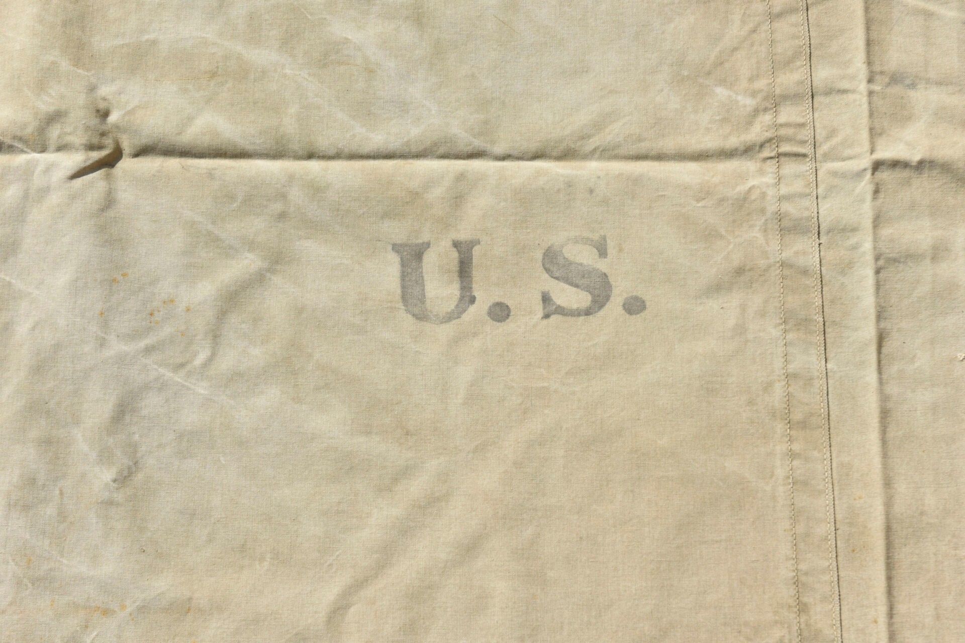 US tent fabrics. Two half-tents in strong OD canvas. Most of the buttons are present. Remains of US markings in the centre of the pieces. Some cords are present. The markings are illegible. Some wear, patina and stains. Condition II+. 2+