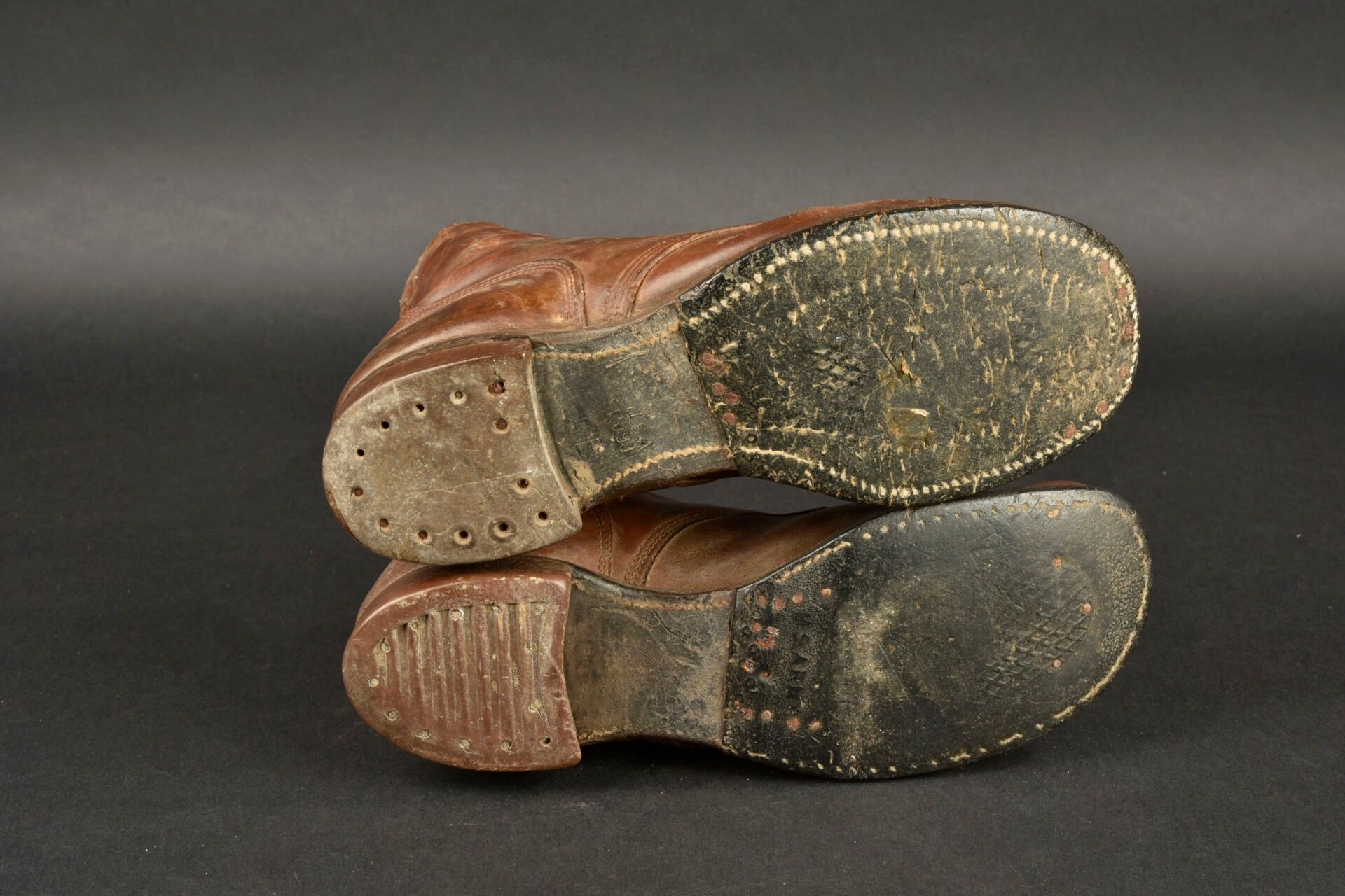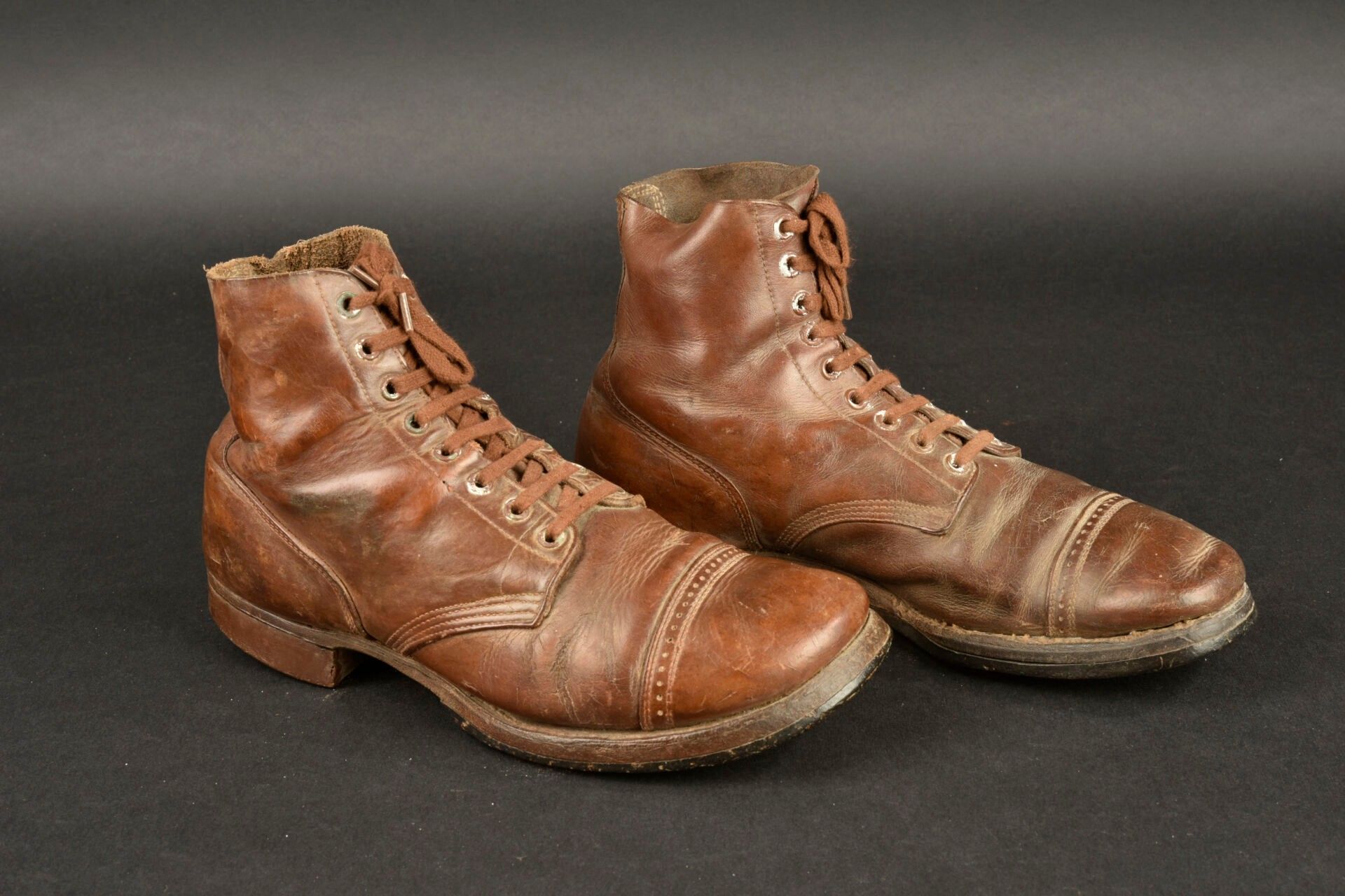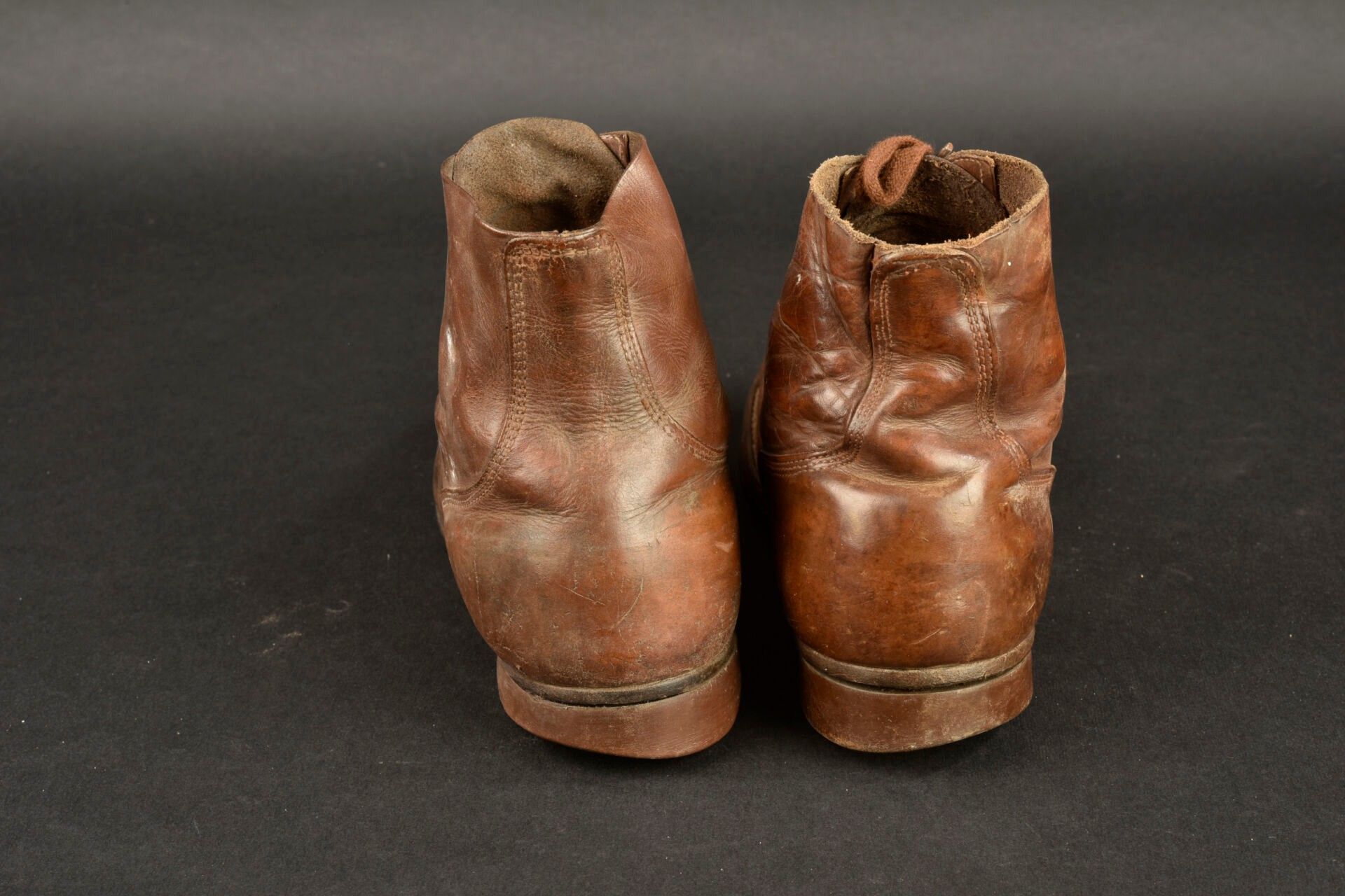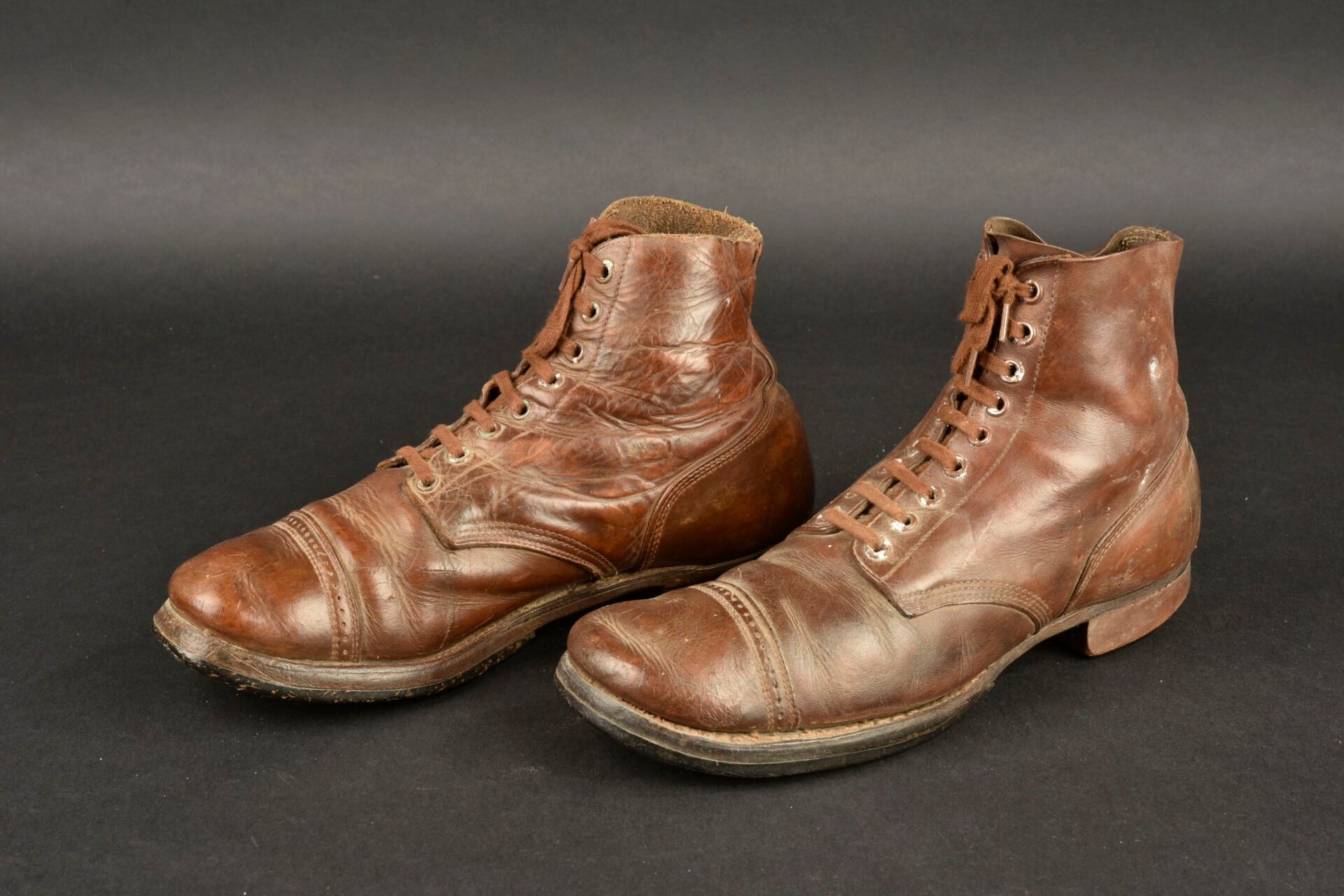 US Brodequins. Homogenous pair in smooth brown leather.
