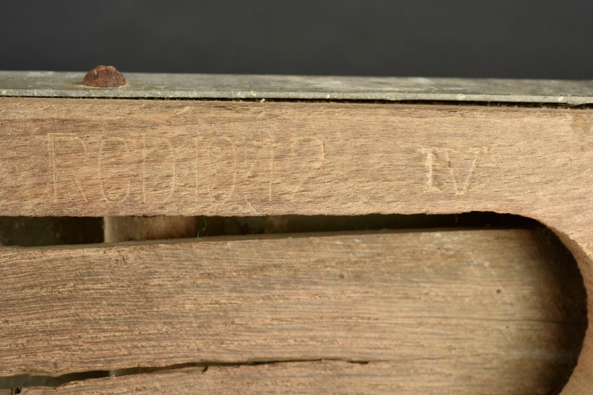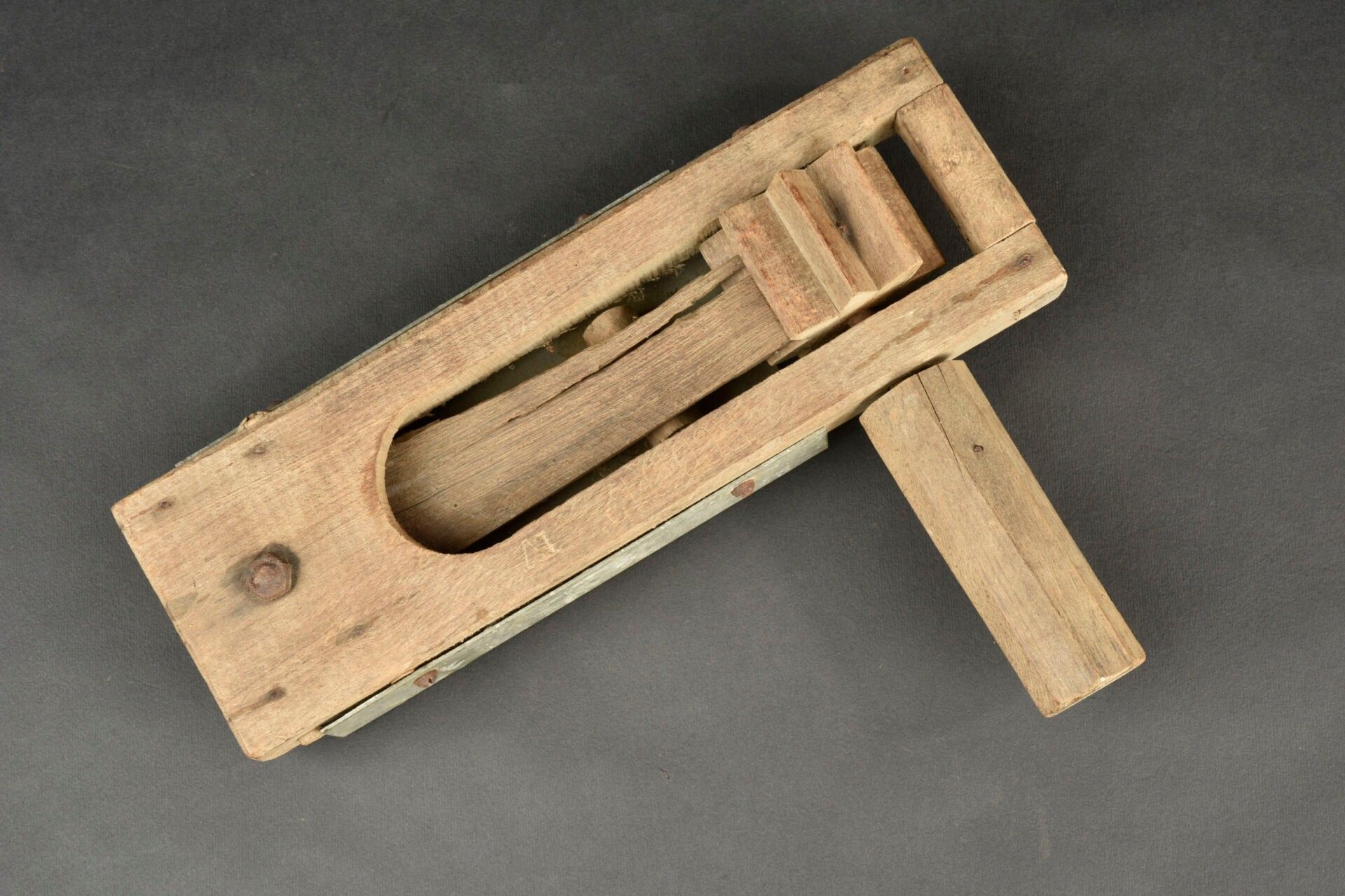 Anti-gas rattle. Made of wood and metal. Functional. The wooden slat is brittle with visible cracks and missing parts. RCD 1942 IV manufacture. The metal part is partially oxidised. To note a certain wear and patina of the part. Condition II+. 2+