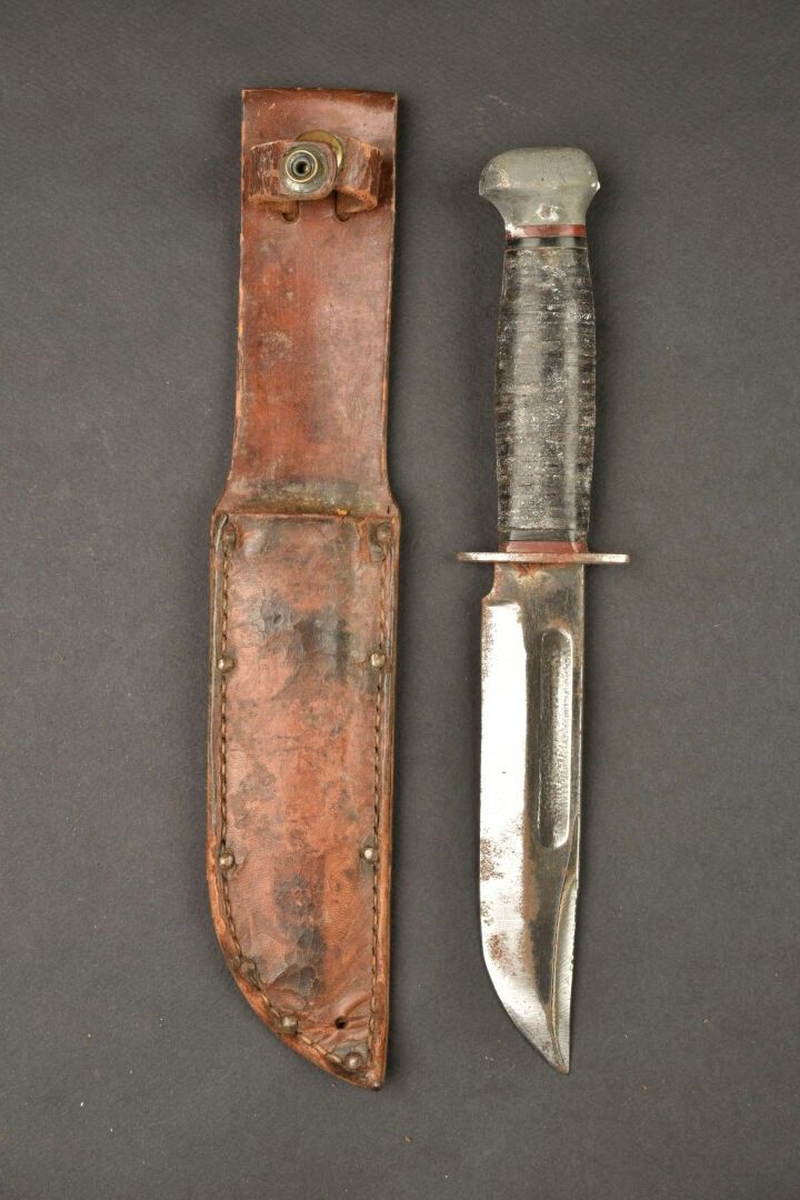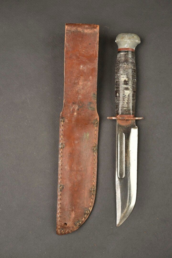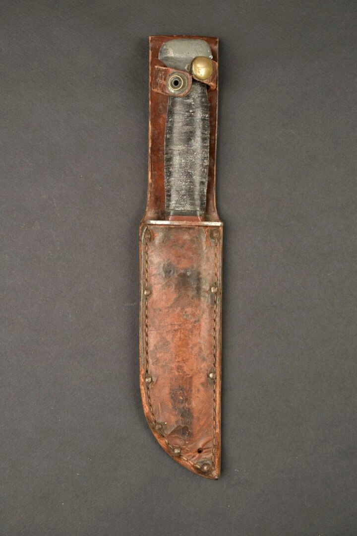 RH 36 knife. Metal fittings. Handle with leather rings, heav…