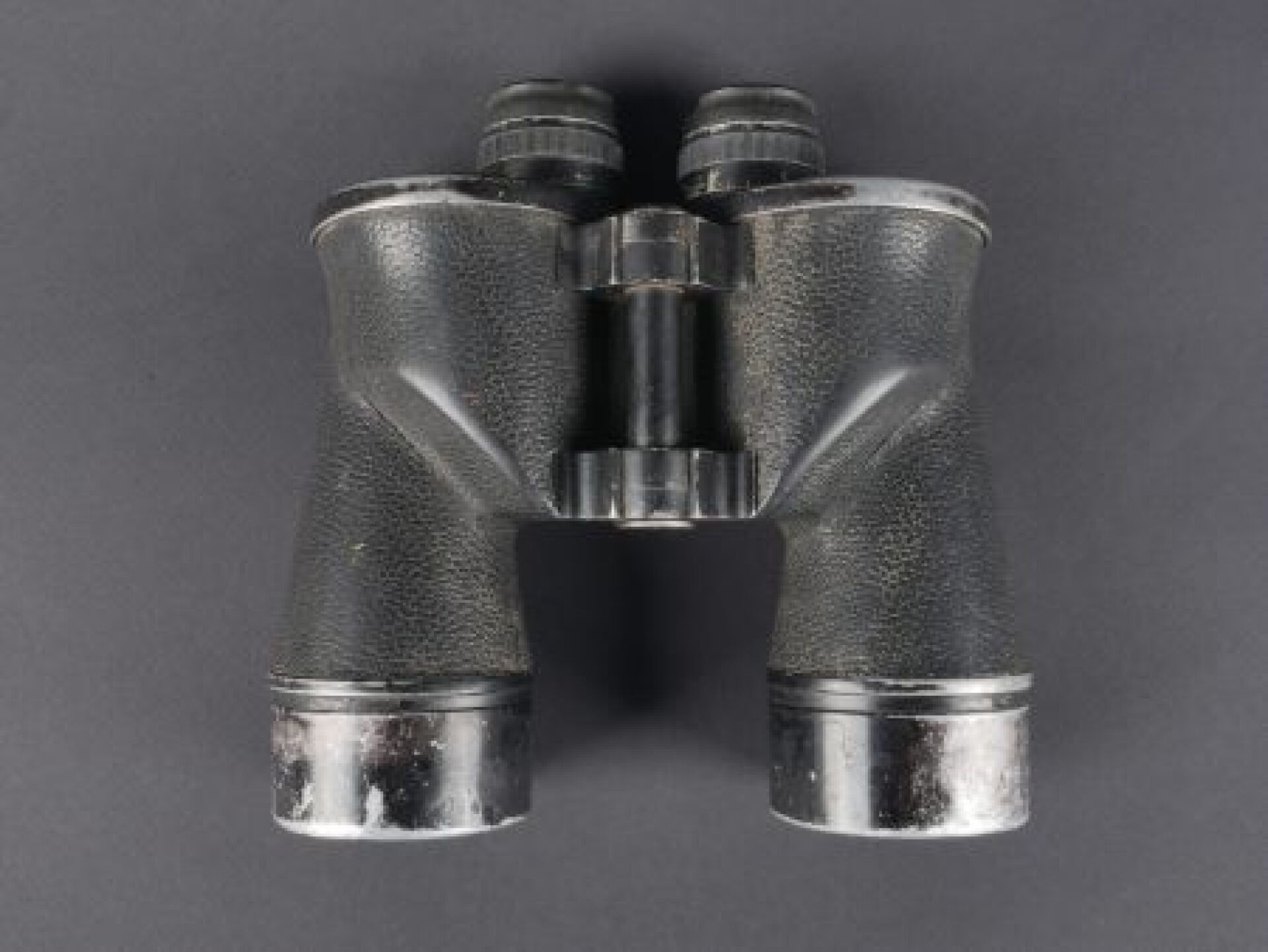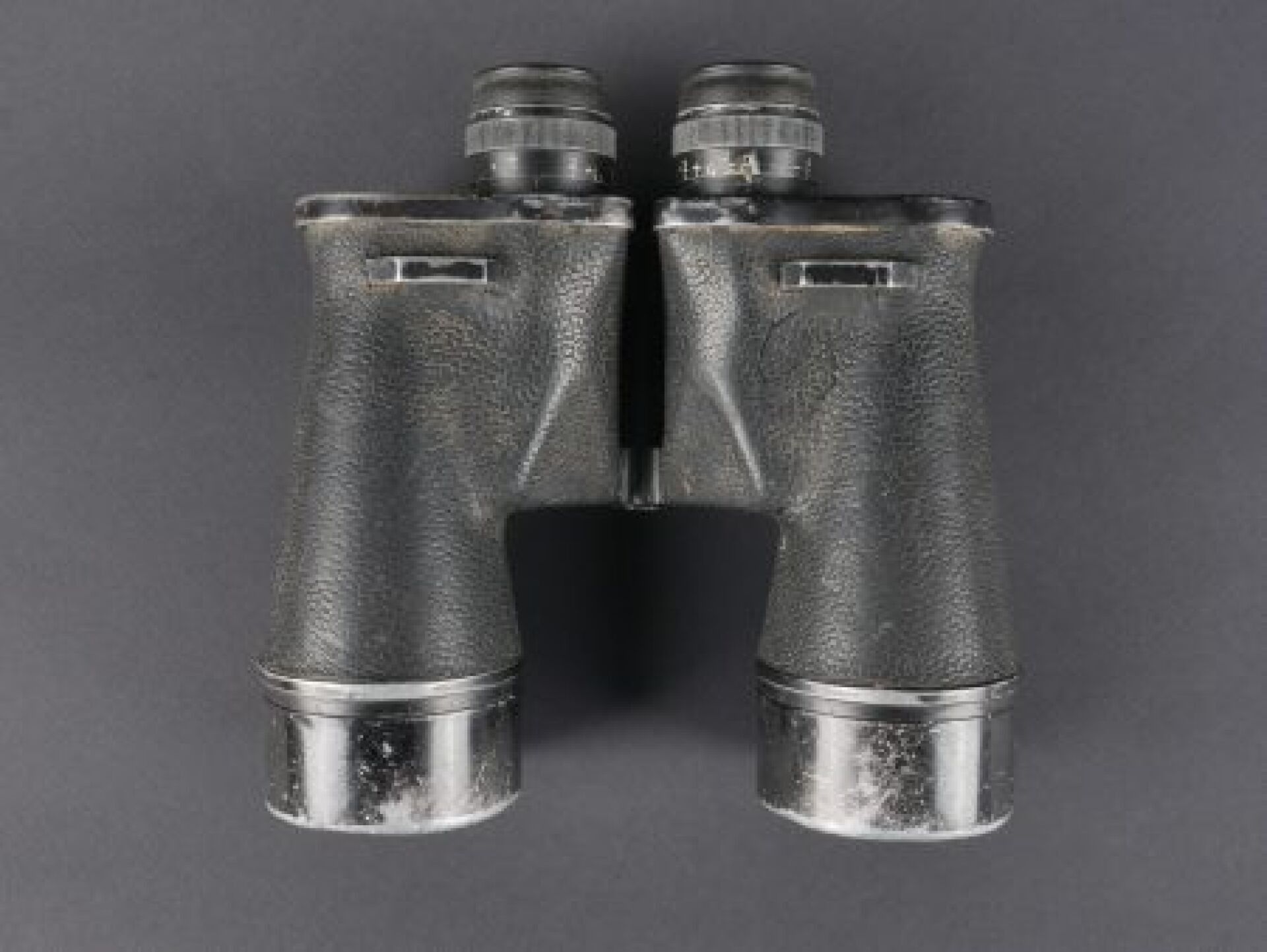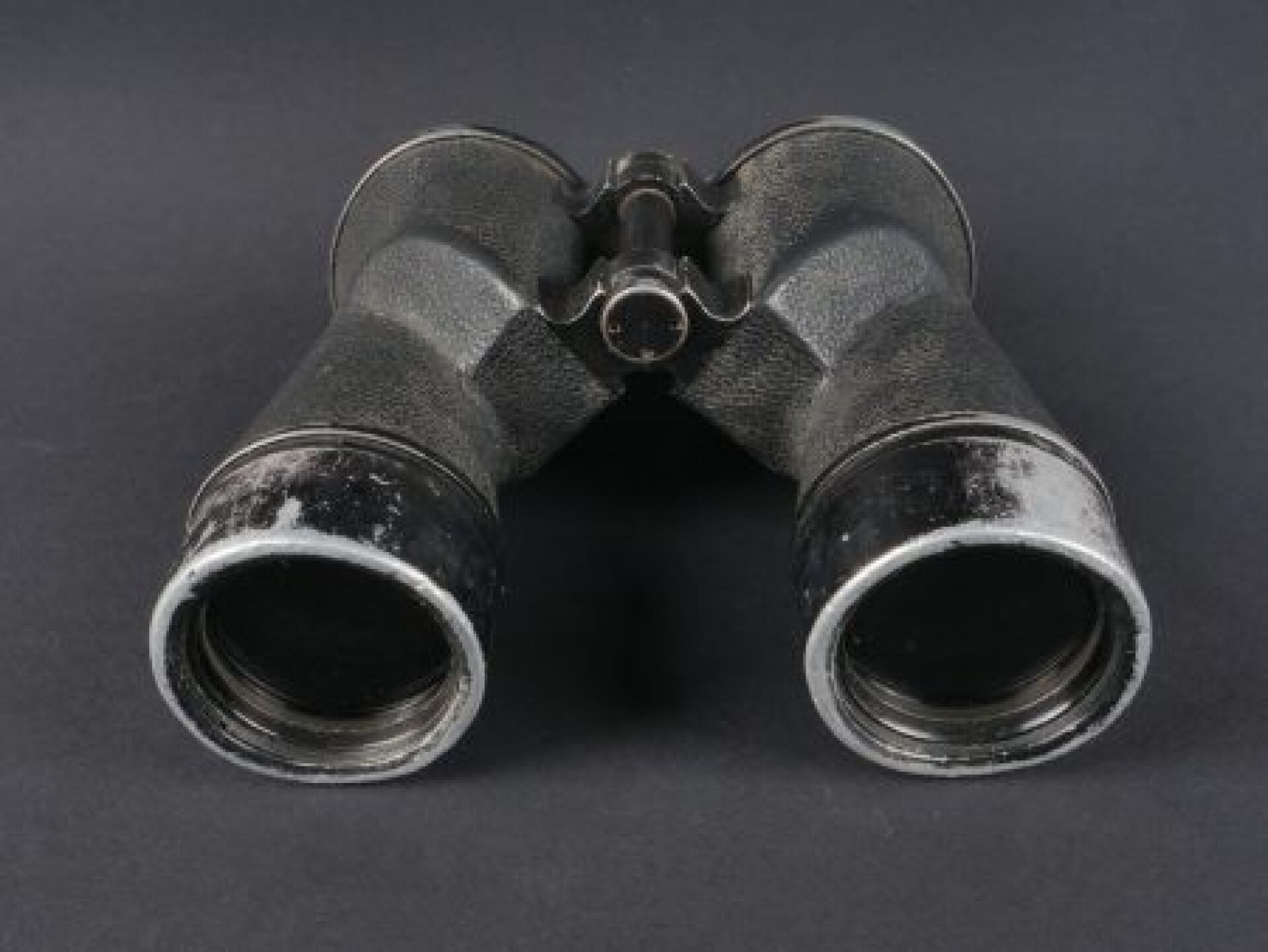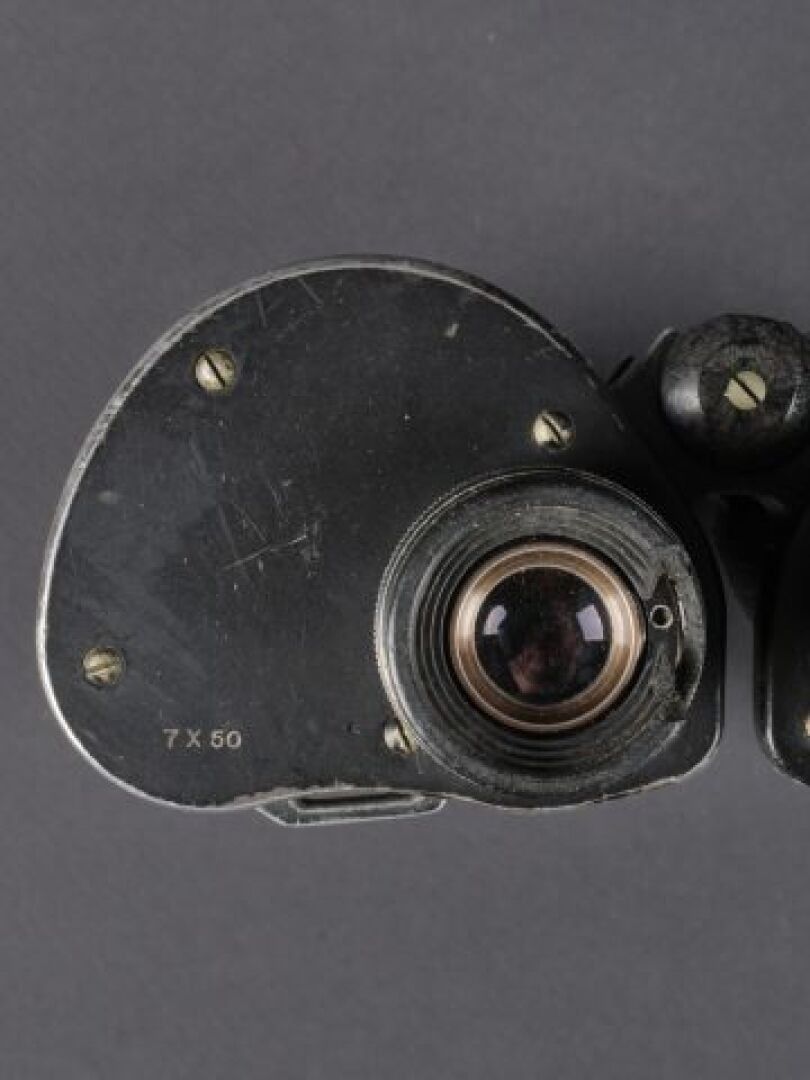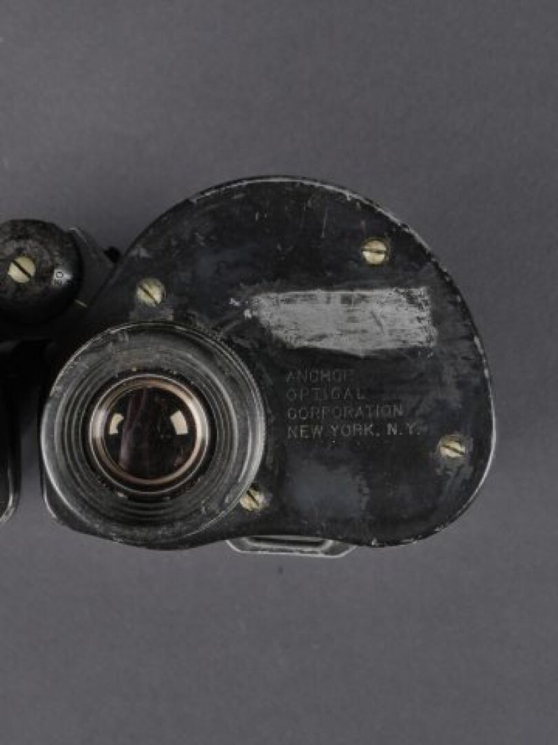 Binoculars model 7 x 50, coating in very good condition. Manufactured by Anchor Optical Corporation New York. Marked 7x50, some markings redacted. Carrying strap missing. Perfect optics. A few missing eyelets. Some wear and patina. Condition II+. 2+
