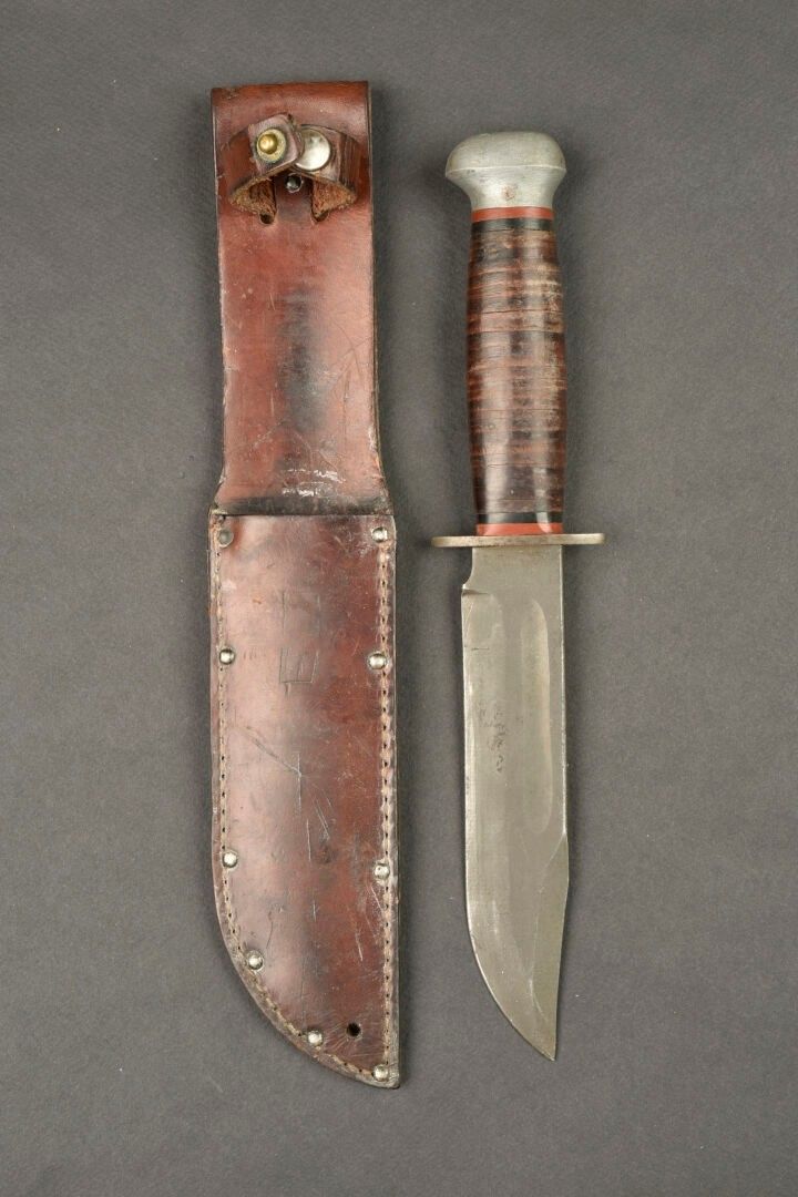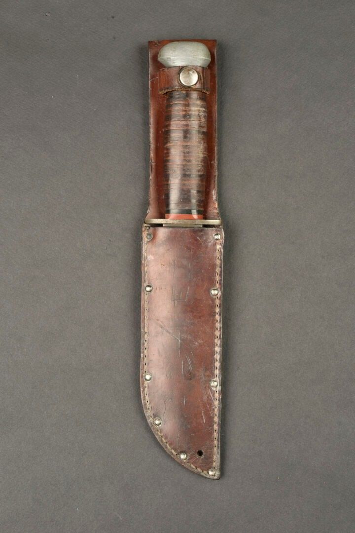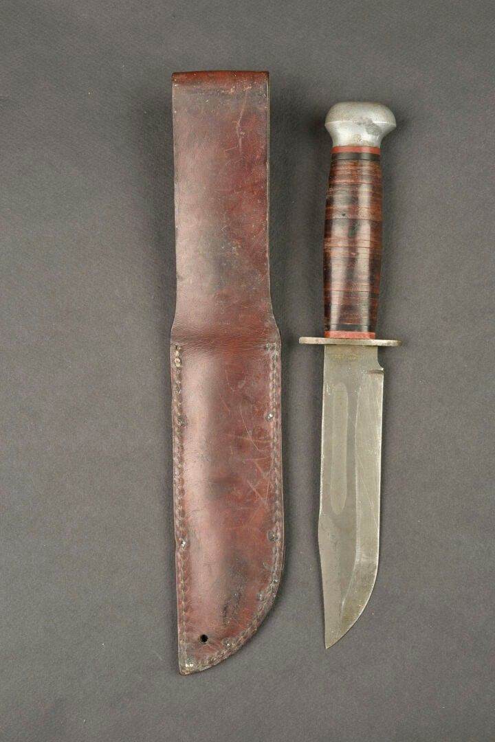 RH 36 knife. Metal pommel. Handle with leather rings.