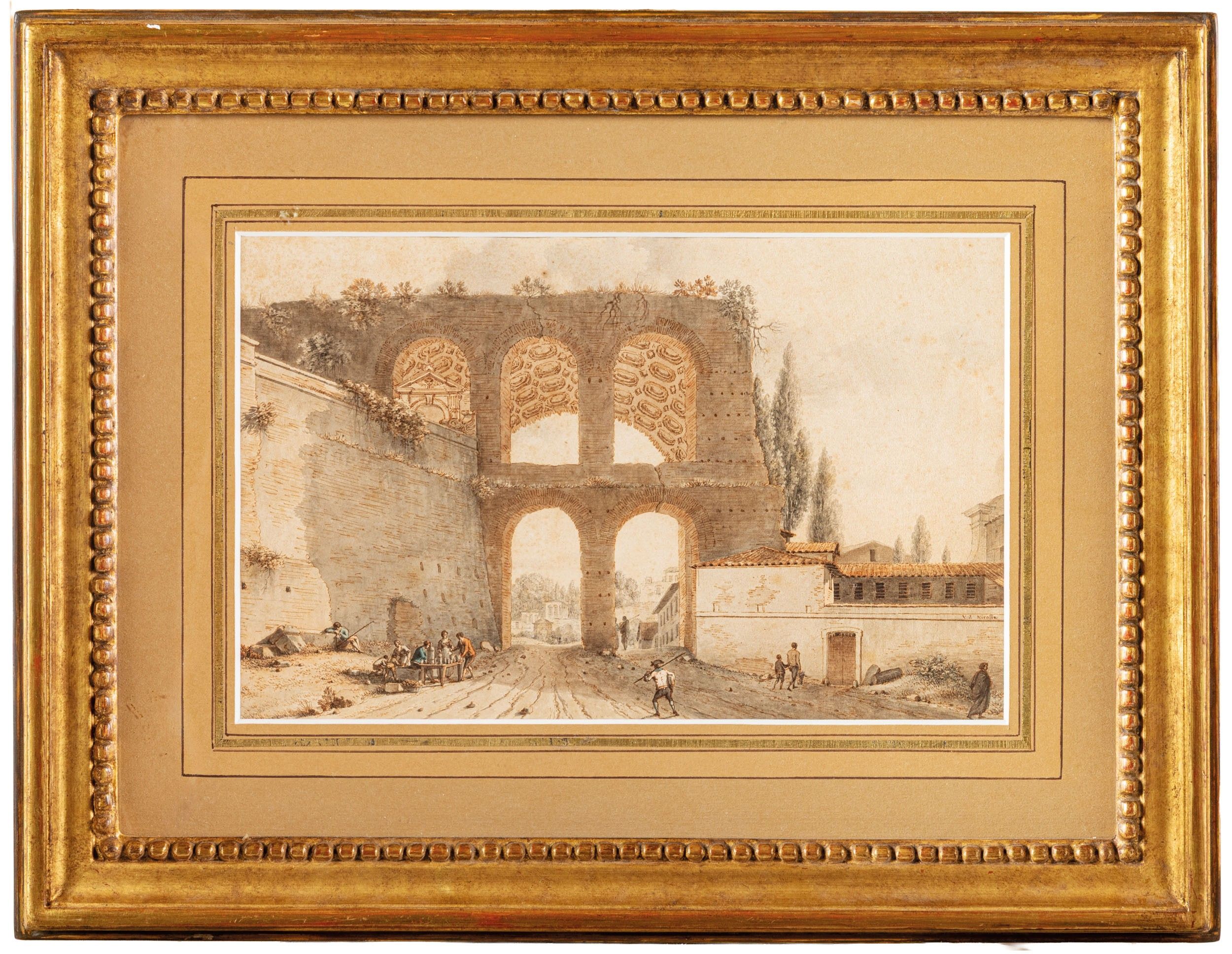 Trained at the Academy of Drawing in Paris, Nicolle won the prize for perspective in 1771 and his early fame is documented by Louis XVI's decision to send him to Italy with the task of drawing the main views of the peninsula, staying in Venice, Bologna, Florence, Naples and Rome. Needless to say, the greatest number of these works are dedicated to the Eternal City, where Nicolle lived from 1787 to 1789 and later from 1806 to 1811. The precision of his views is certainly worthy of the best tradition, not only for their quality, but also for their descriptive and topographical accuracy, combined with a peculiar atmospheric sensitivity. We can verify these aspects thanks to the views presented here, which also show places seen in the actuality of their time and not just as antiquarian testimonies.