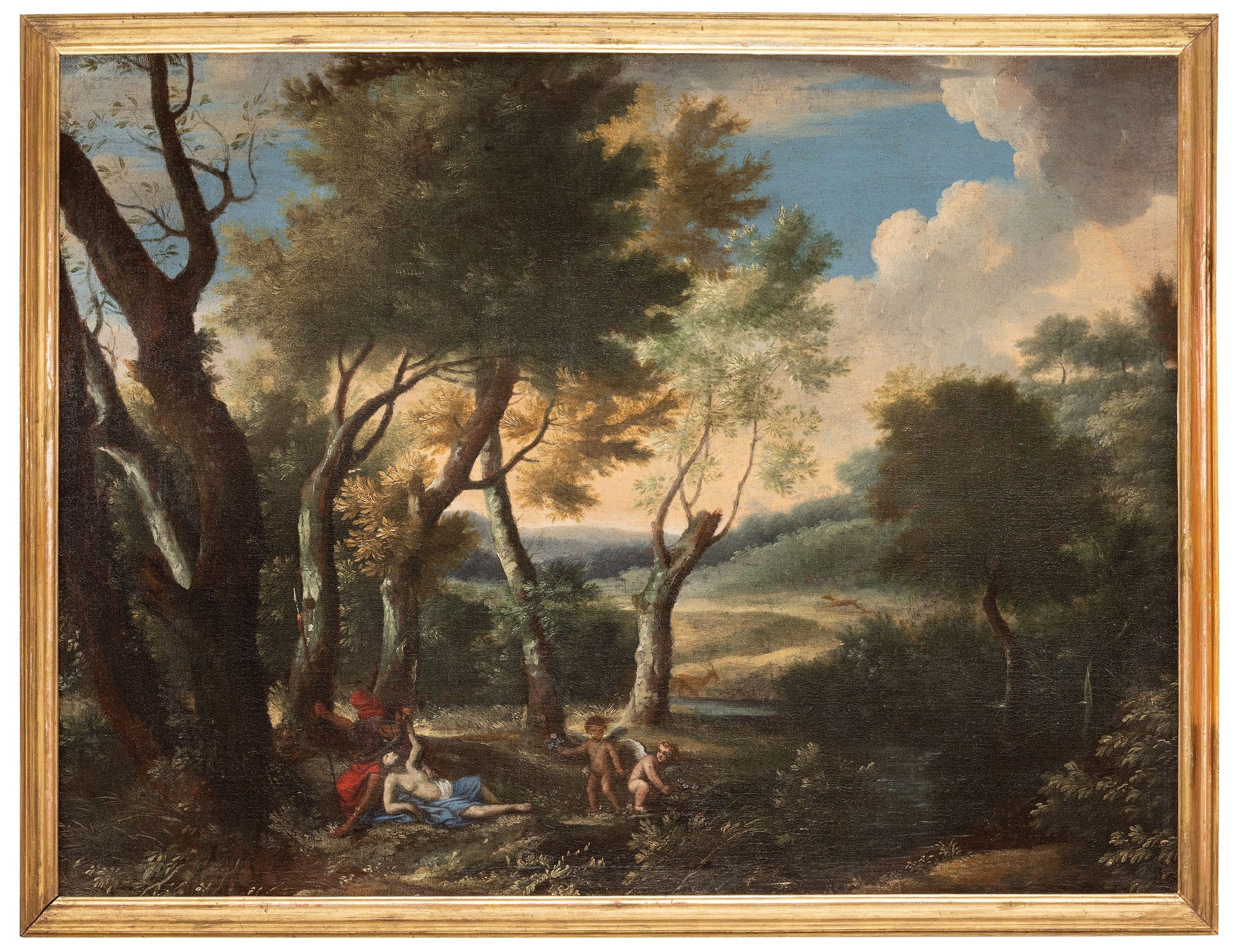 The style of the work suggests its Roman genesis and an artist of foreign origin who was certainly influenced by Claude Lorrain. These clues lead us to recognise as the author Herman van Swanevelt, documented in the Capitoline city from 1624. It must be remembered that in 1630 the artist resided with Claude Lorrain and that his known artistic debut dates back to after this date. Understanding the earlier production relies on a philological practice that is not always easy to pursue, but does not invalidate the qualitative judgement on the painting, the genesis of which finds a sure point of reference in the works executed by the Lorraine artist in the third decade. Similarities are also perceived with the early works of Gaspard Dughet, particularly in the peculiar oxidations visible on the arboreal pieces.