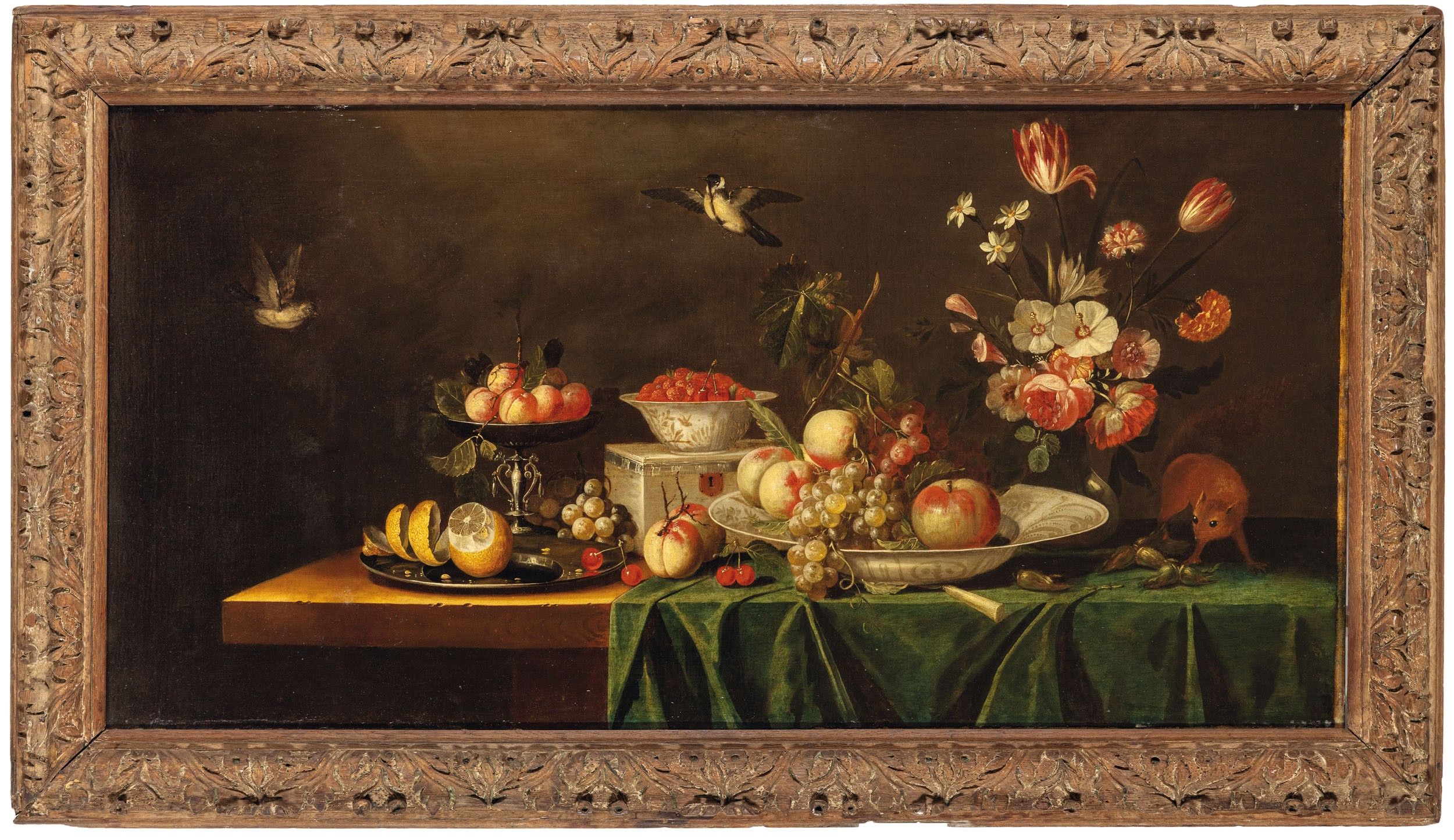 Under the name Pseudo Simon, critics have collected more than a hundred still lifes depicting tables laid with flowers, fruit and animals, works that during the 20th century were generally referred to the painter Michiel Simons or, as in this case, to Joris Van Son (Antwerp, 1623-1667). According to the RKD, the artist is supposed to have been active in Antwerp during the second half of the 17th century, also recognising similarities with the production of Jan Pauwel Gillemans I (Antwerp, 1618-1675). Another interesting aspect is that not a few works referable to the artist are preserved in old English collections, thus suggesting a sojourn of the latter across the Channel. The quality of his creations is definitely higher than Gillemans', thus establishing a more effective analogy with Jan Davidsz de Heem (Antwerp, 1651 ; before 1704). Returning to the canvas presented here, attributed to Fred G. Meijer, it is in good condition.