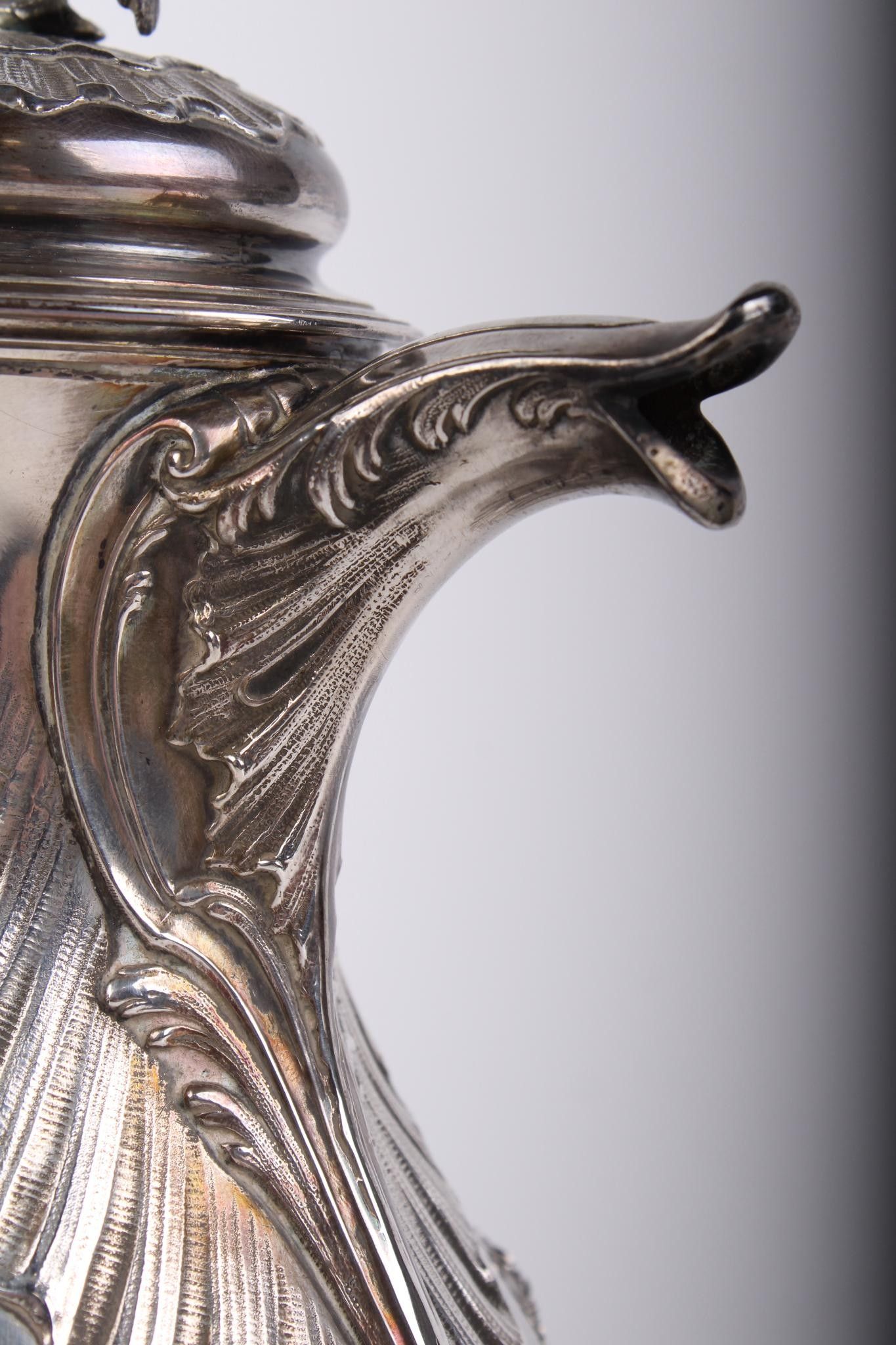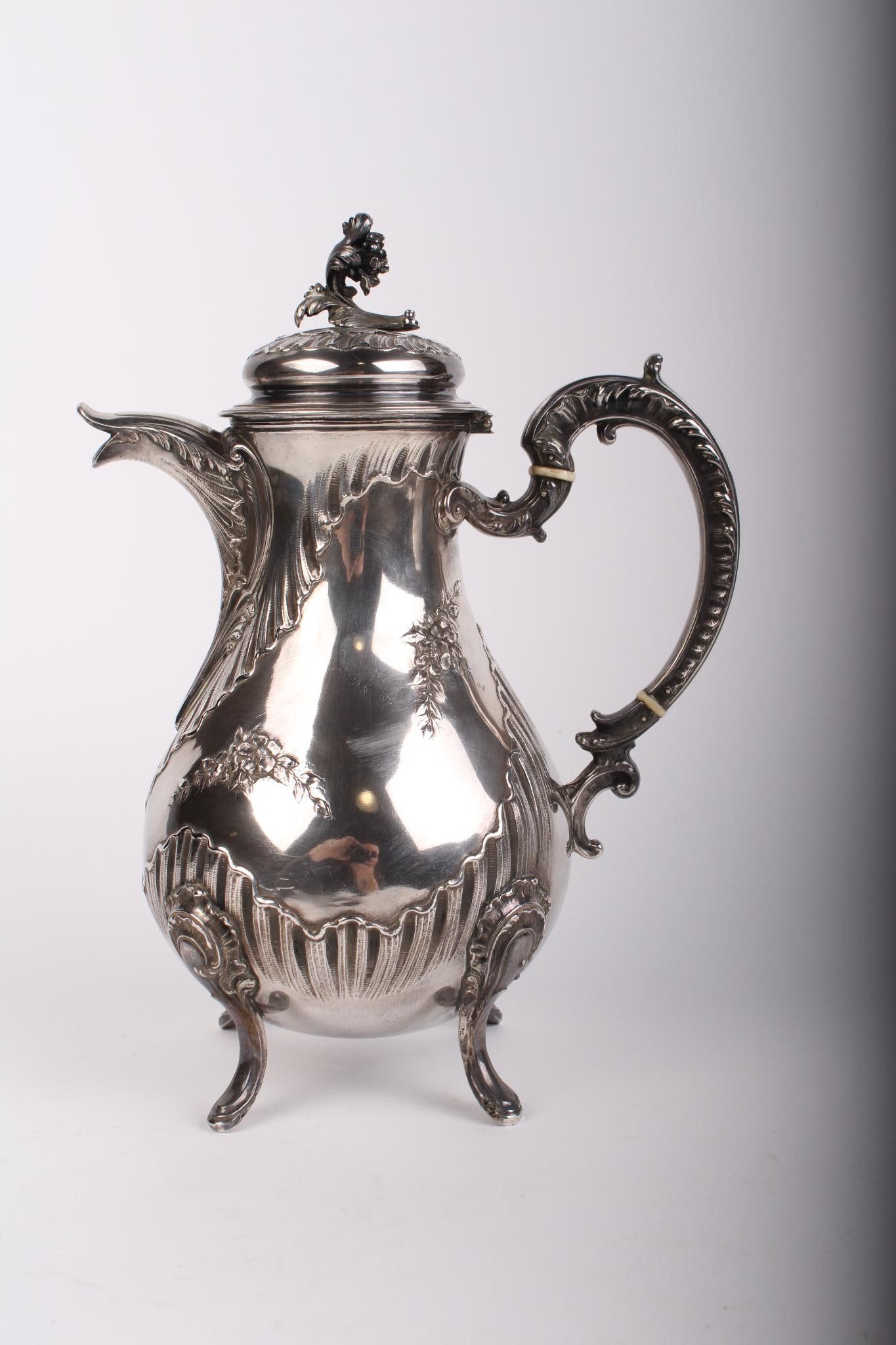 Silver baluster coffee pot The spout is underlined by a leaf…