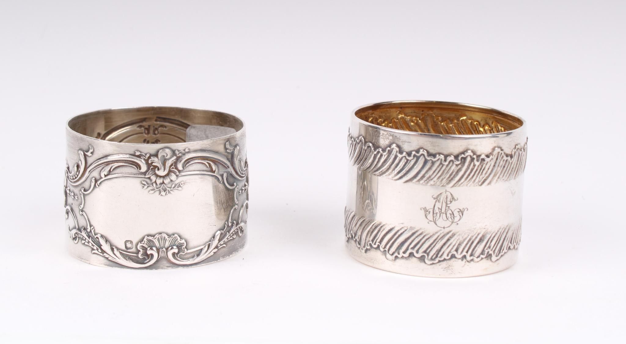 One decorated with rocaille combed leaves and engraved with a monogram. The second decorated with foliate cartouches.