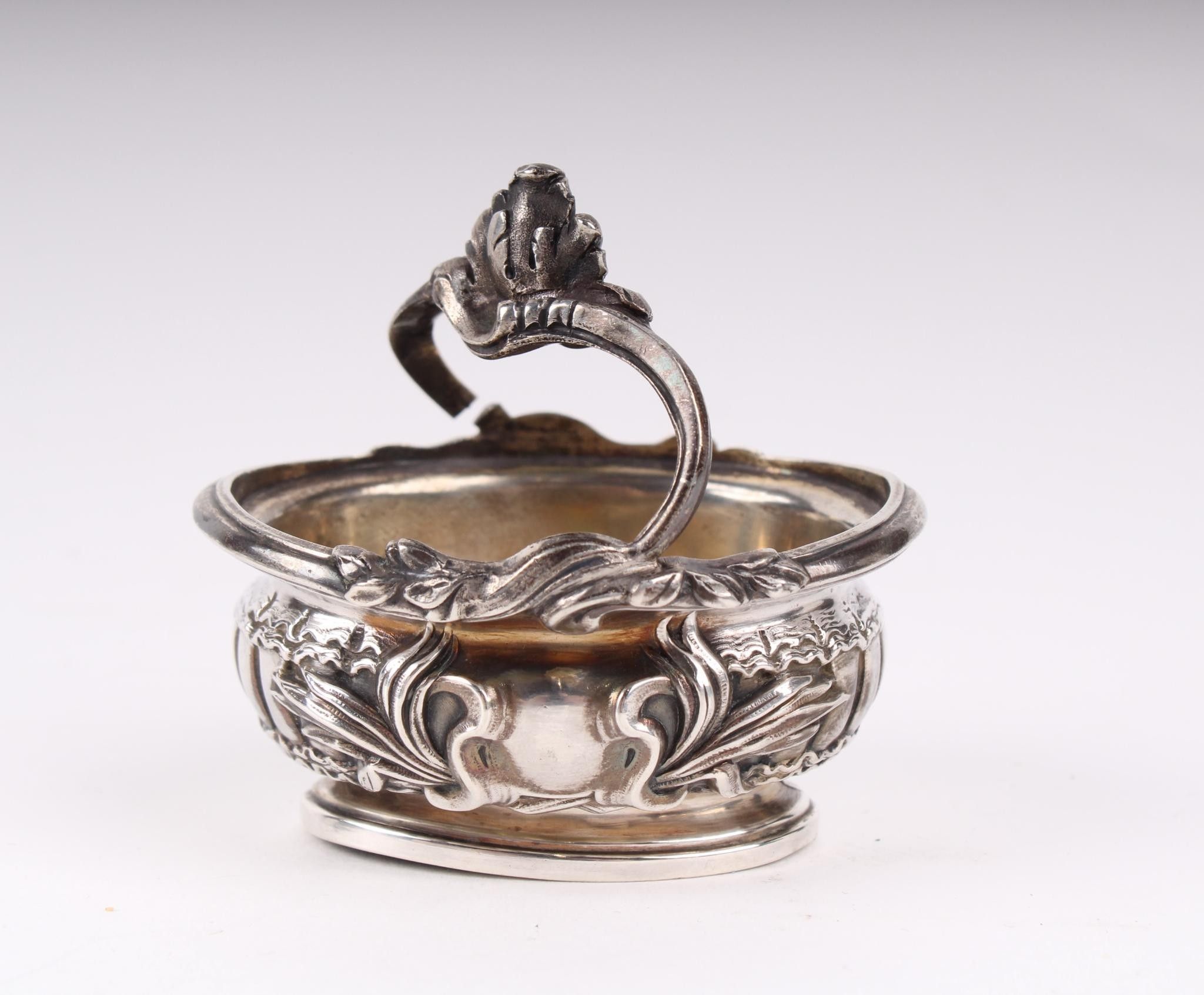 Charming basket-shaped salt cellar in silver.