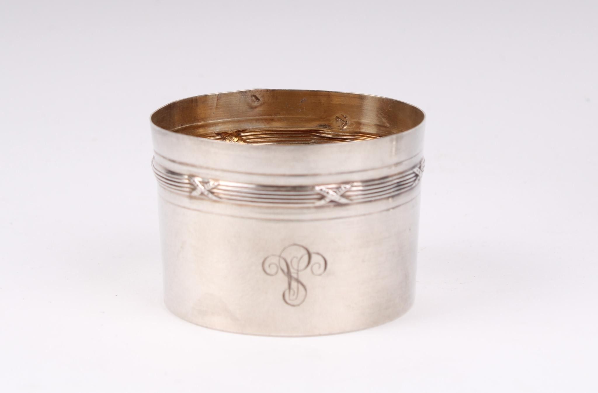 Set of a silver egg cup, two liqueur glasses and a silver cu…