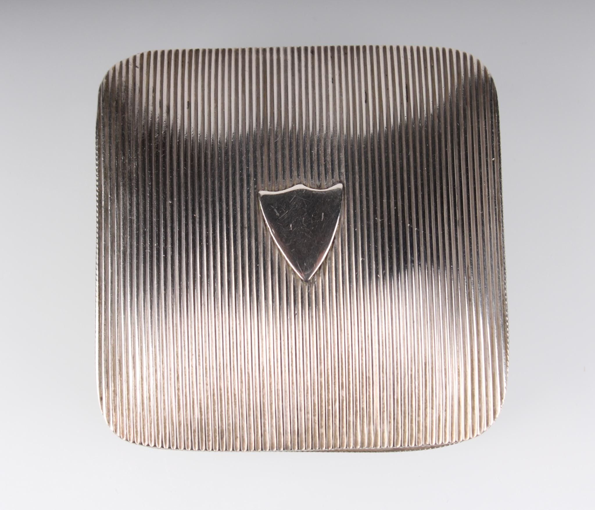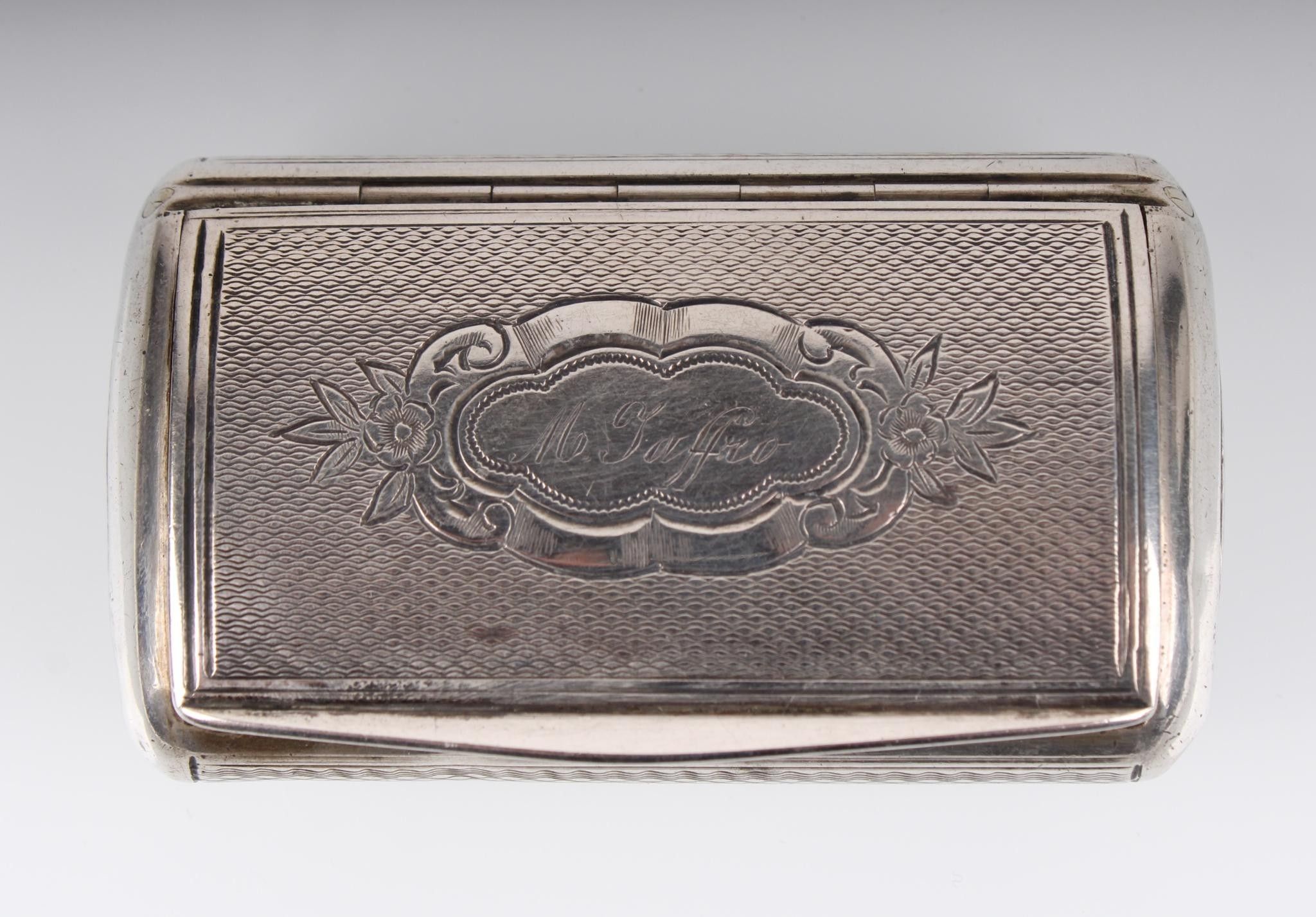 An oblong guilloche snuffbox engraved with a cartouche on the lid (Chocs). A square box underlined of nets surmounted on the lid of an escutcheon in applique.