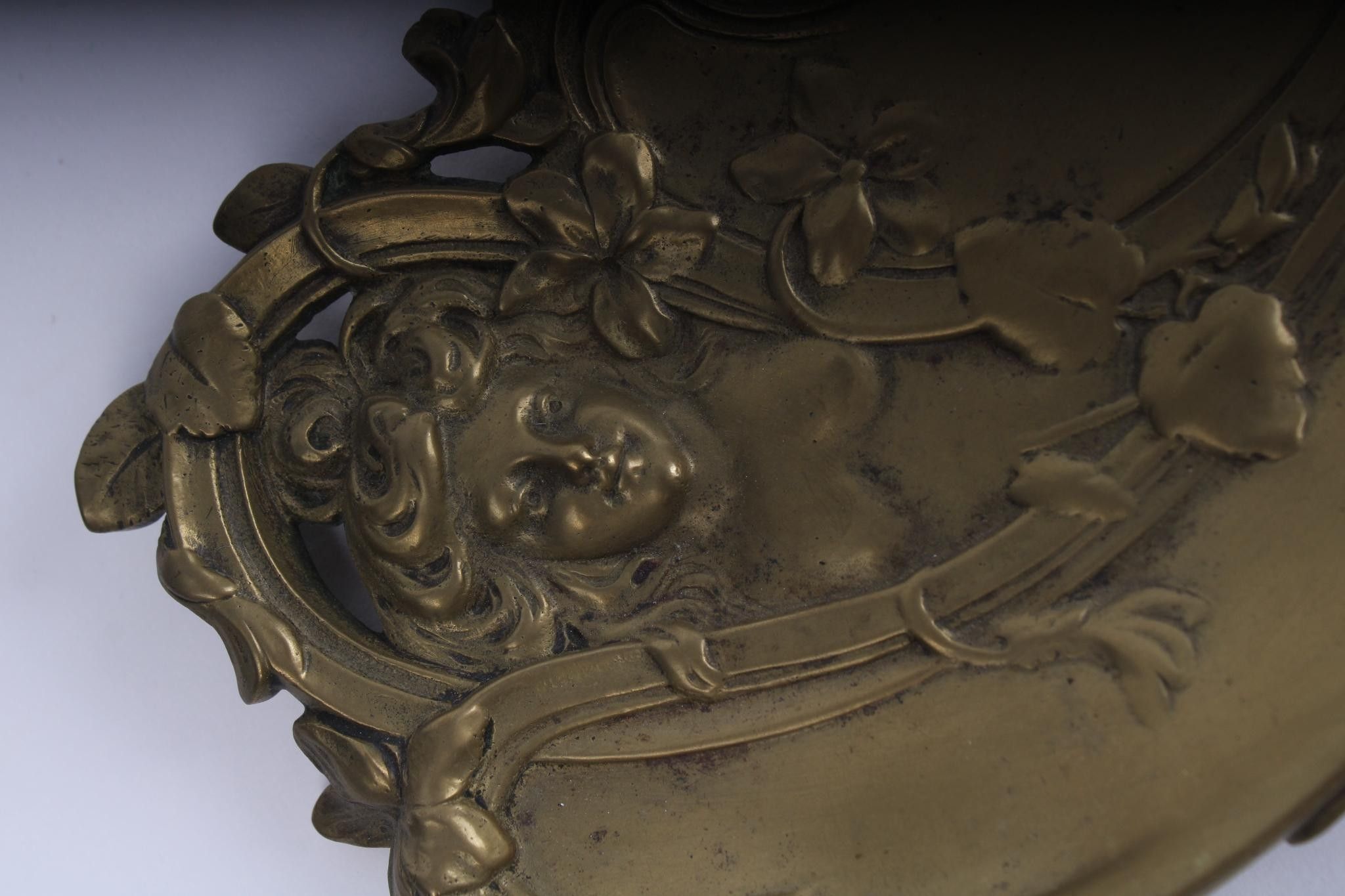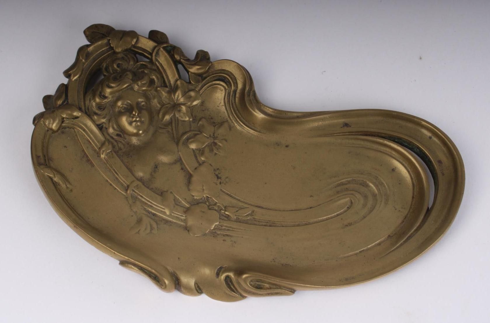 Oval shape with engraved, partly openwork decoration of a female bust and flowering branches.
