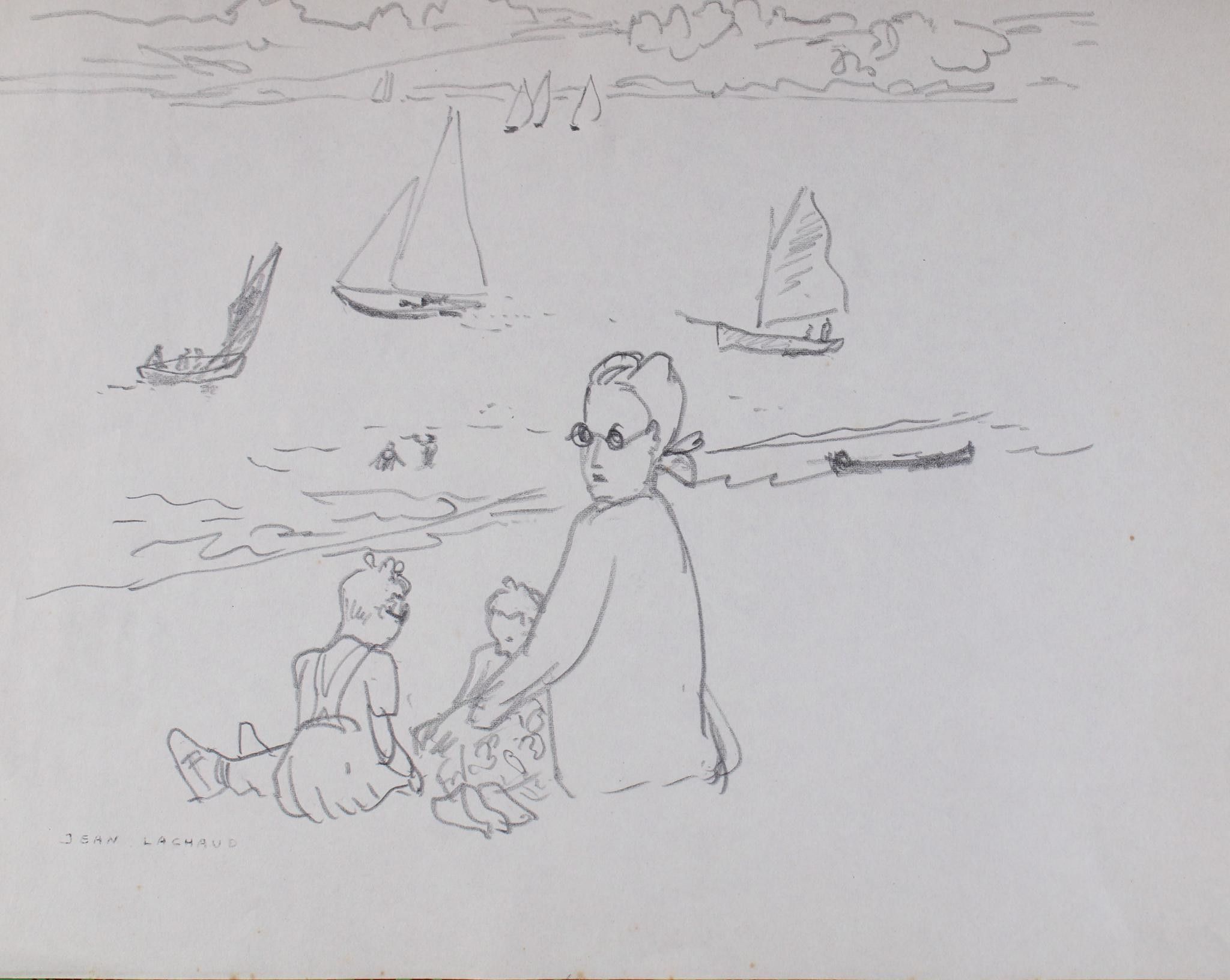 Jean LACHAUD (1889-1952) Woman and Children on the Beach
