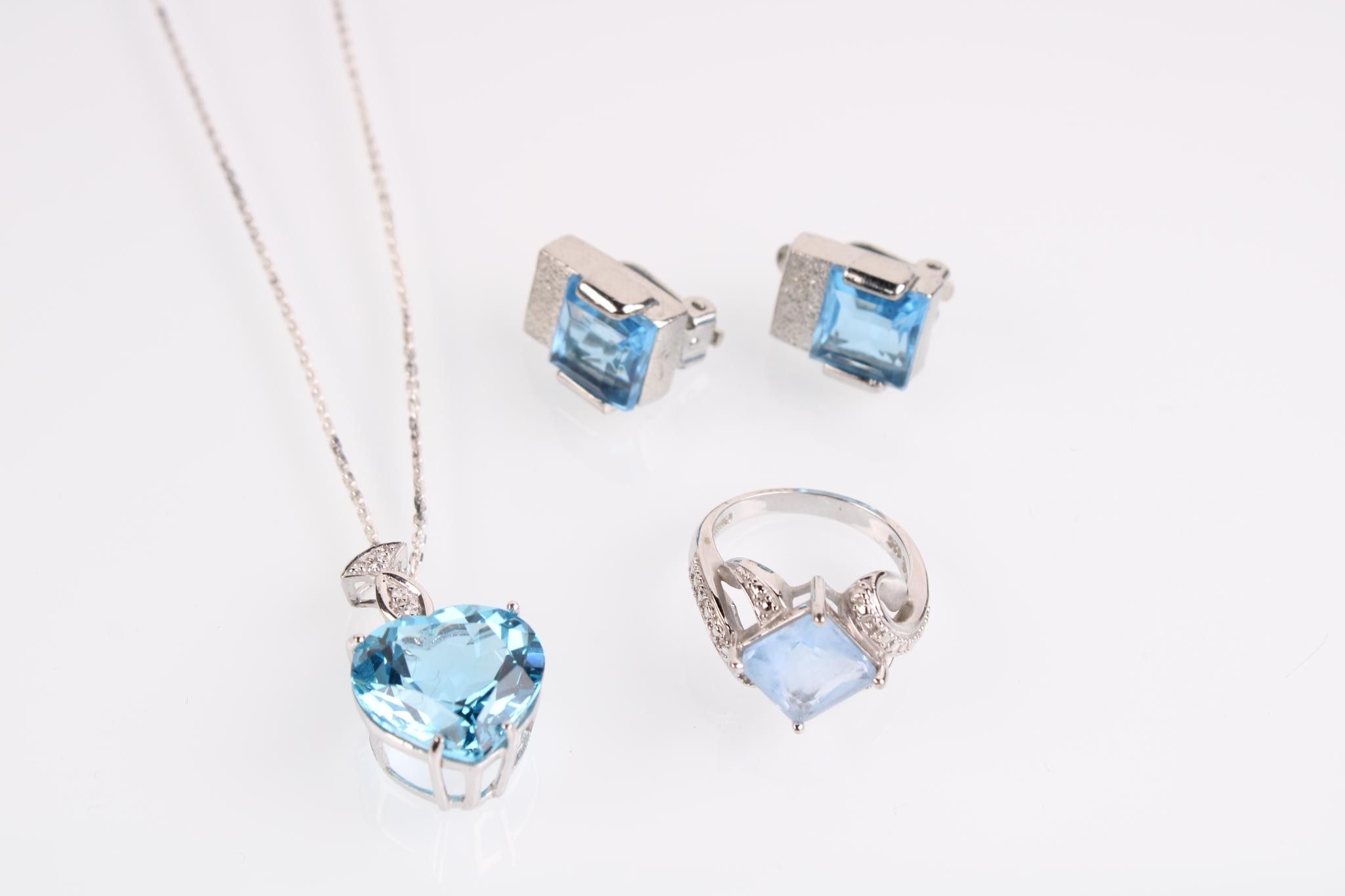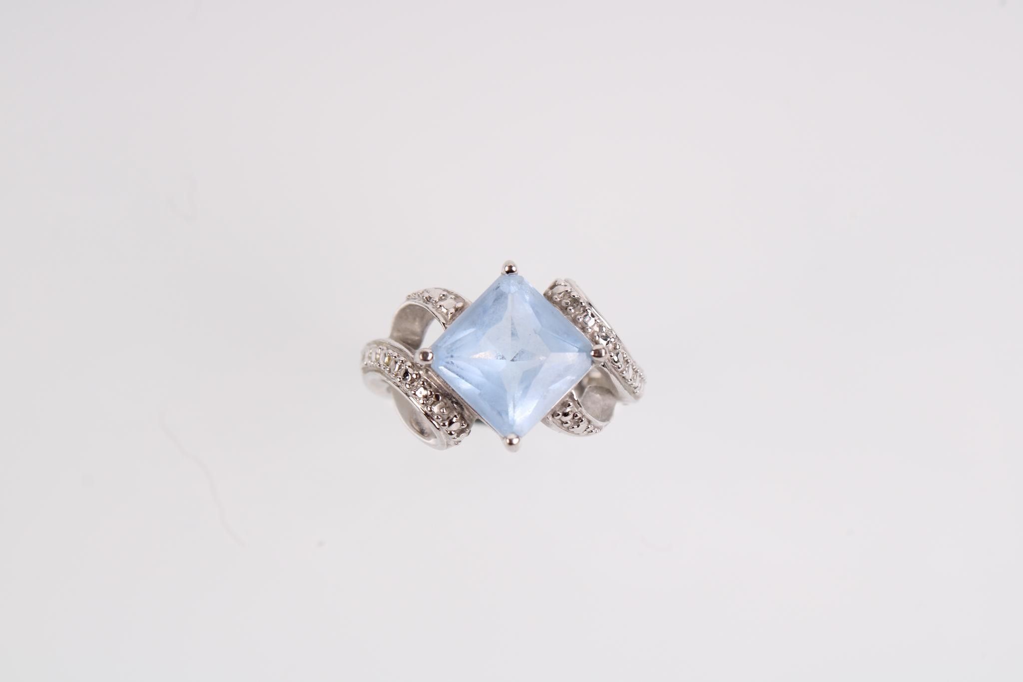 The 925 silver ring set with a square blue stone and white stones. Finger size: 54
