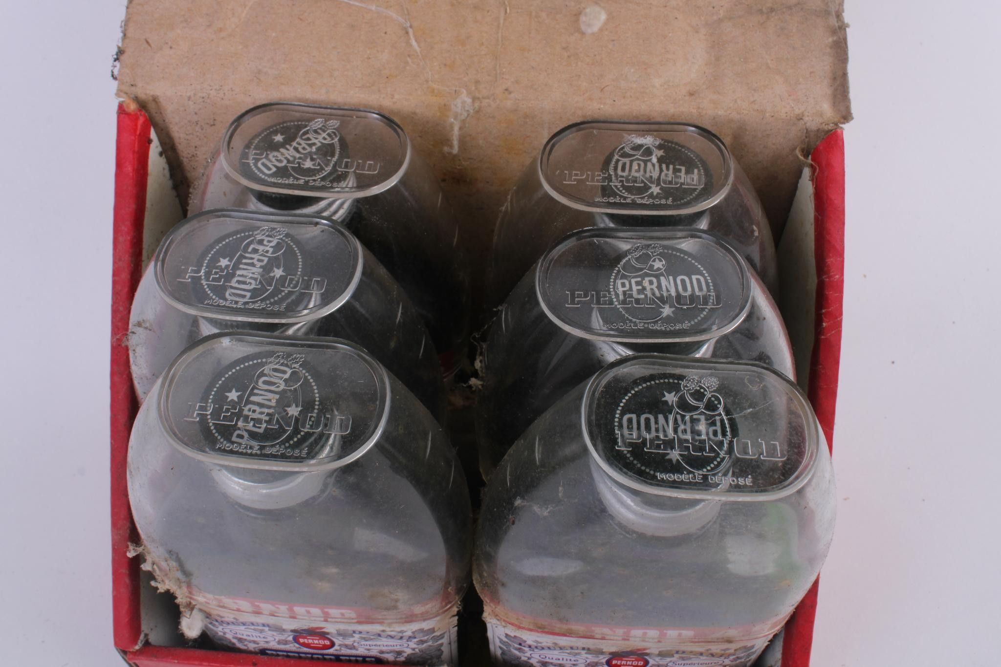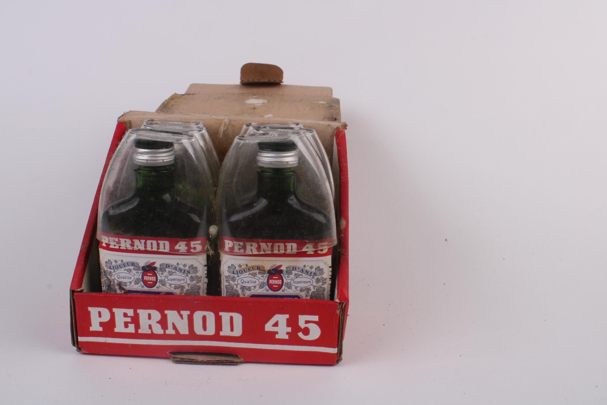 6 PERNOD 45 flasks with slightly damaged cardboard cup