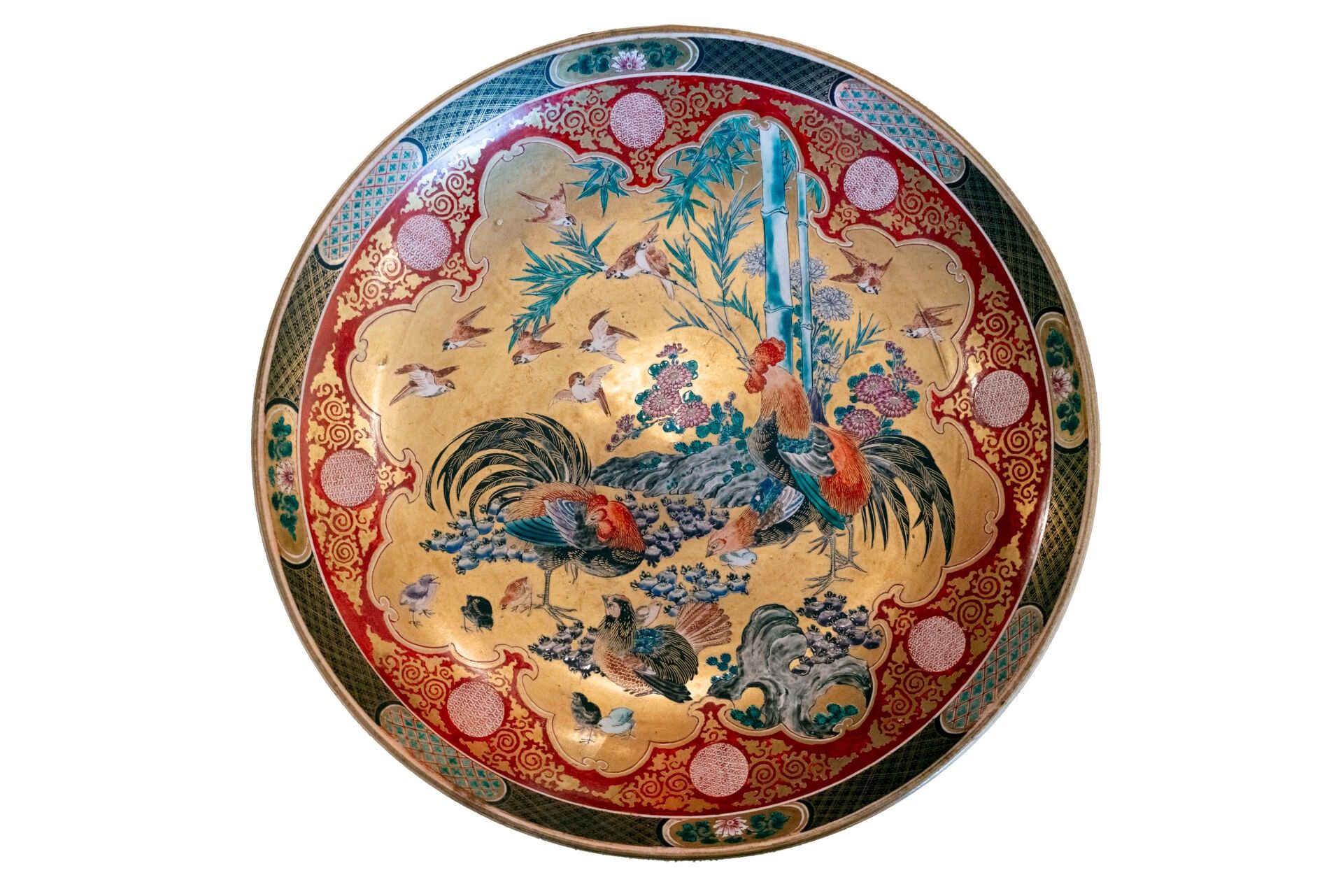JAPAN Kutani dish decorated with roosters and gilded backgro…