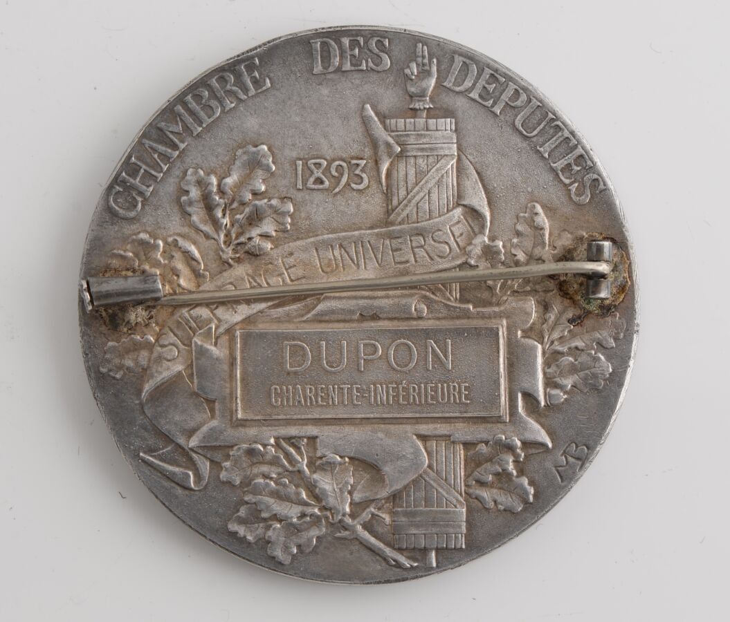 Medal of the Chamber of Deputies in silver, signed. Mounted on a brooch with a metal barb.