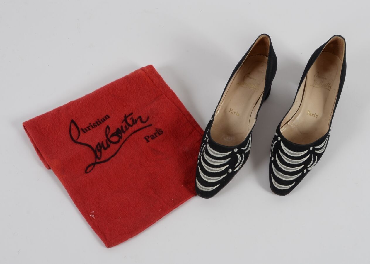 CHRISTIAN LOUBOUTIN Pair of women's hand-painted black silk …