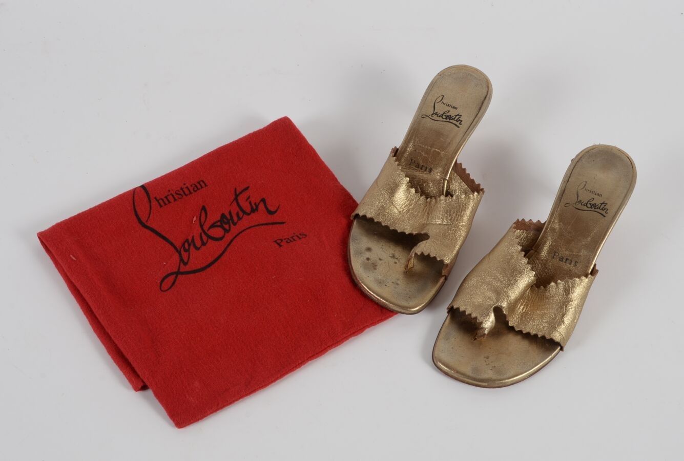 CHRISTIAN LOUBOUTIN Pair of golden leather sandals.