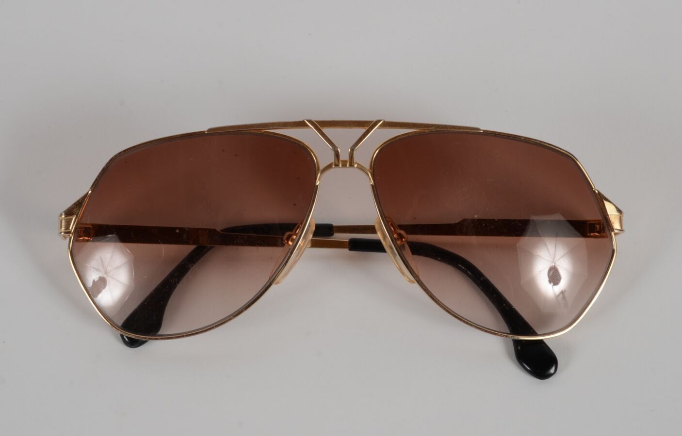 YVES SAINT LAURENT Pair of gilt metal sunglasses. Signed.
