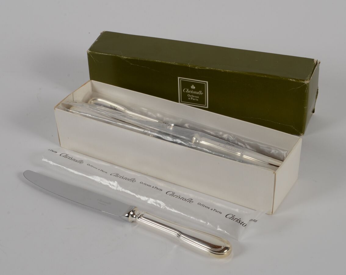 Set of twelve silver-plated knives, fillet pattern. In a Christofle case.
